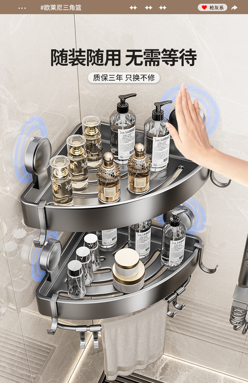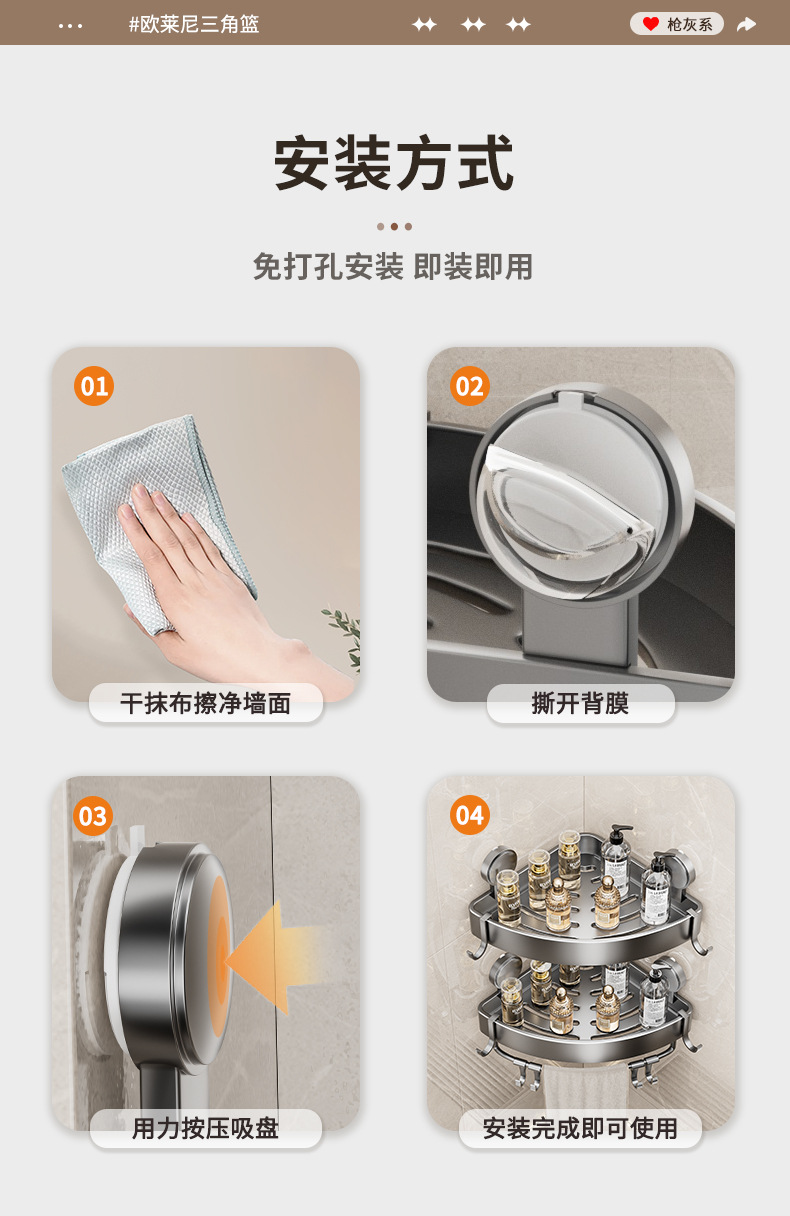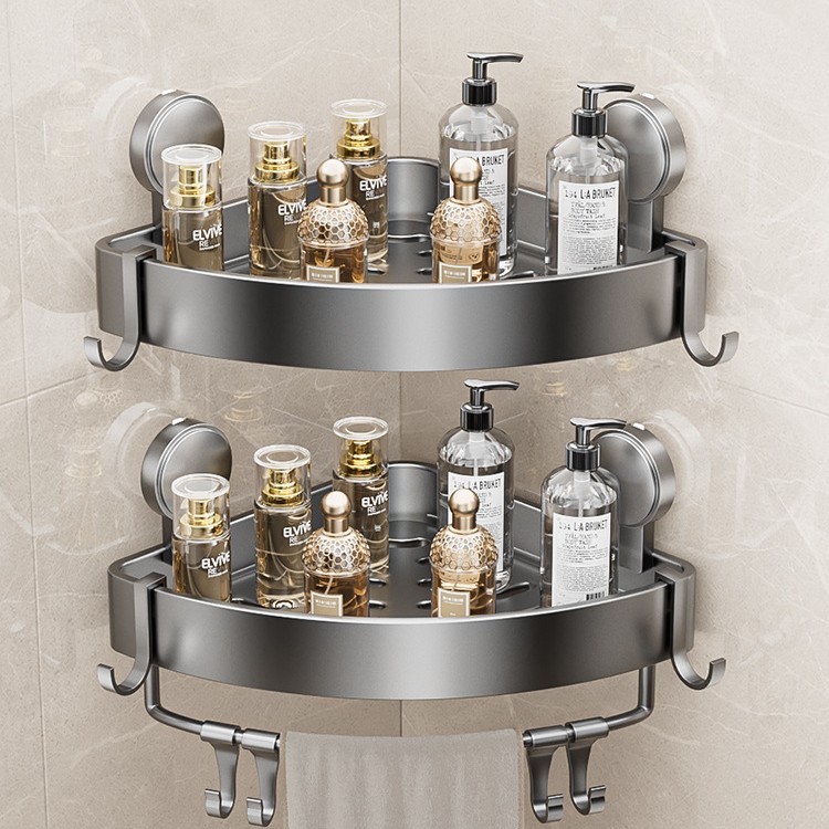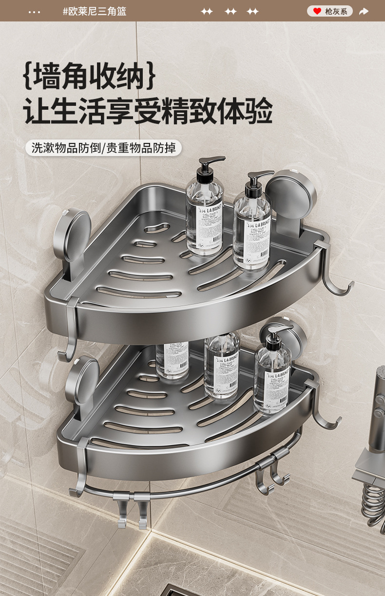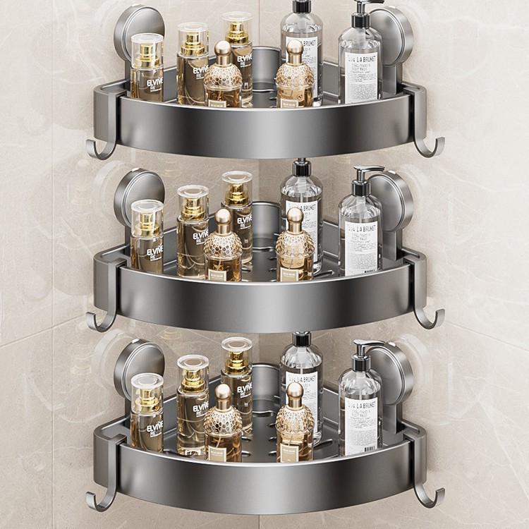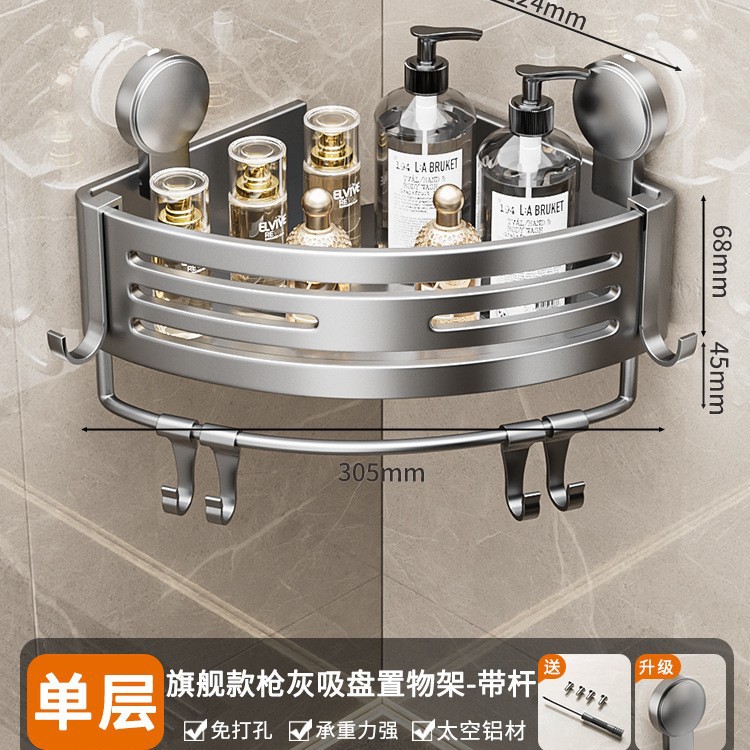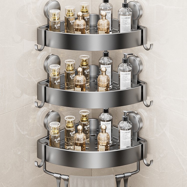 • 건 그레이❥높이가 6.8cm인 진공 흡착 삼각형 바구니 - 막대가 있는 3겹 [흡입 컵은 분리 가능하고 재사용 가능]