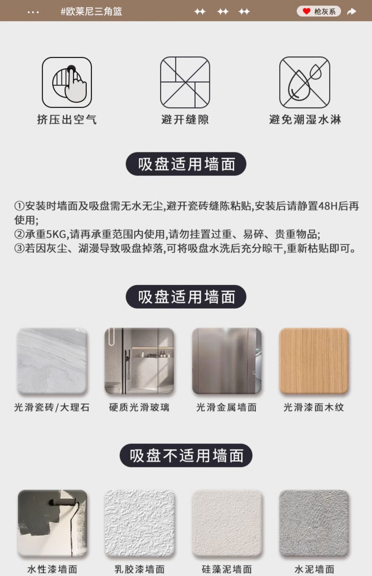 • 건 그레이❥진공흡착 삼각바구니 - 더블 레이어 [흡입컵 재사용 가능]