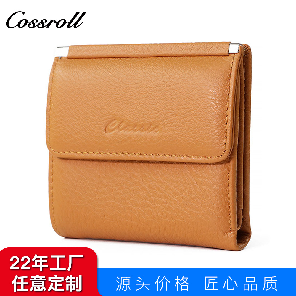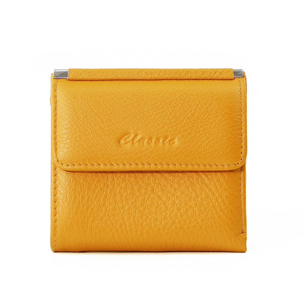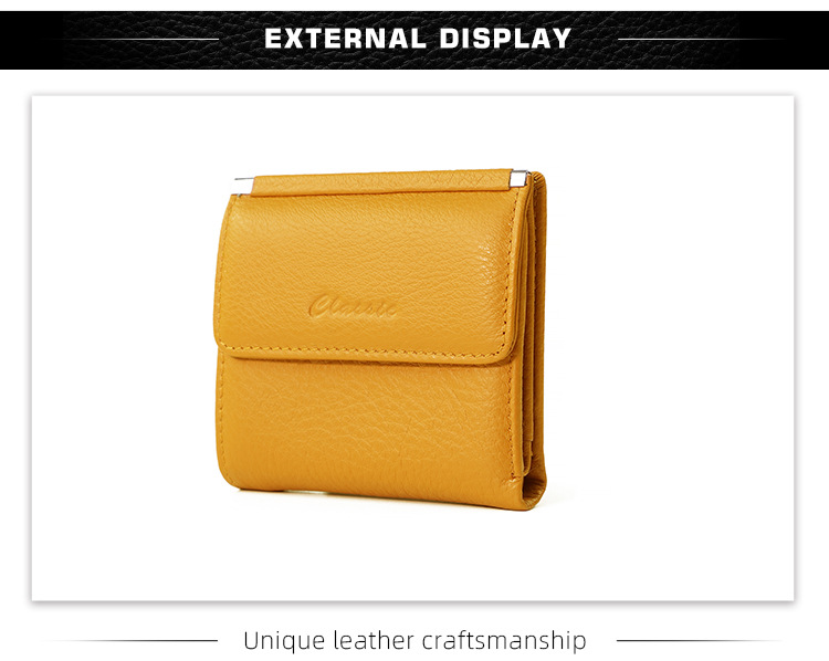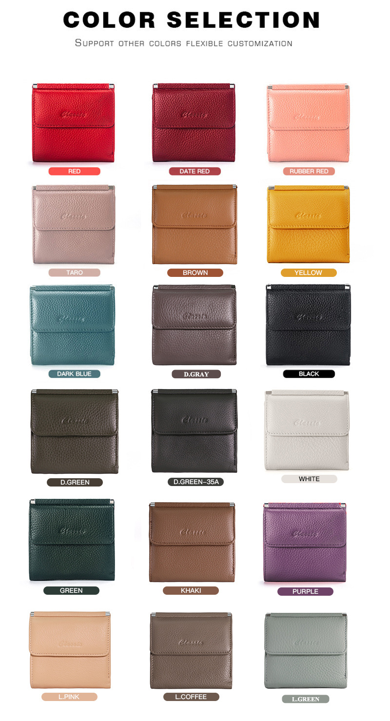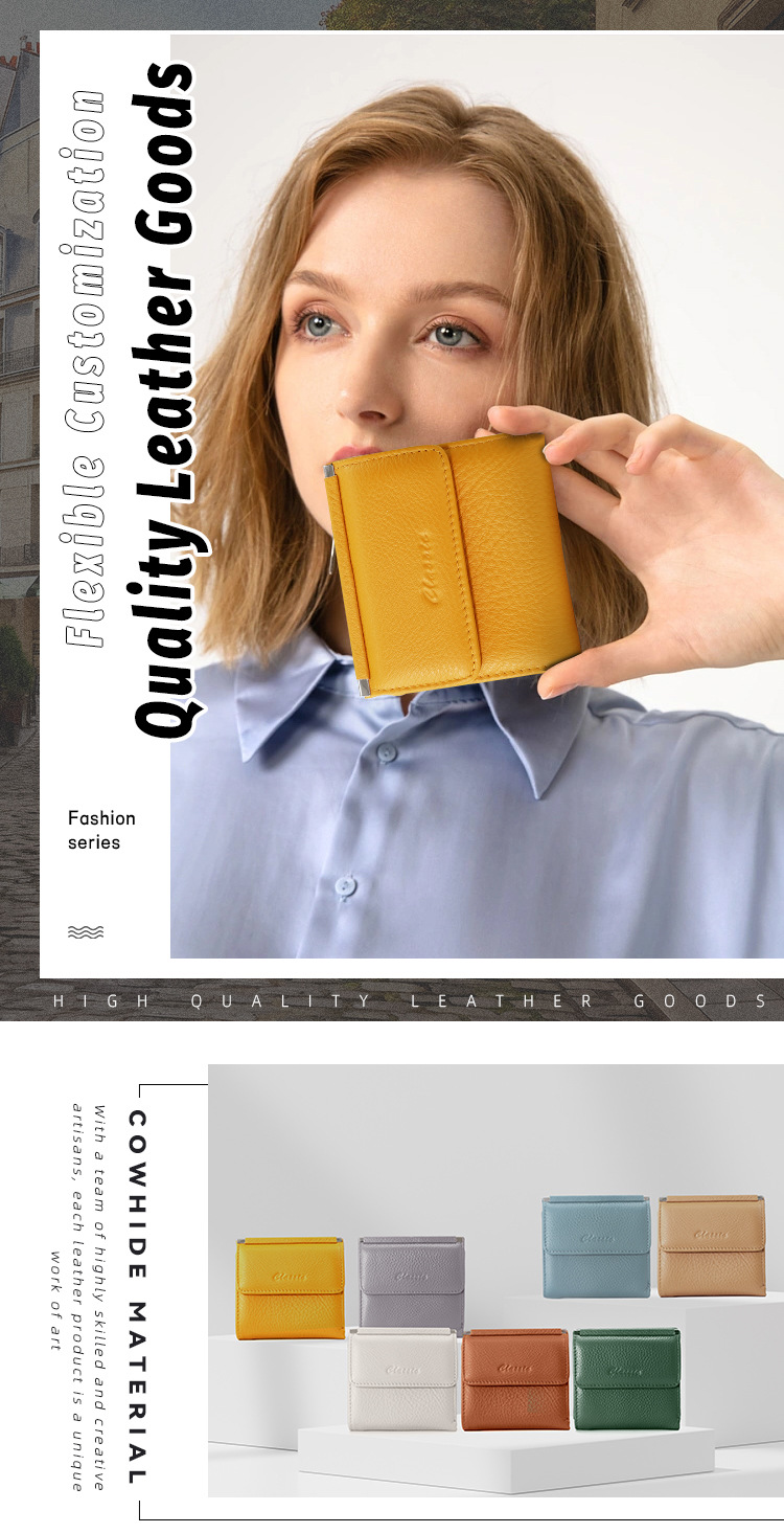정품 가죽 지갑 클래식 Ins 여성용 짧은 유행 단색 카드 가방 다기능 새 가방 2 배 지갑 여성용 가방