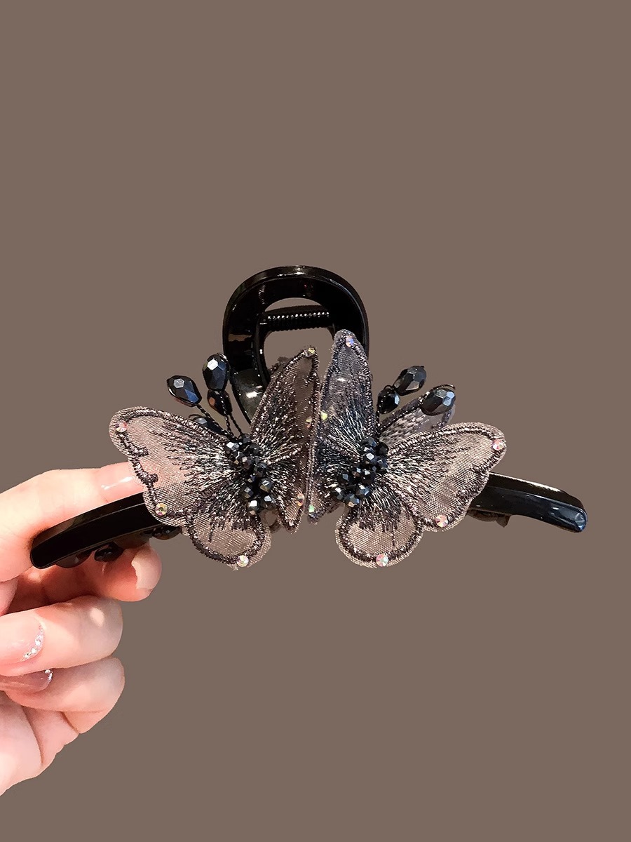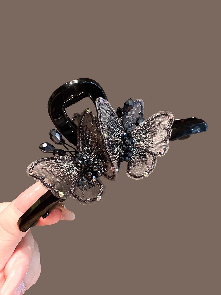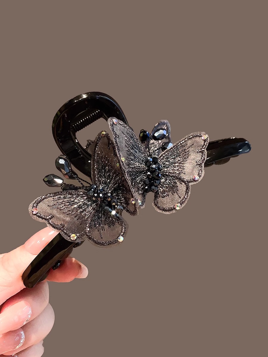 풀 다이아몬드 엘프 우아한 크리스탈 나비 머리핀 대형 2024년 신상품 뒷머리 고데기 상어핀 헤어핀스토어 가기