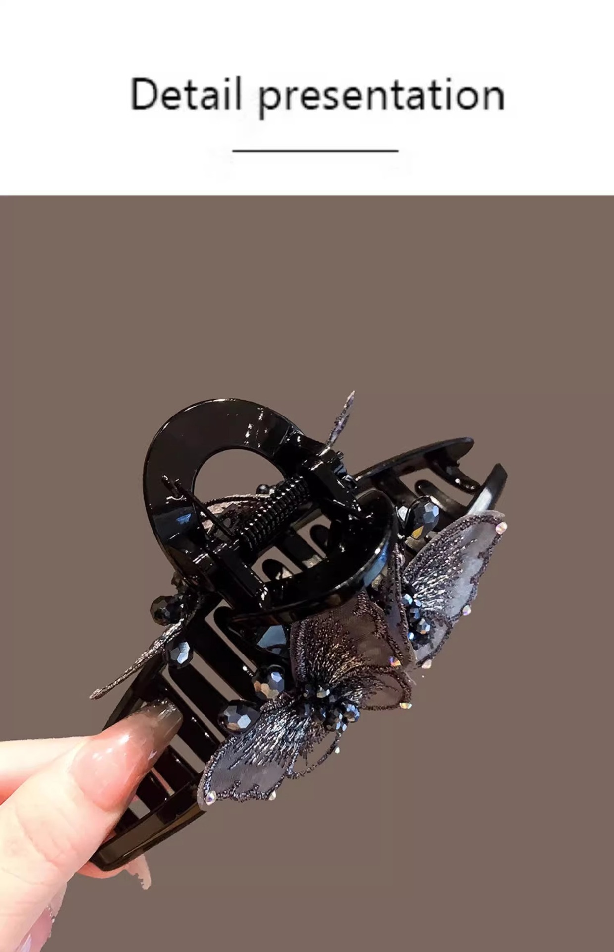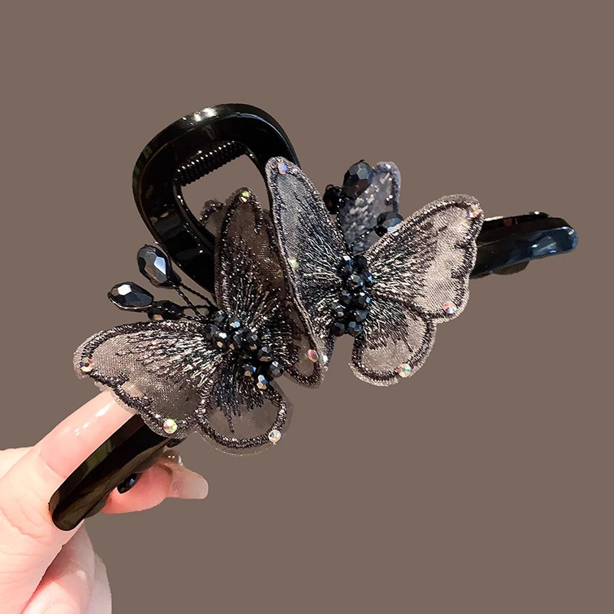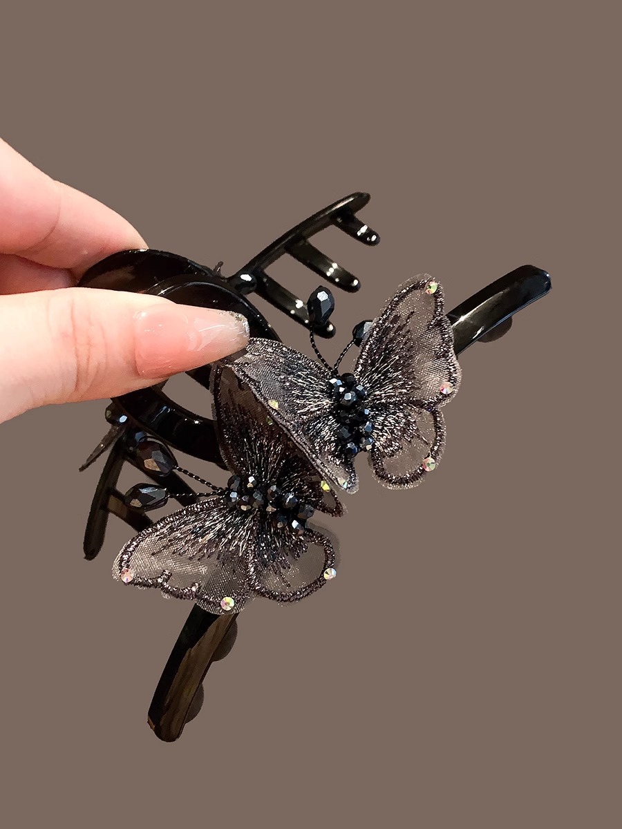 풀 다이아몬드 엘프 우아한 크리스탈 나비 머리핀 대형 2024년 신상품 뒷머리 고데기 상어핀 헤어핀스토어 가기