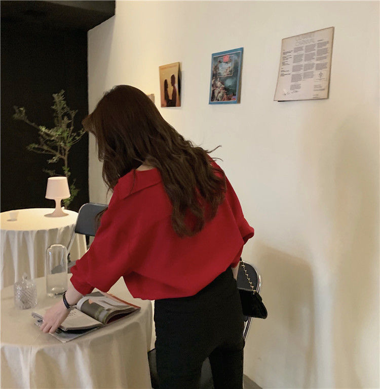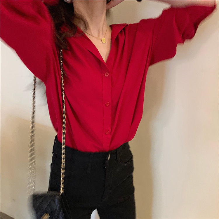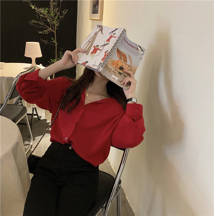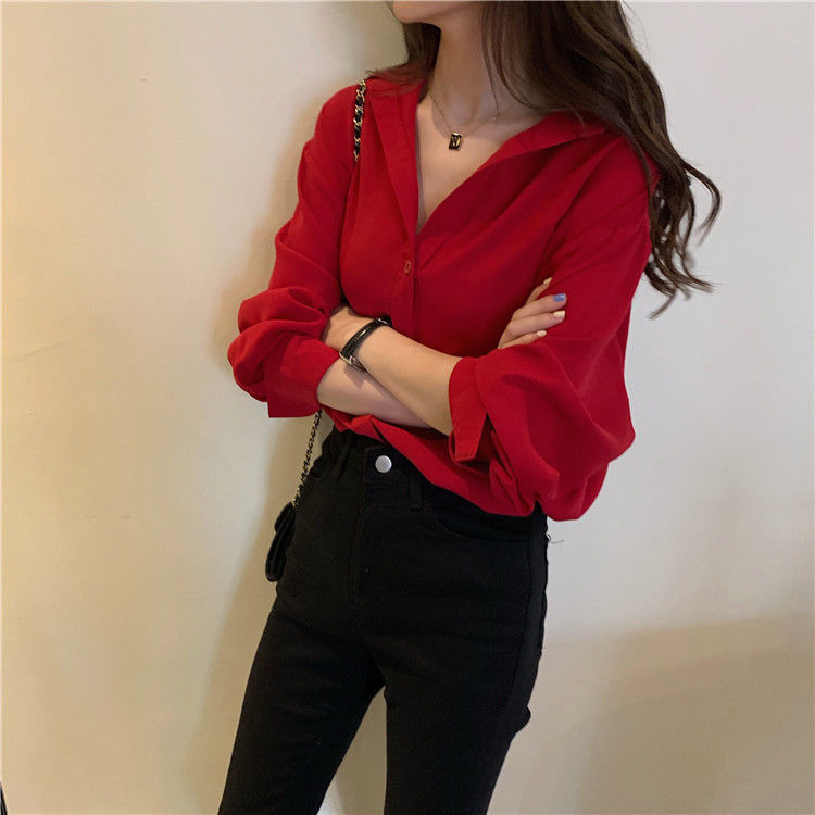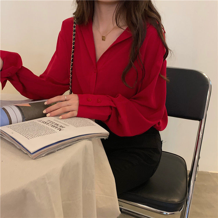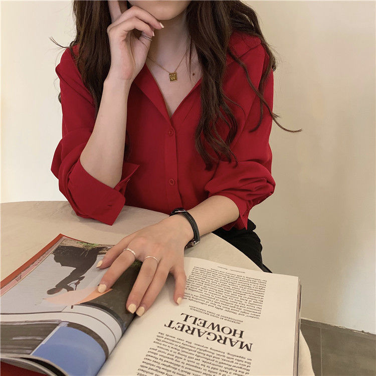 여성용 쉬폰 셔츠 2025 봄, 가을 새로운 느슨한 단색 다용도 탑 소녀 디자인 틈새 셔츠 유행스토어 가기
