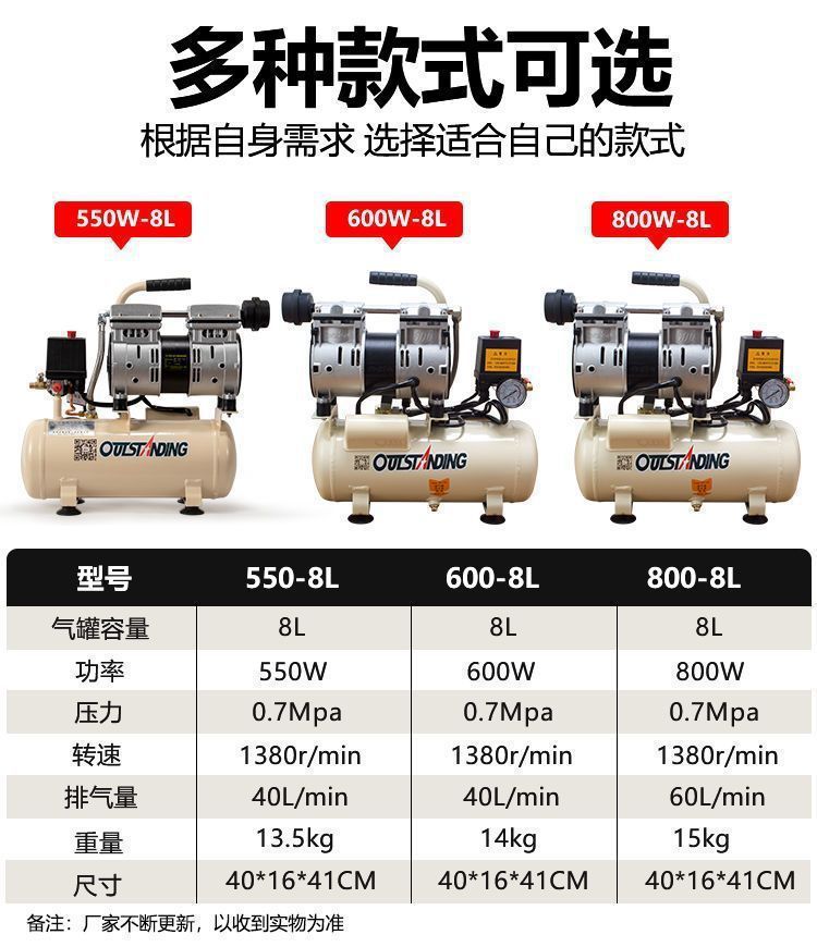 Otus 공기 펌프 공기 압축기 작은 공기 압축기 팽창 식 오일이없는 음소거 220V 목공 페인트 펌프