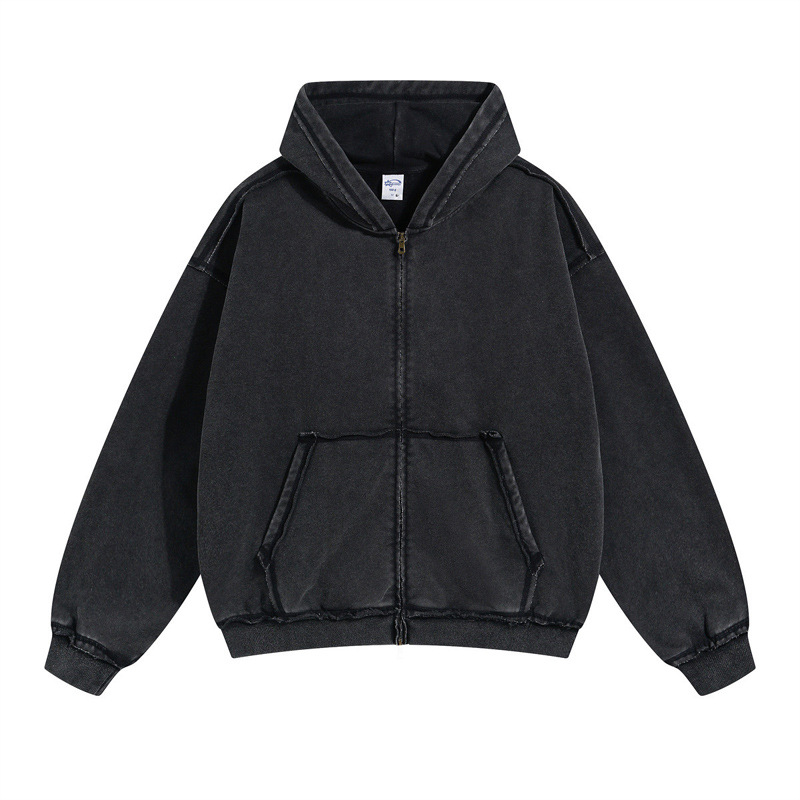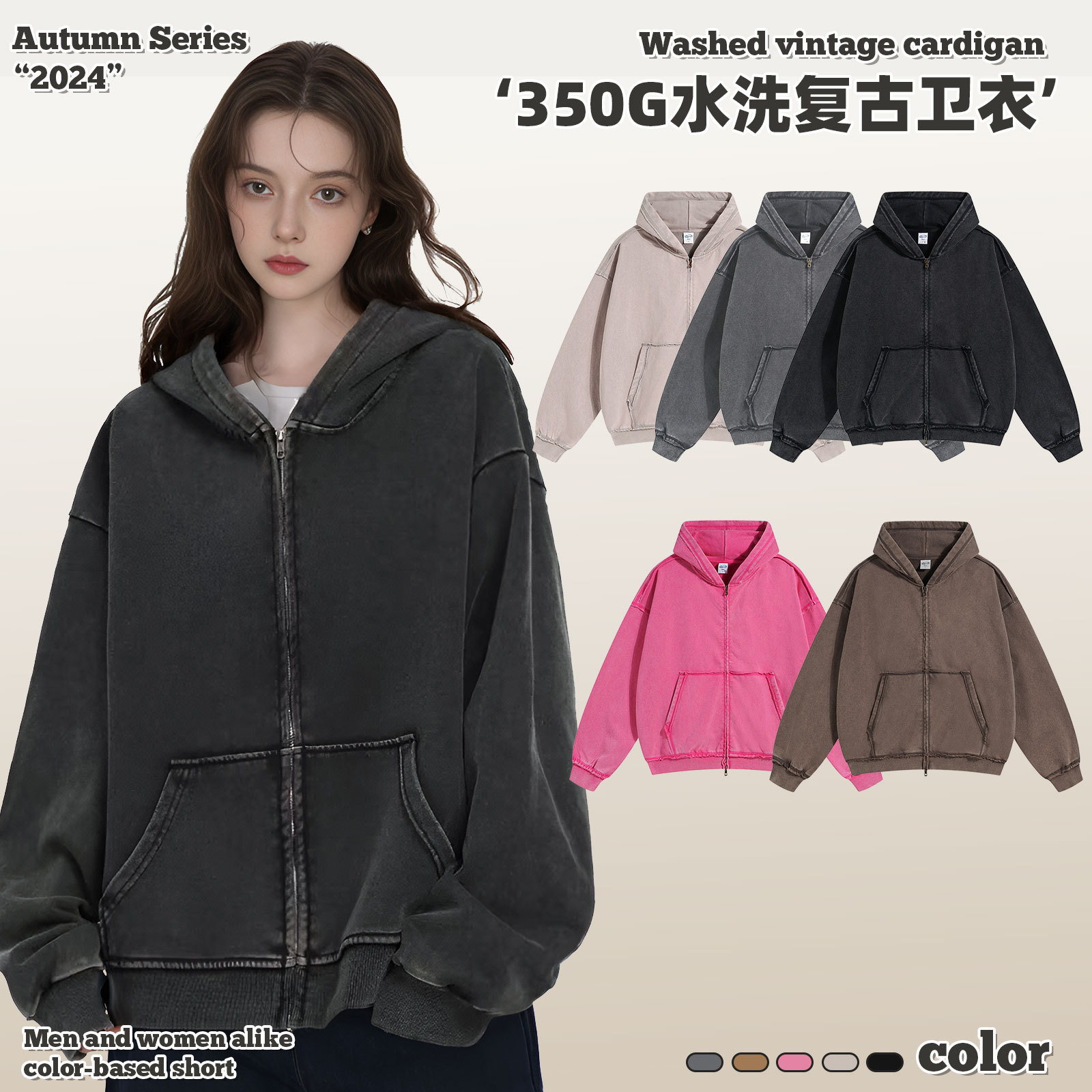 세탁 된 빈티지 아메리칸 카디건 크로스 보더 후드 스웨터 여성용 게으른 스타일 루즈 재킷 디자인 지퍼 재킷스토어 가기