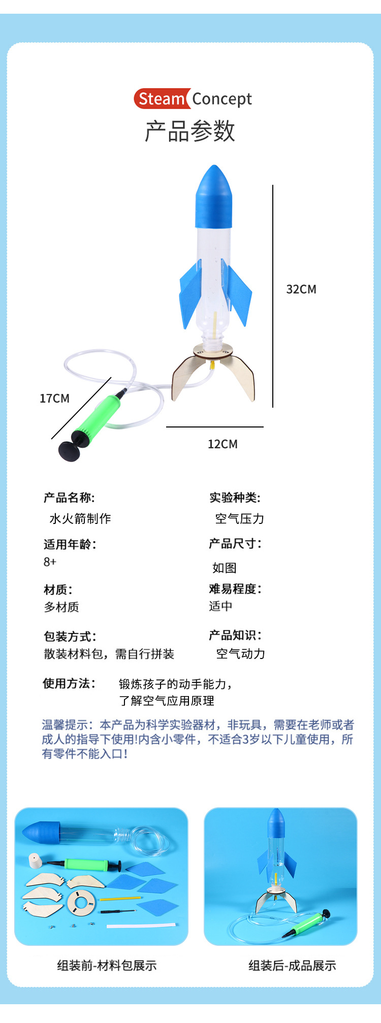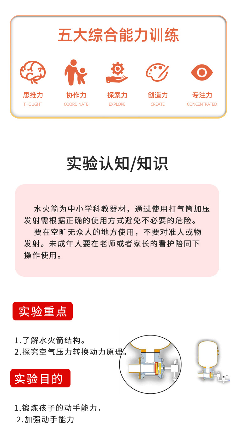 과학 소형 자체 제작 DIY 워터 로켓 유치원 초등학교 과학 기술 실험 작은 발명 실험 보조 재료스토어 가기