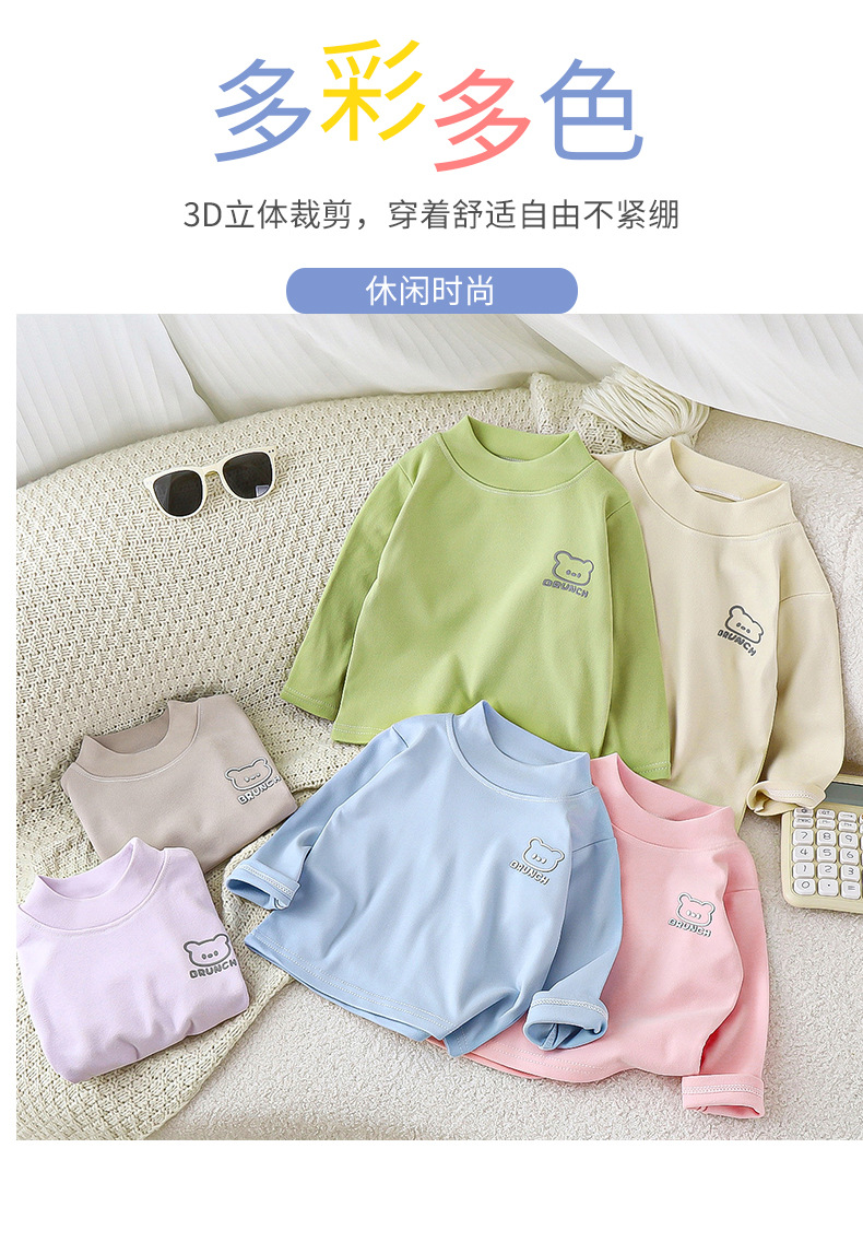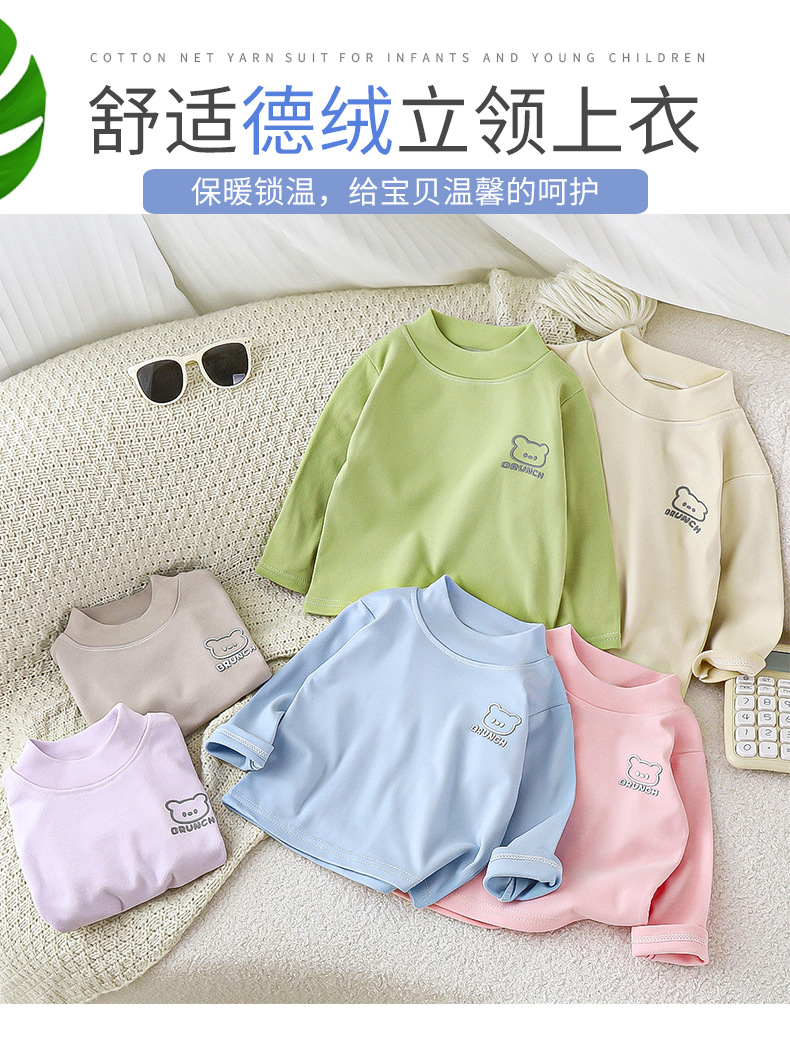 새로운 어린이 벨벳베이스 셔츠 가을과 겨울 아기 따뜻한 긴팔 티셔츠 소년 소녀 올매치 라인드 풀오버