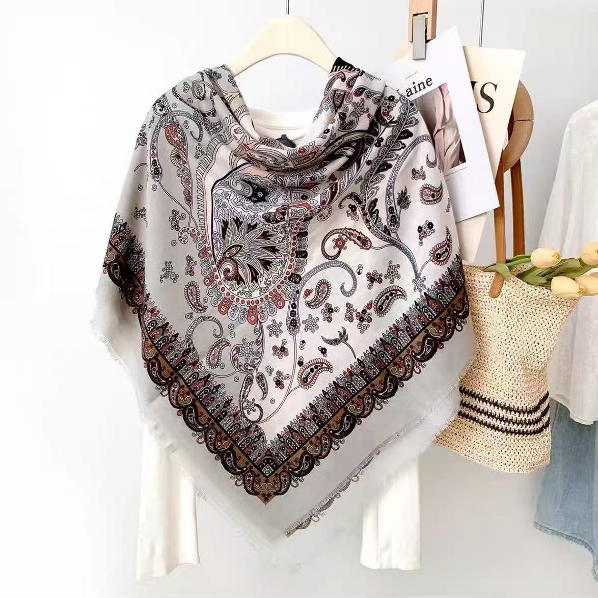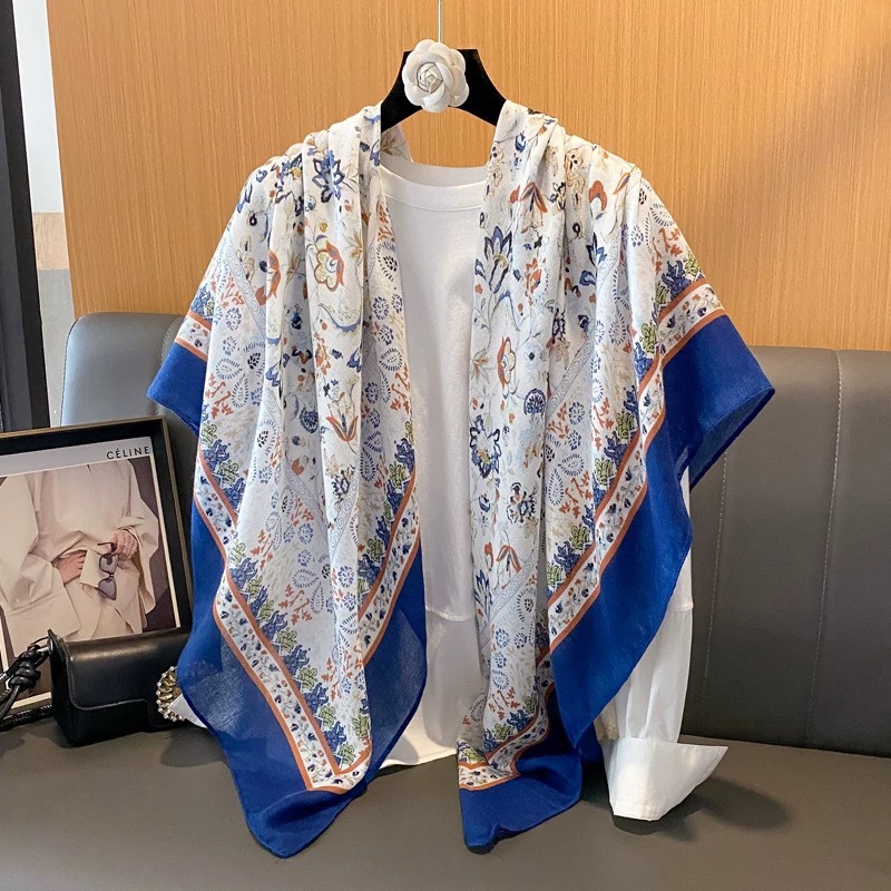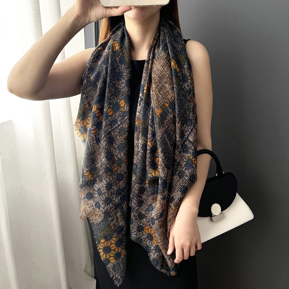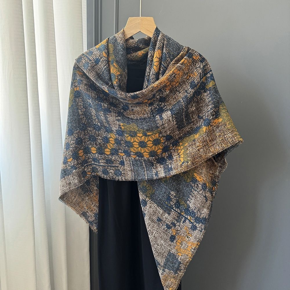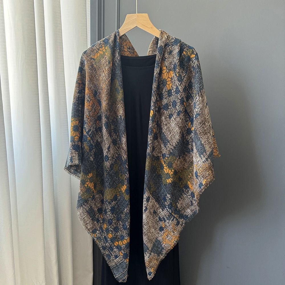 2025 봄과 가을 모조 면화 및 린넨 대형 스퀘어 스카프 민족 스타일 스카프 숄 여행 자외선 차단제 스카프 에어컨 실크 스카프