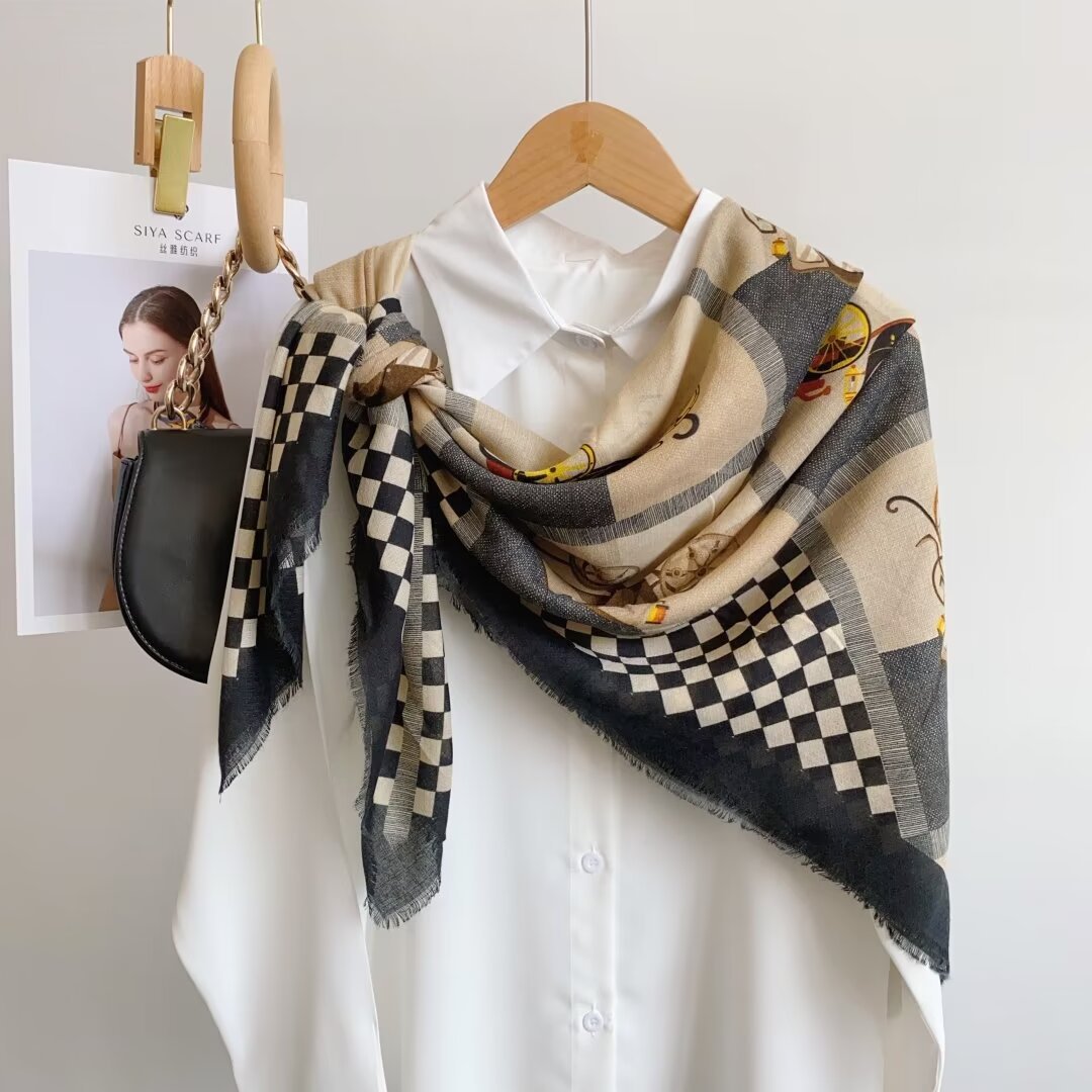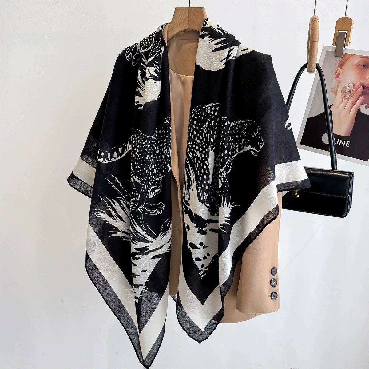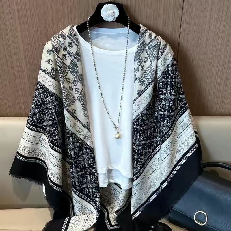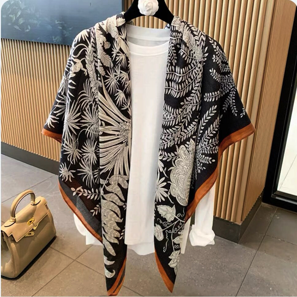 2025 봄과 가을 모조 면화 및 린넨 대형 스퀘어 스카프 민족 스타일 스카프 숄 여행 자외선 차단제 스카프 에어컨 실크 스카프