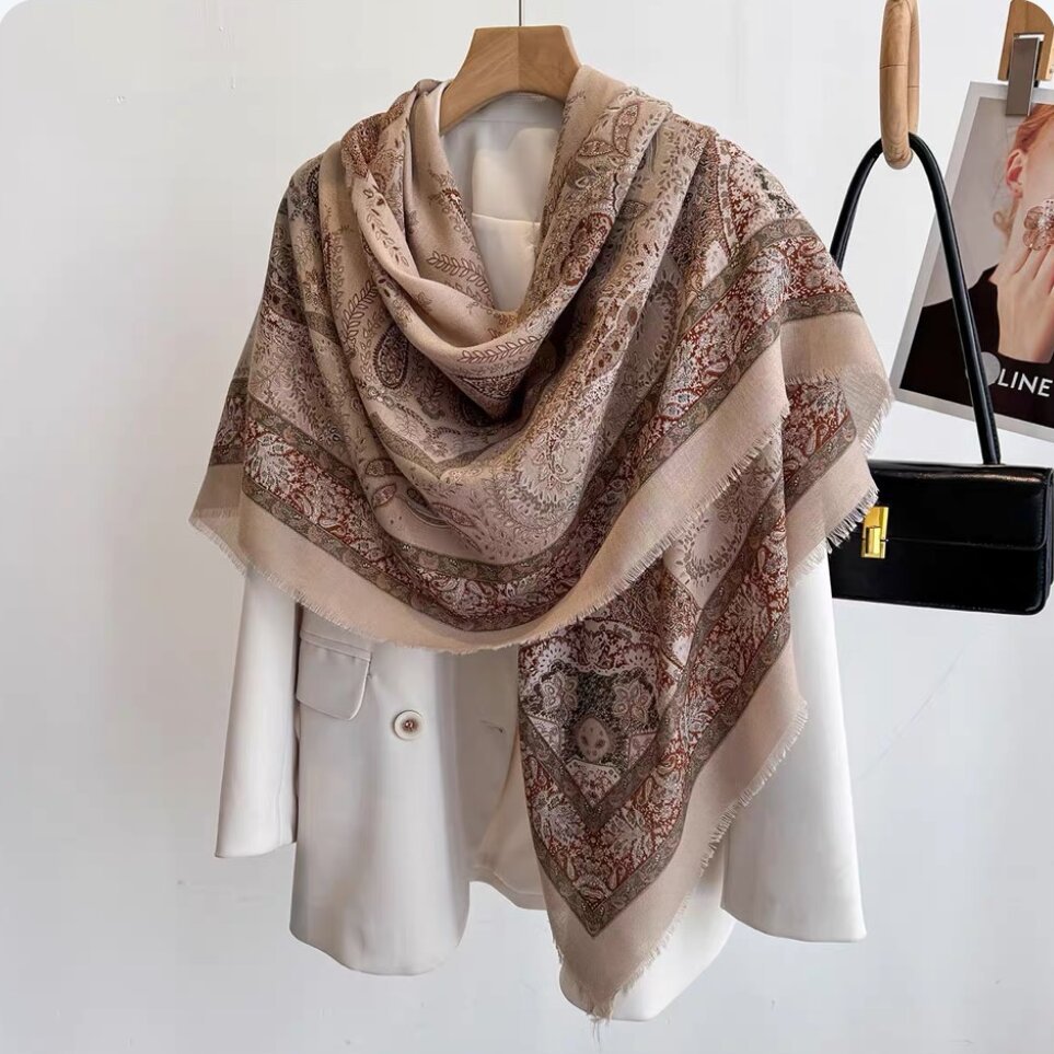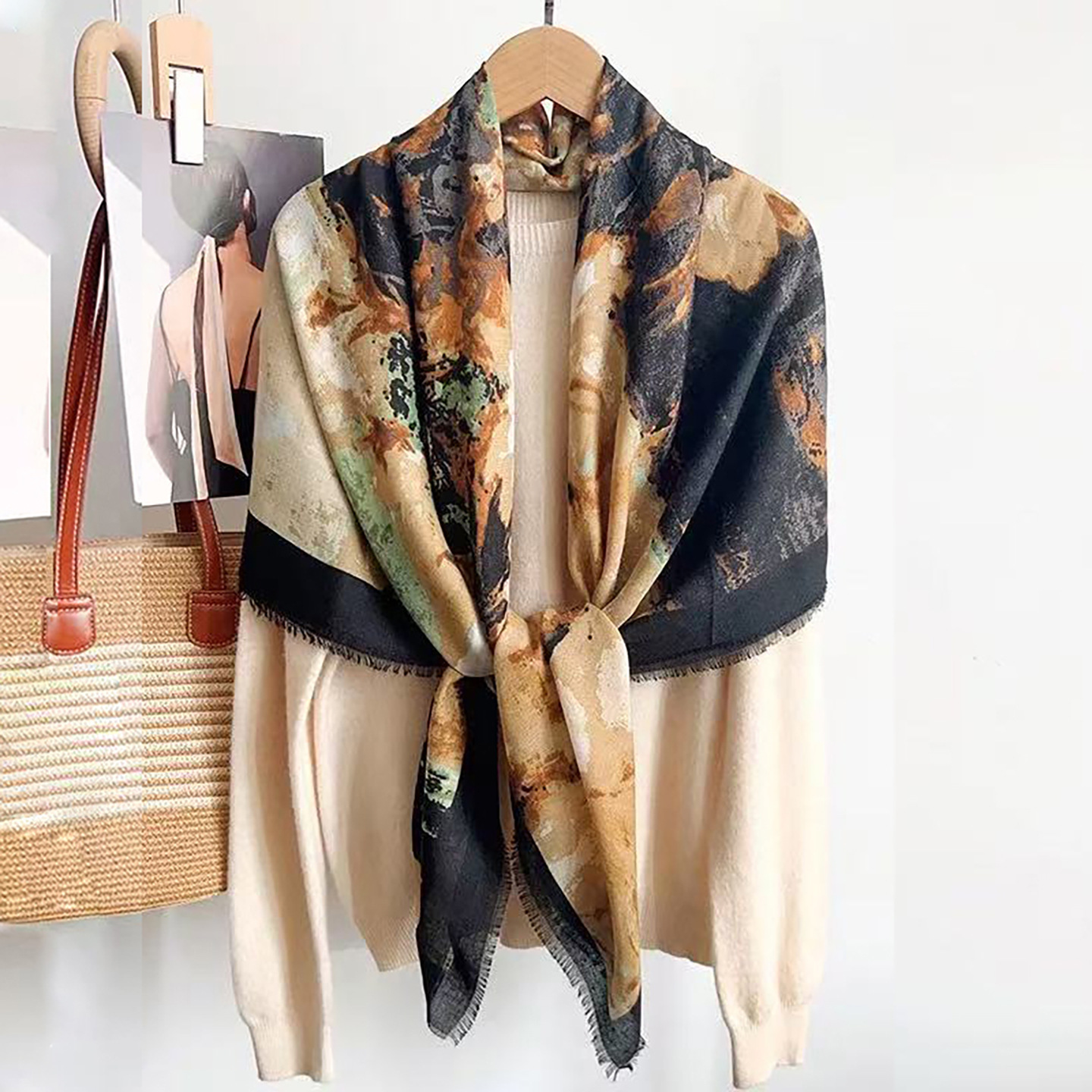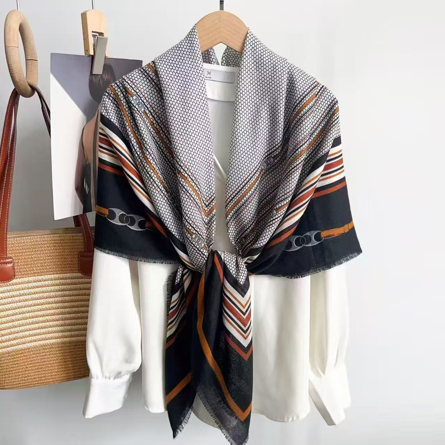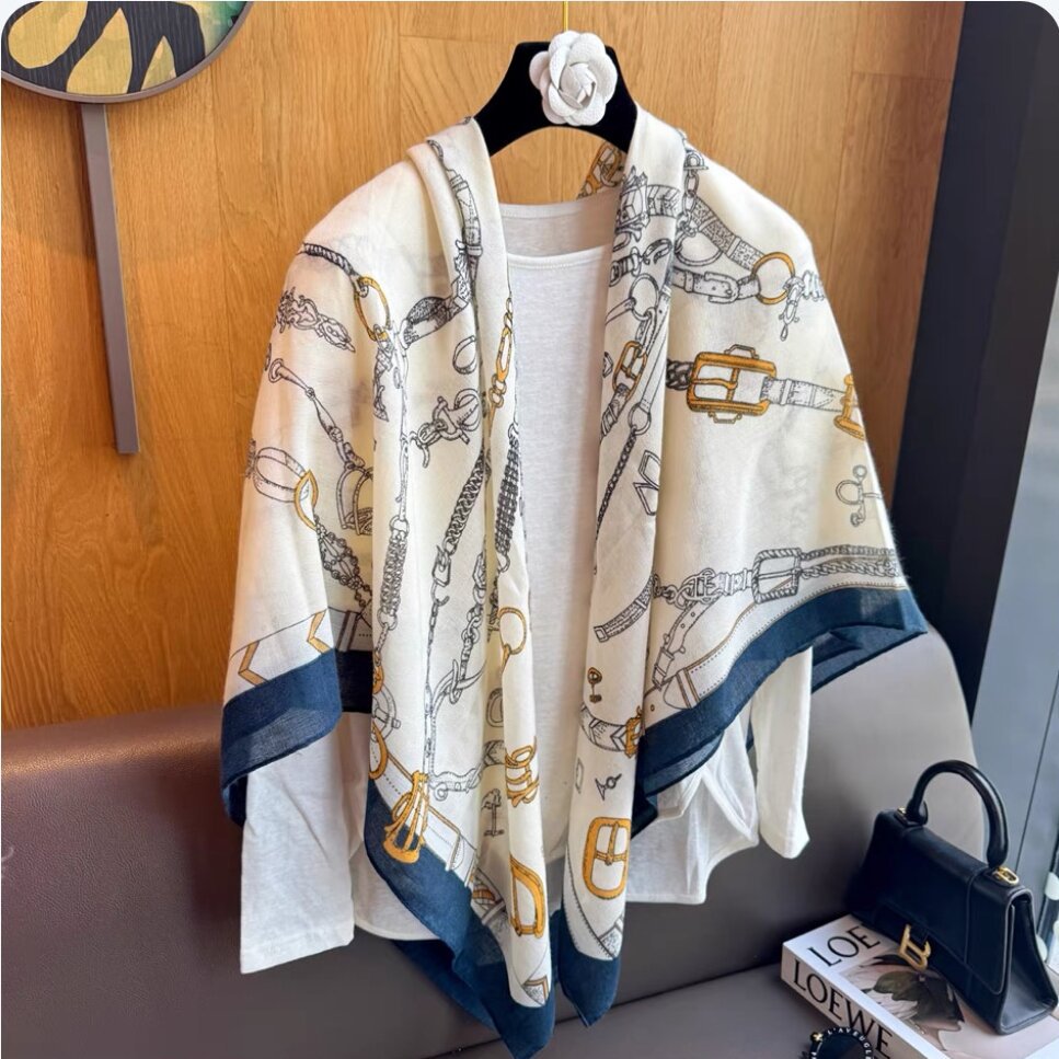 2025 봄과 가을 모조 면화 및 린넨 대형 스퀘어 스카프 민족 스타일 스카프 숄 여행 자외선 차단제 스카프 에어컨 실크 스카프