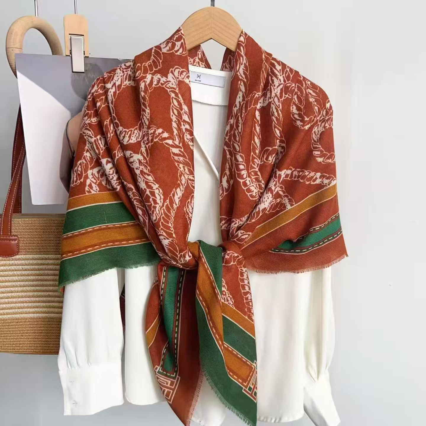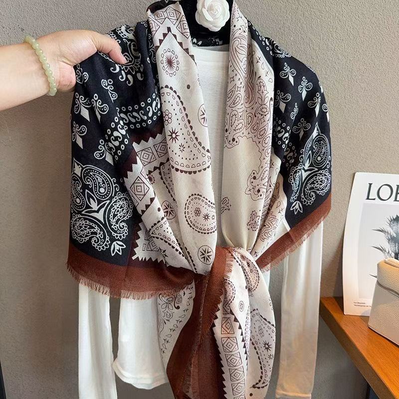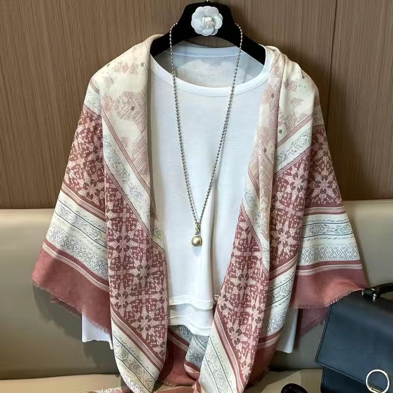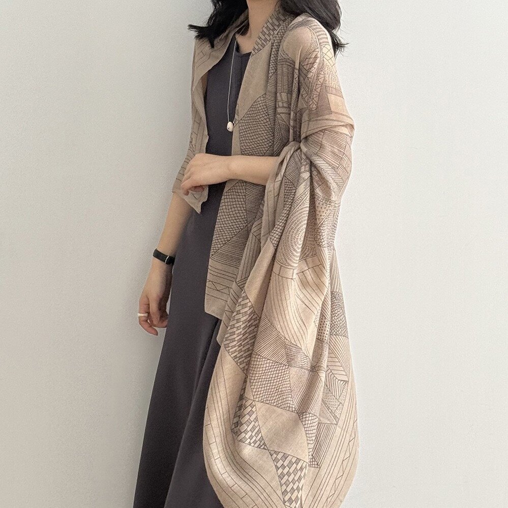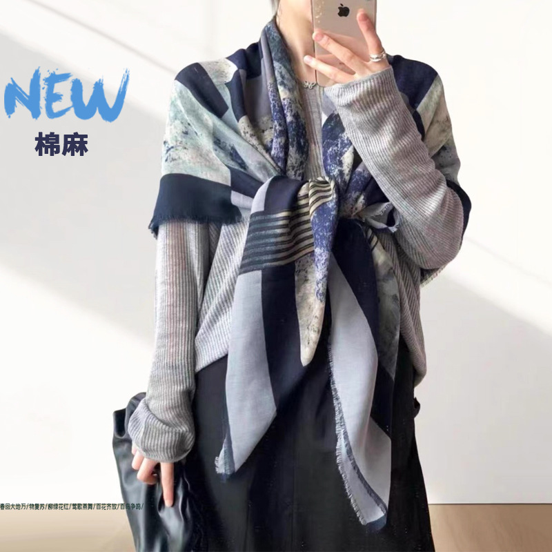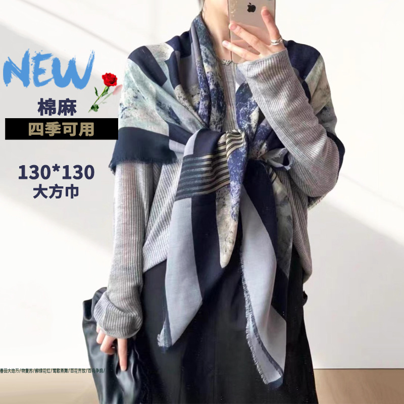 2025 봄과 가을 모조 면화 및 린넨 대형 스퀘어 스카프 민족 스타일 스카프 숄 여행 자외선 차단제 스카프 에어컨 실크 스카프스토어 가기