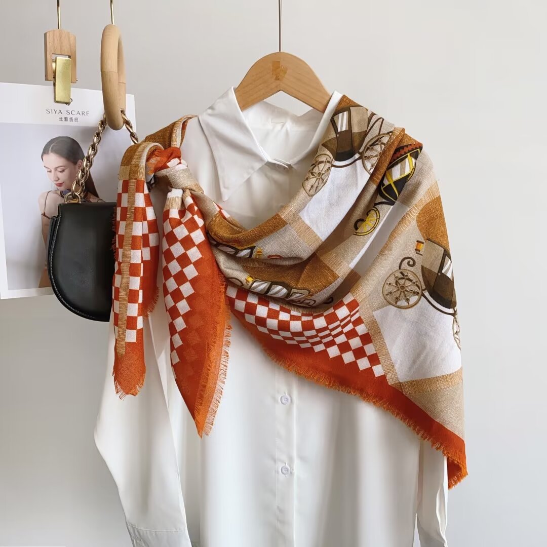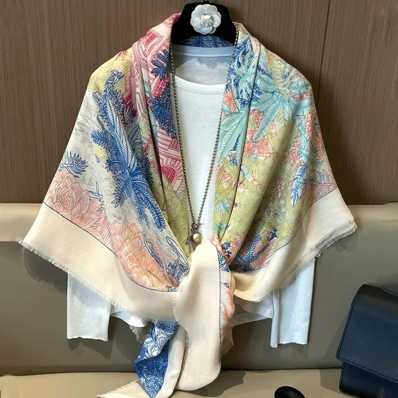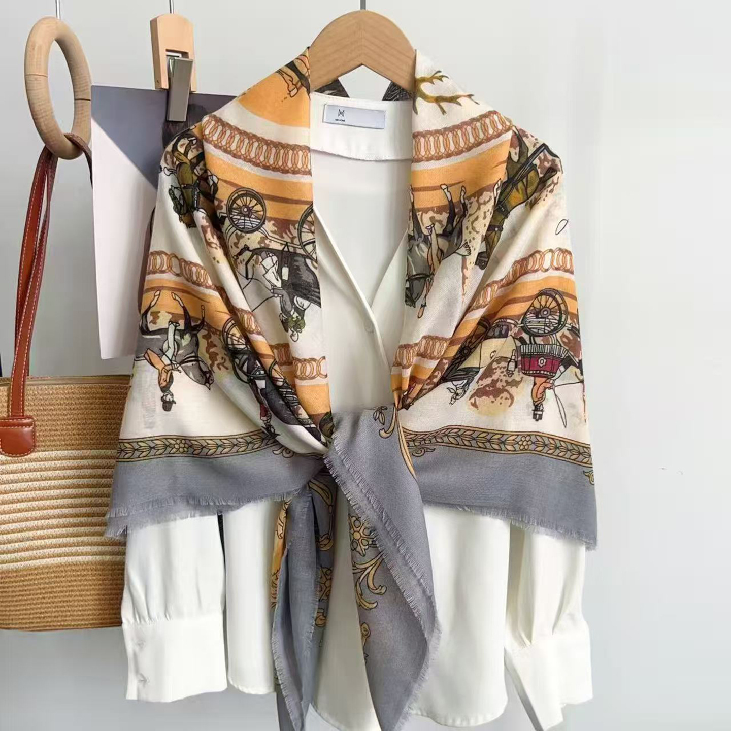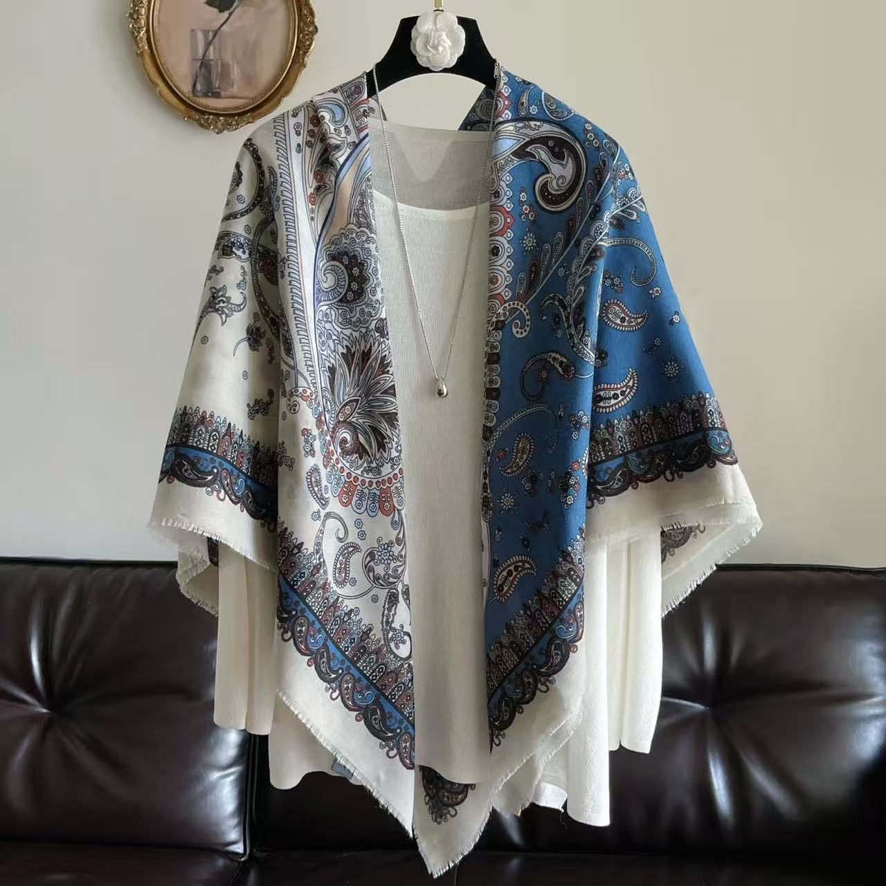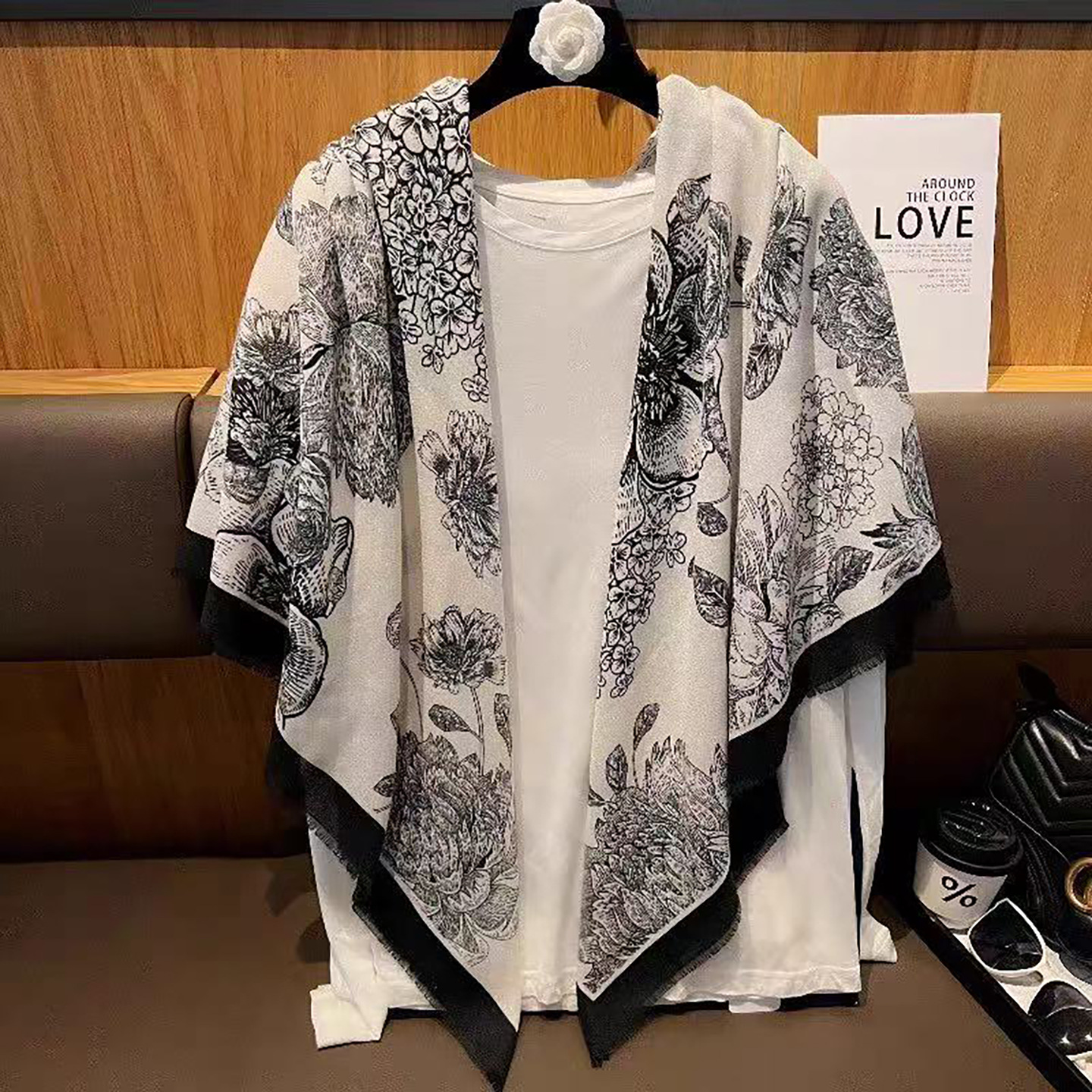 2025 봄과 가을 모조 면화 및 린넨 대형 스퀘어 스카프 민족 스타일 스카프 숄 여행 자외선 차단제 스카프 에어컨 실크 스카프스토어 가기