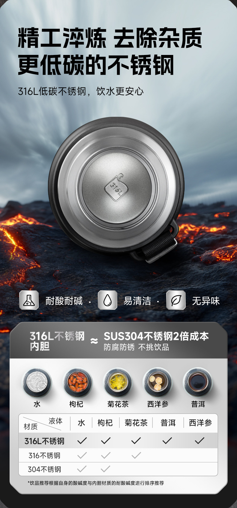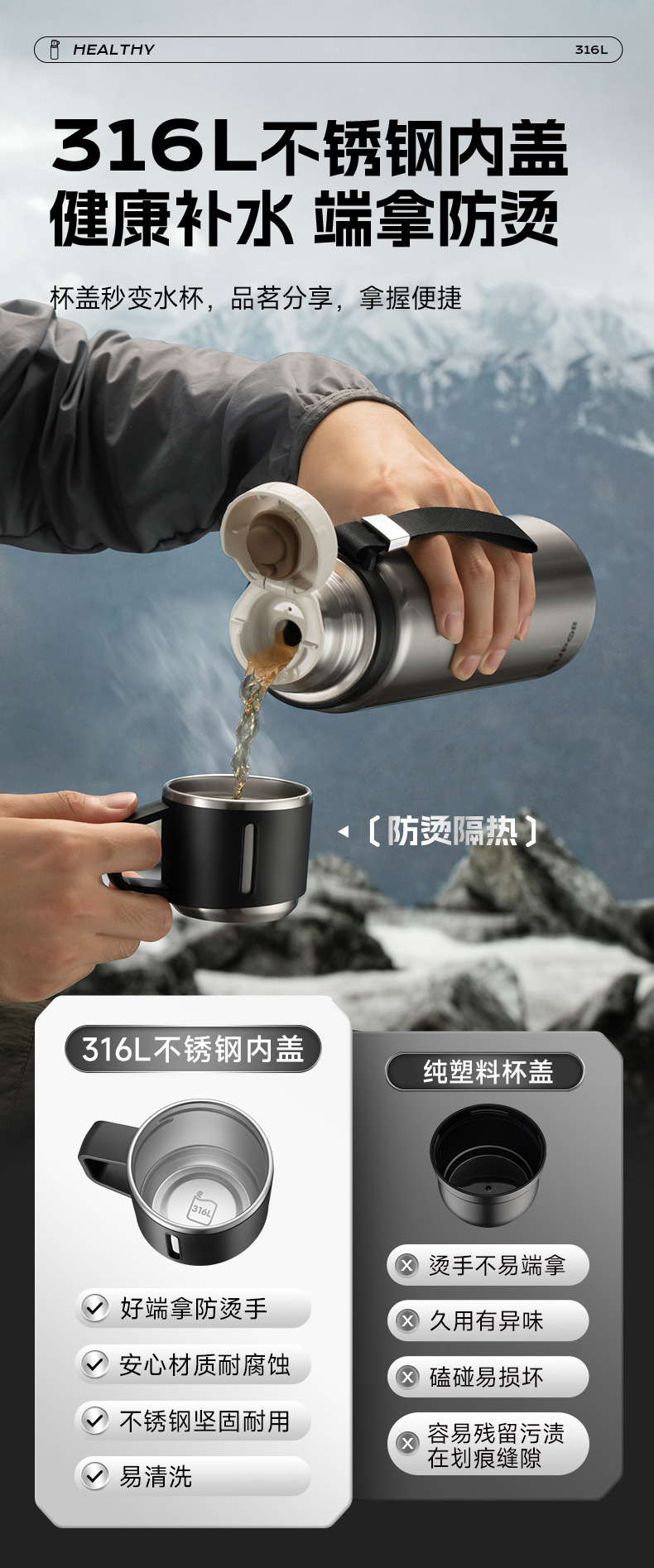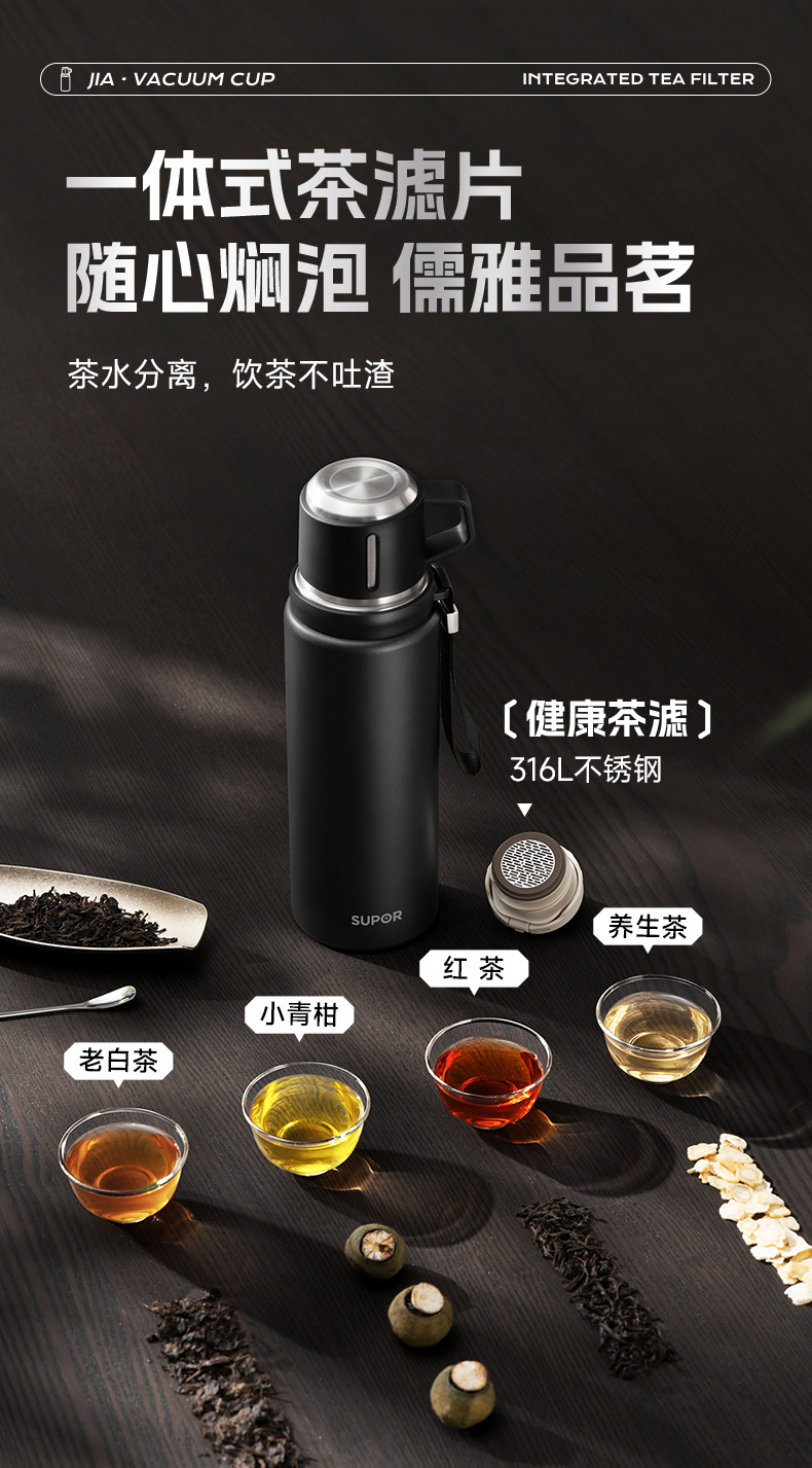 • 1000mL-옵시디언 블랙 [316L 내솥 + 작은 찻잔]
