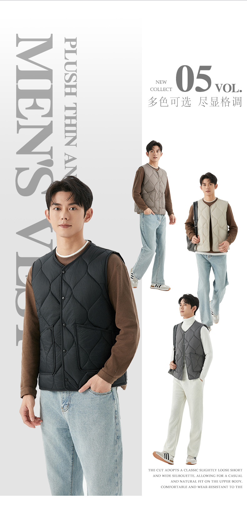 도매 새로운 유니섹스 남성 가을과 겨울 빛 기모 레저 남성 홈 청소년 버클 코튼 조끼 2502