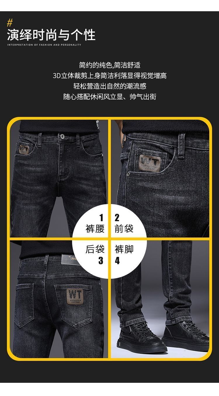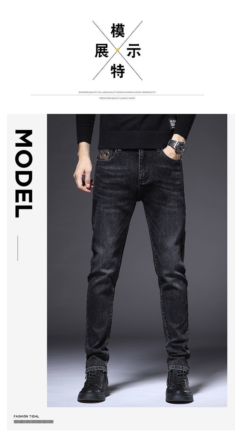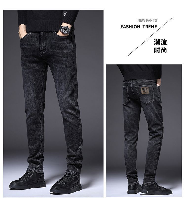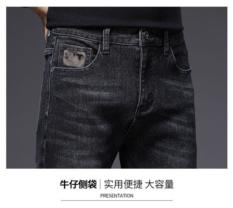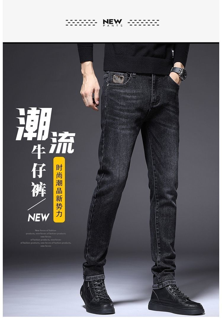 하이 엔드 남성 청바지 봄 2024 새로운 한국식 트렌디 슬림 핏 스트레치 얇은 회색 긴 바지스토어 가기