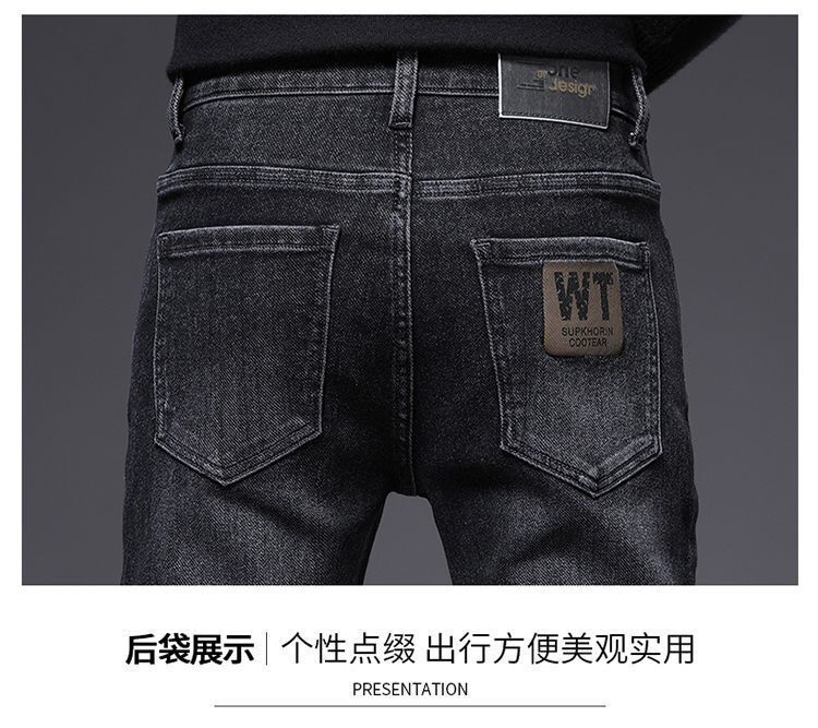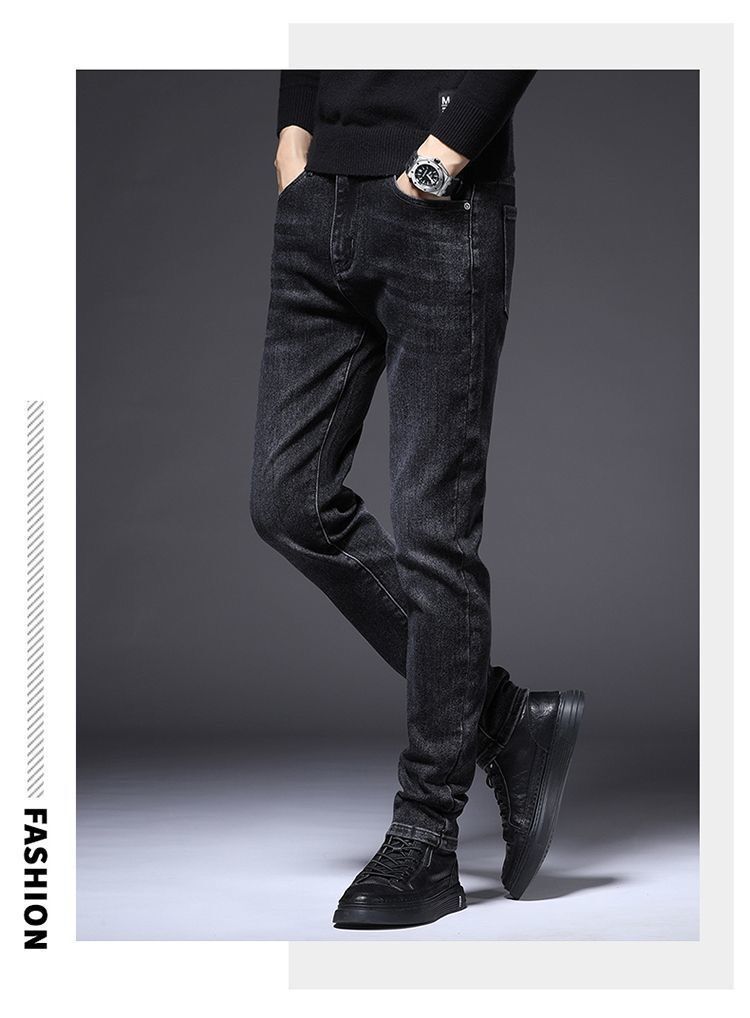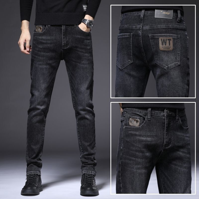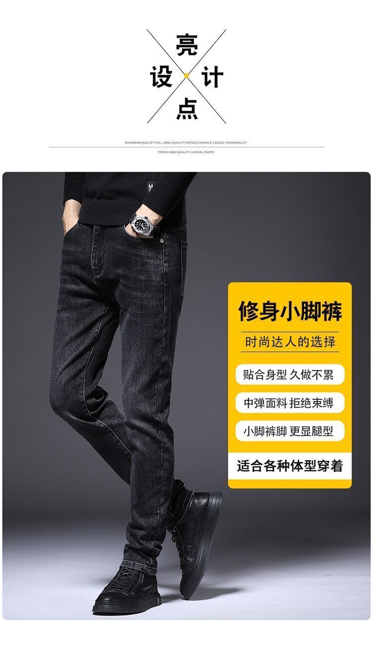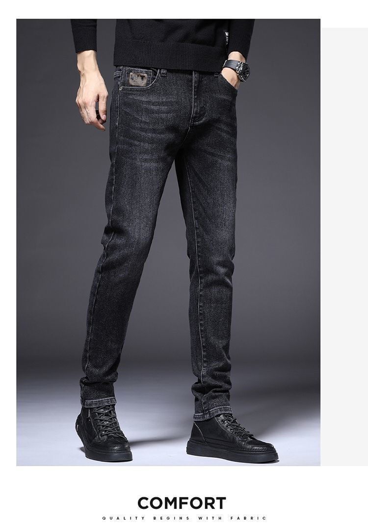 하이 엔드 남성 청바지 봄 2024 새로운 한국식 트렌디 슬림 핏 스트레치 얇은 회색 긴 바지스토어 가기