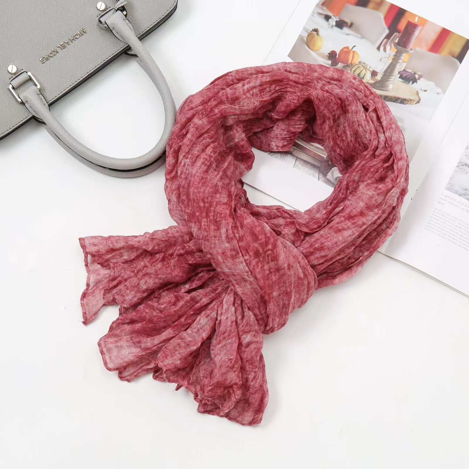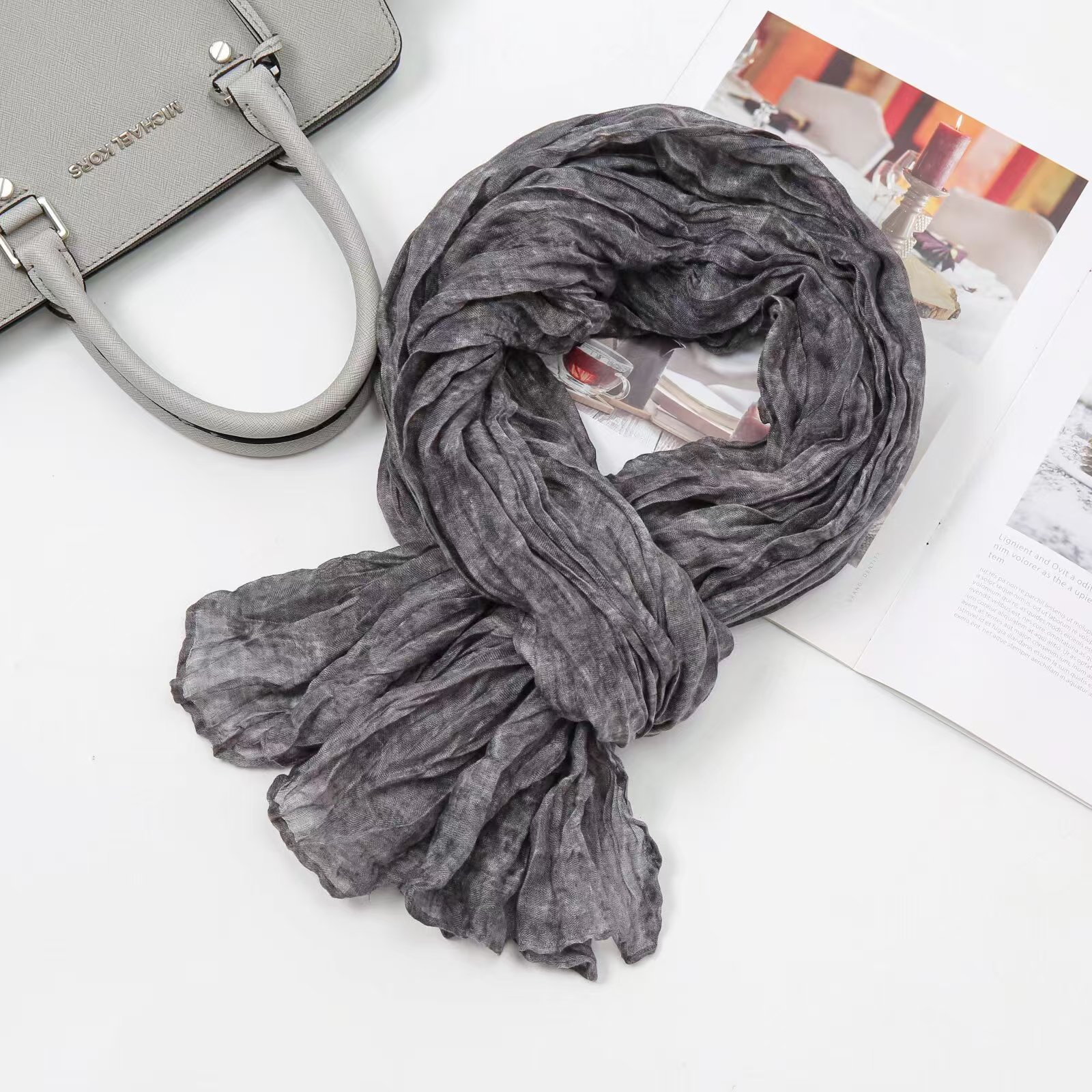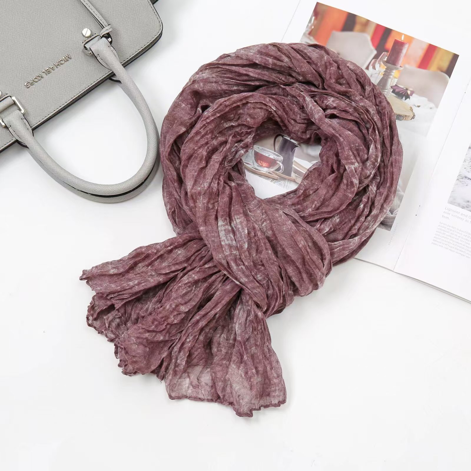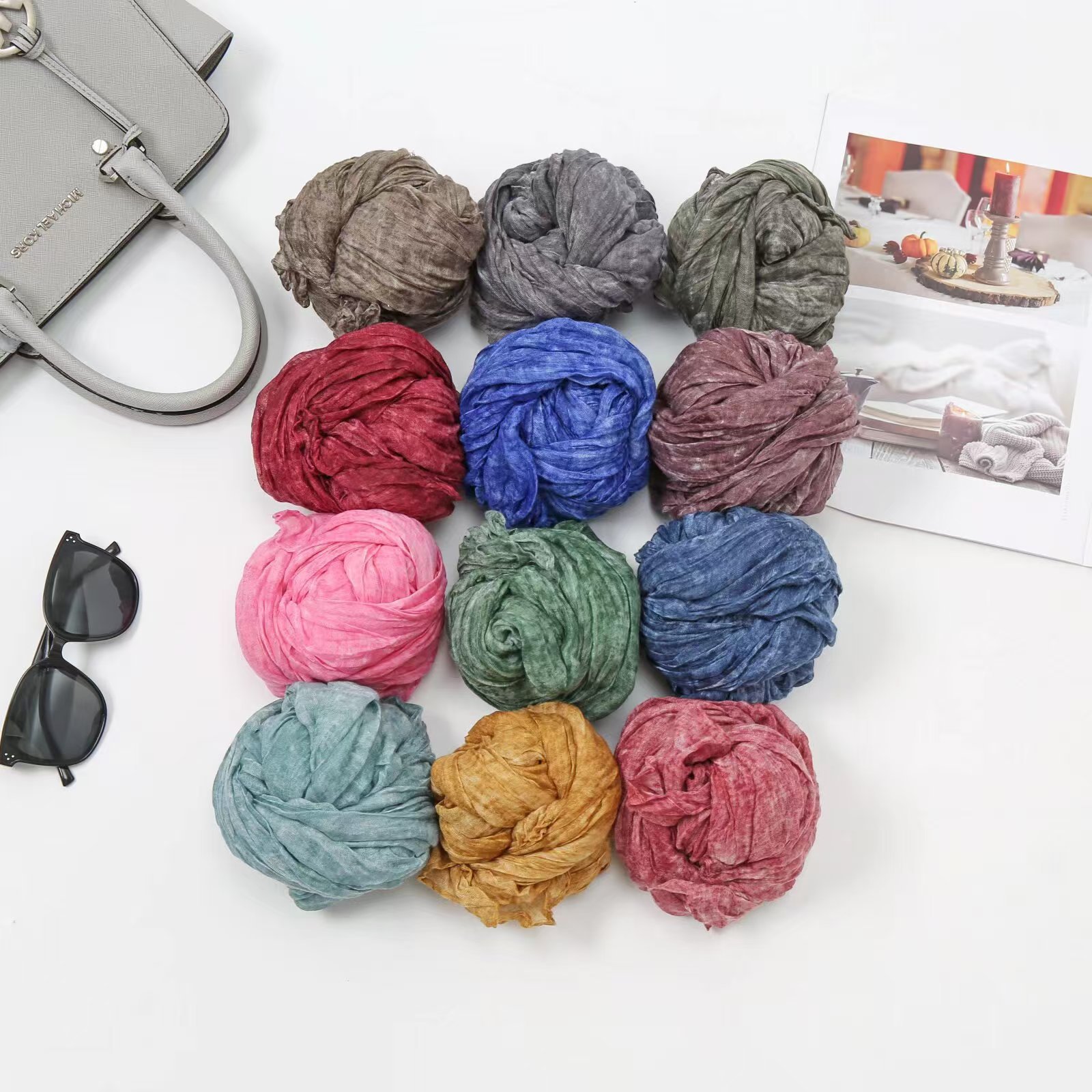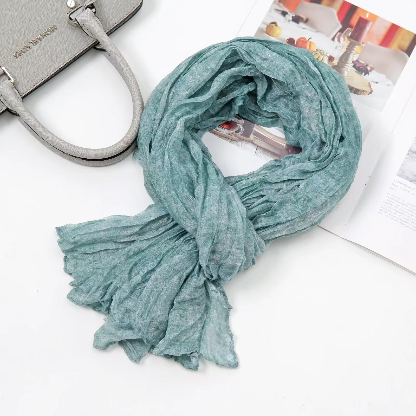 단색 면화와 리넨 스카프 빈티지 가을과 겨울 새로운 도착 주름 그린 빈티지 얇은 긴 목도리 따뜻한 실크 스카프 남성과 여성스토어 가기