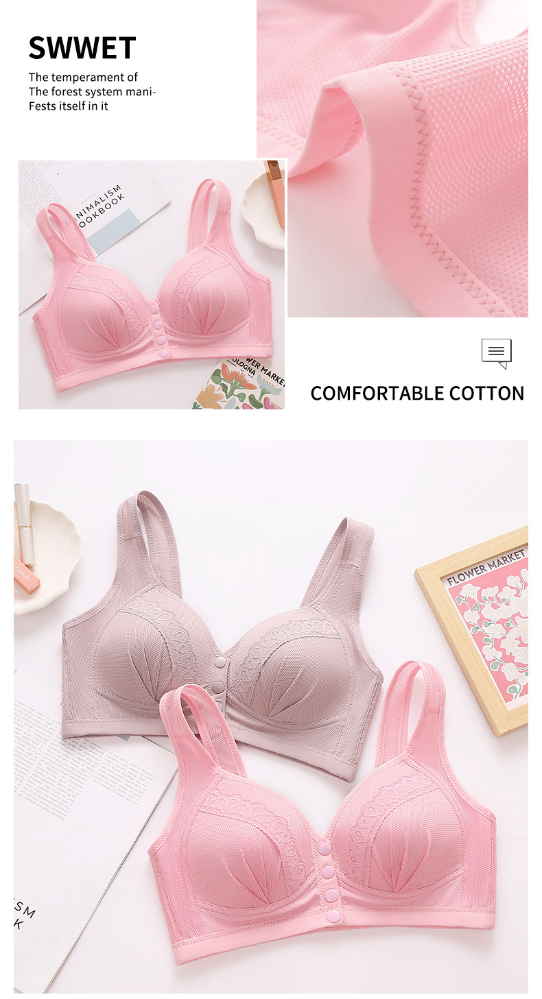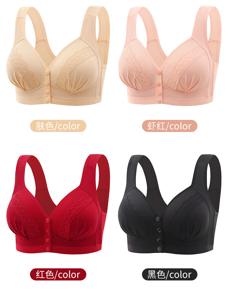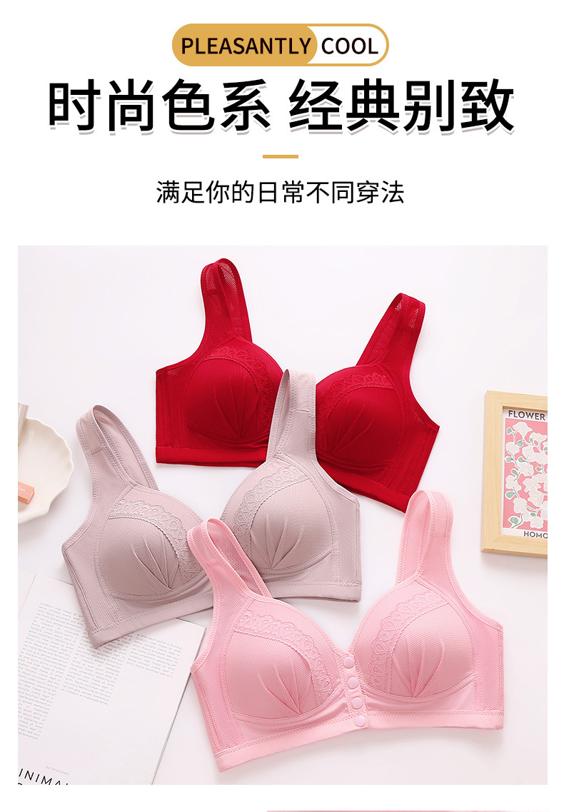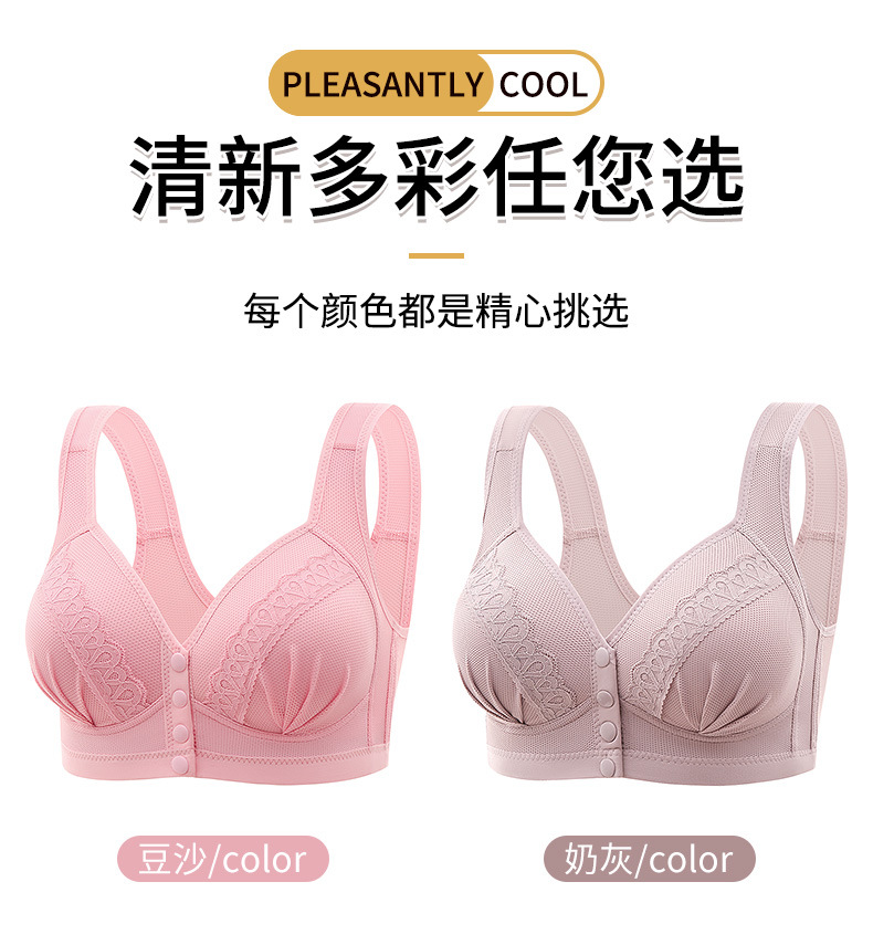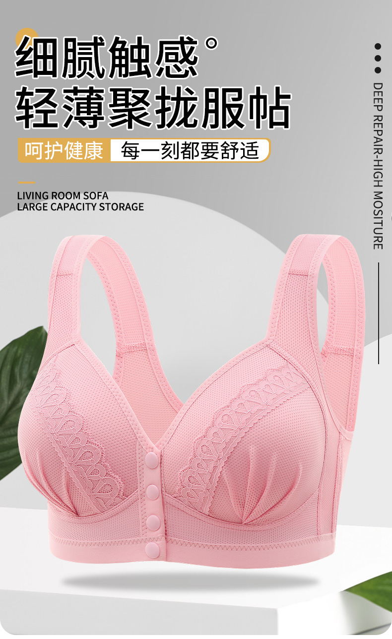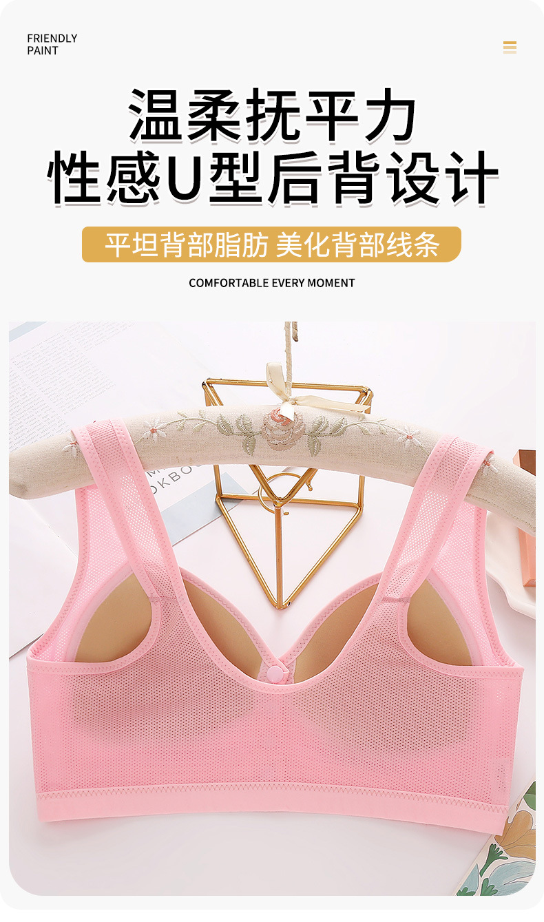 중년 및 노인을위한 강철 링이없는 재고 국경 간 브래지어 노인을위한 얇은 전면 개방 버클 조끼 브래지어 플러스 사이즈 여성용 속옷