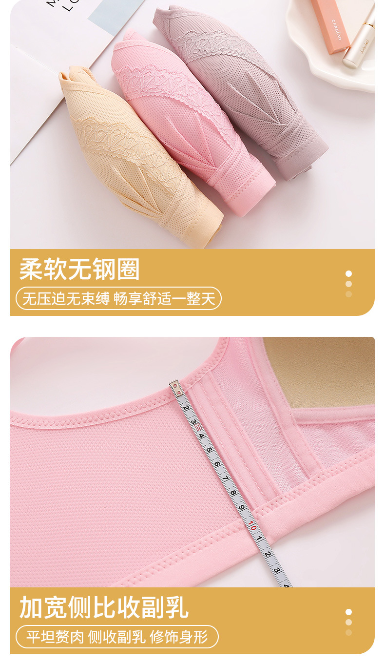 중년 및 노인을위한 강철 링이없는 재고 국경 간 브래지어 노인을위한 얇은 전면 개방 버클 조끼 브래지어 플러스 사이즈 여성용 속옷스토어 가기
