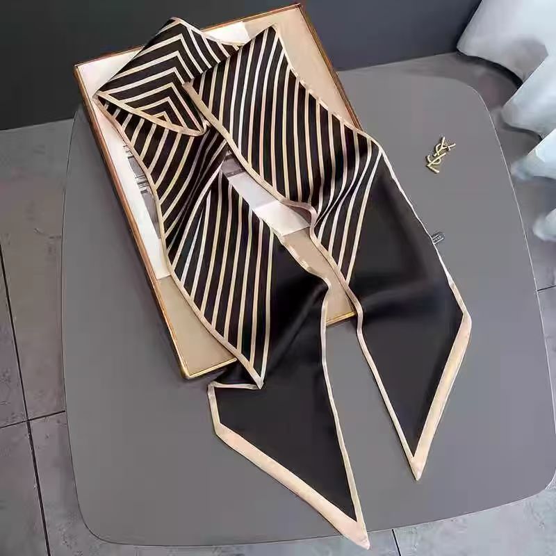 좁은 긴 실크 스카프 봄과 가을 올 매치 여자 2023 Houndstooth 전문 장식 작은 스카프 헤어 밴드 타이 백 스카프