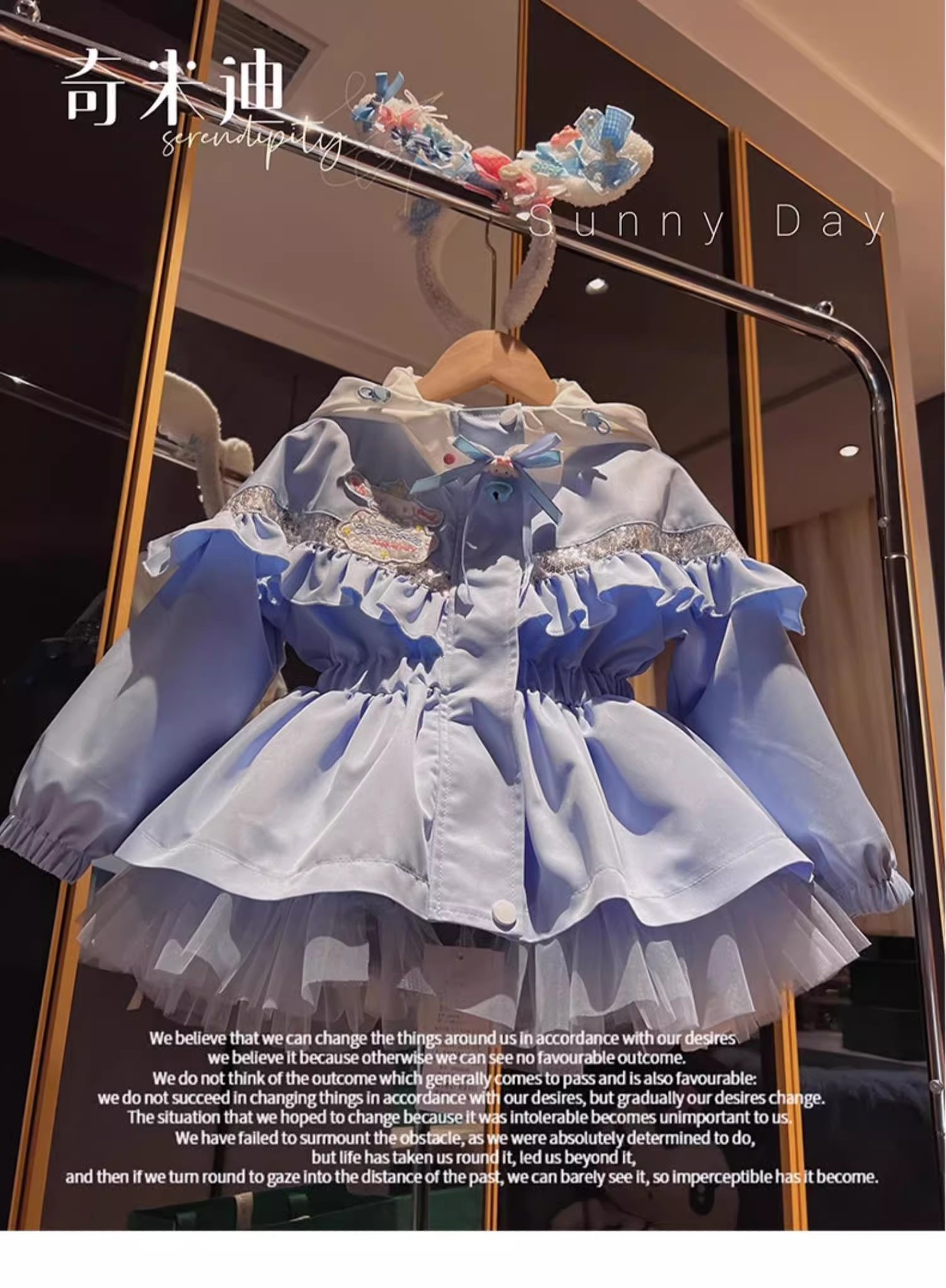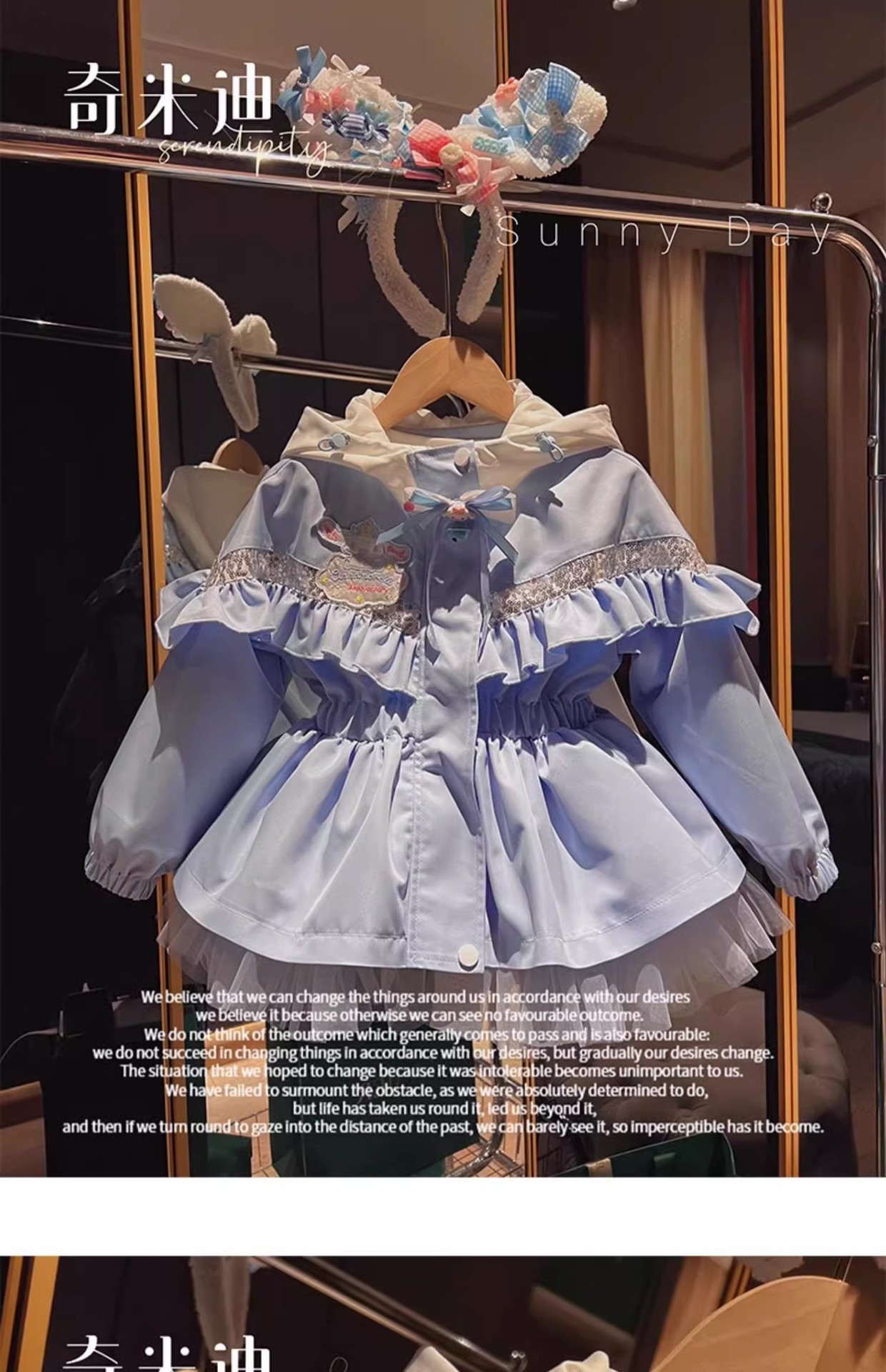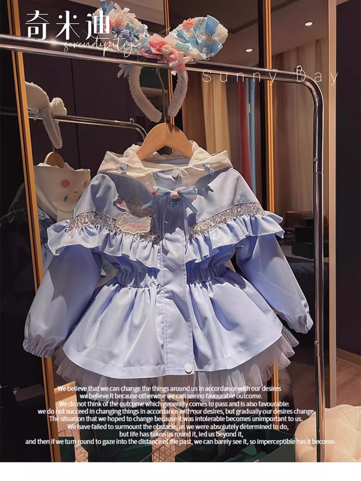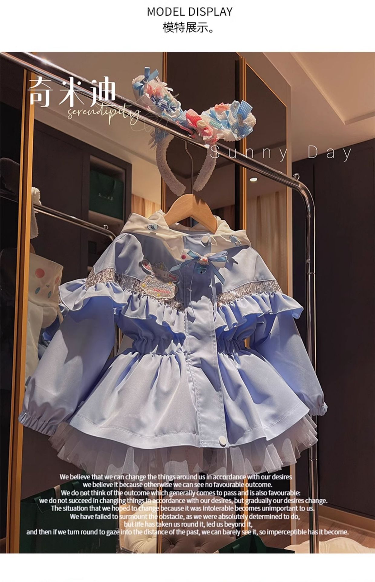 소녀의 코트 봄과 가을 2024 새로운 옥 구이 개 충전 옷 어린이 겨울 옷 서양식 어린 소녀의 가을 코트