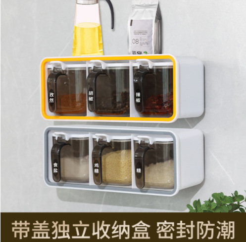 조미료 상자 벽걸이 가정용 주방 소금 글루타메이트 나트륨 조미료 탱크 저장 상자 조합 세트