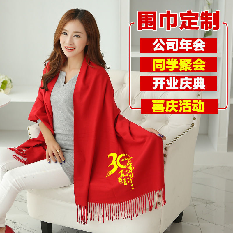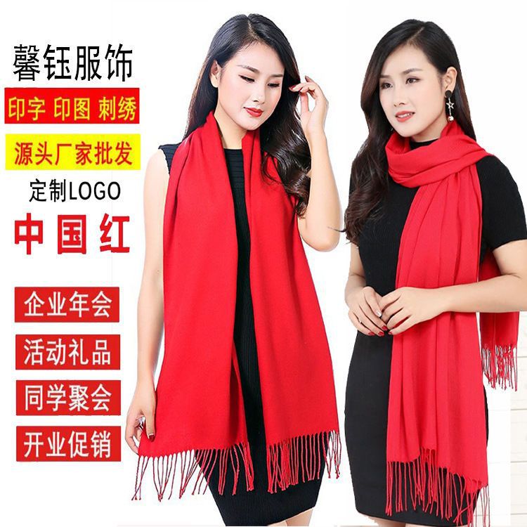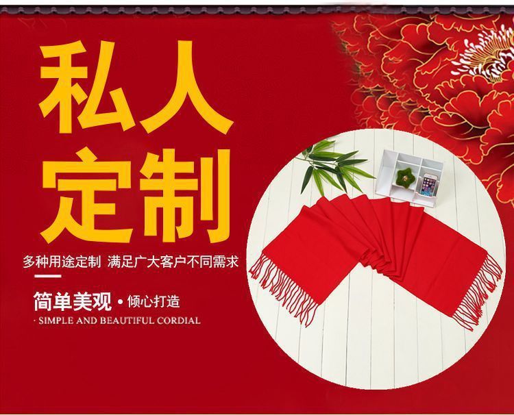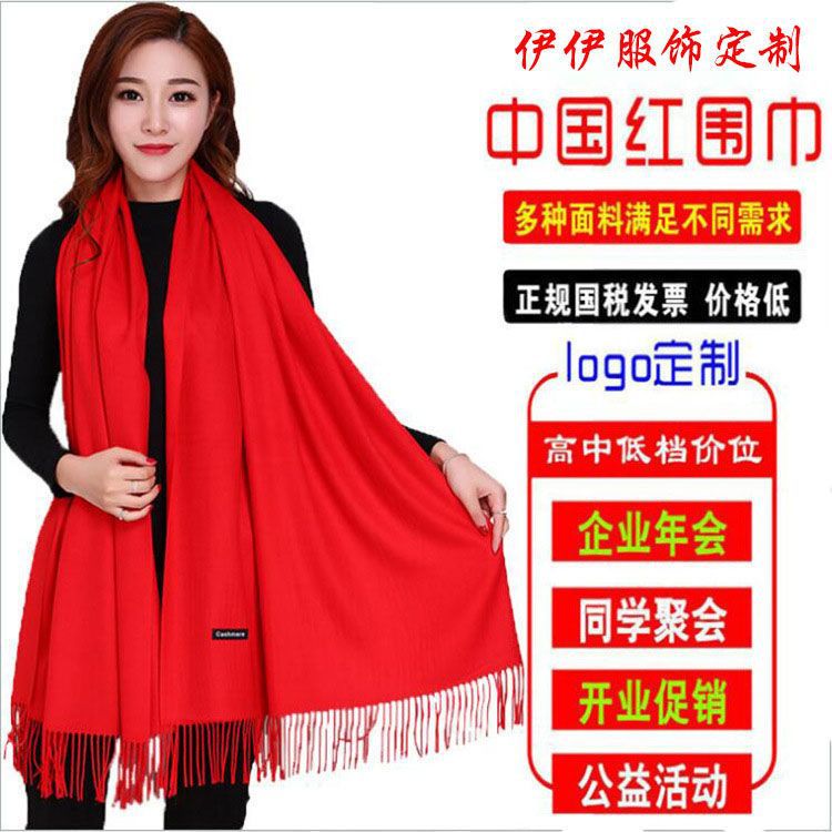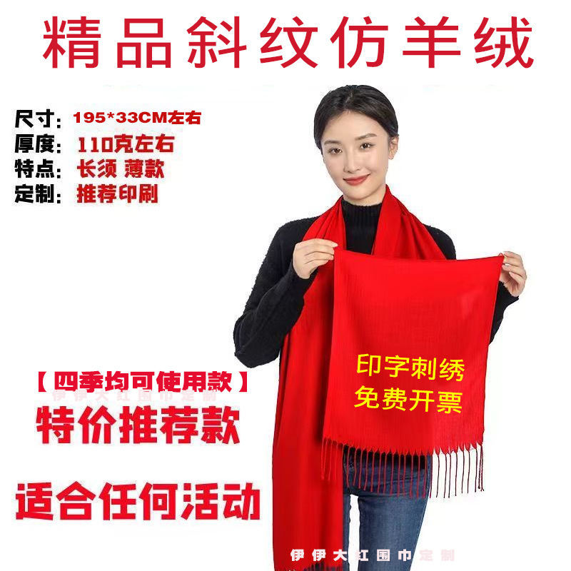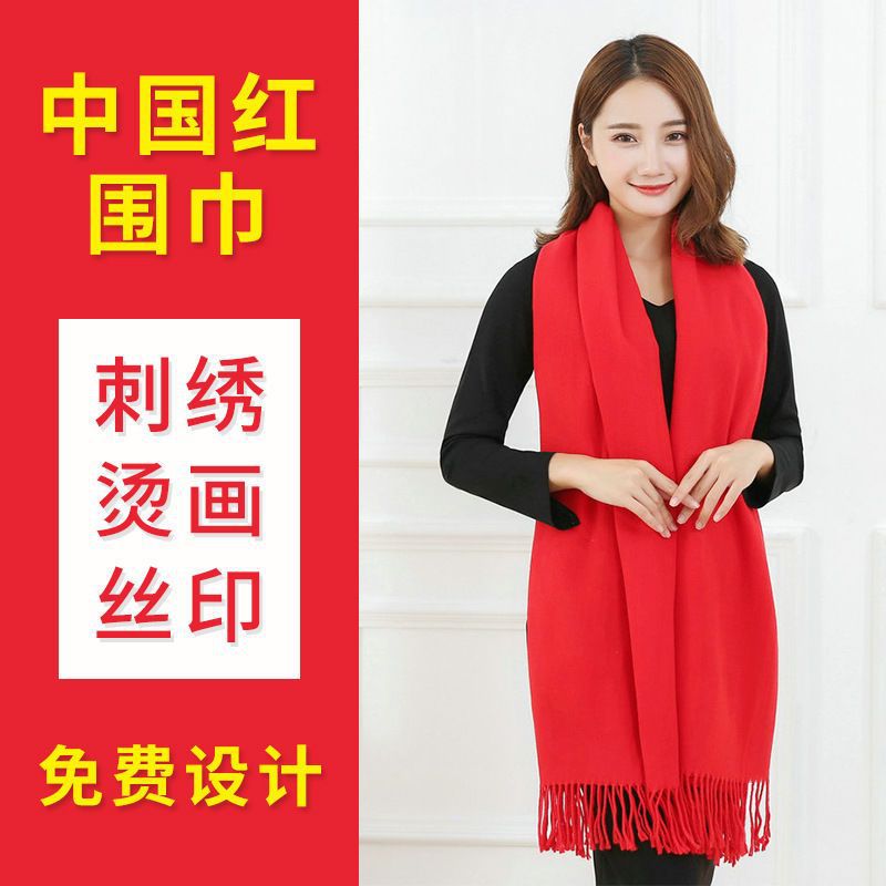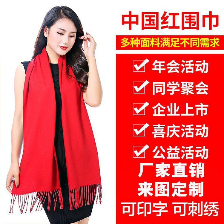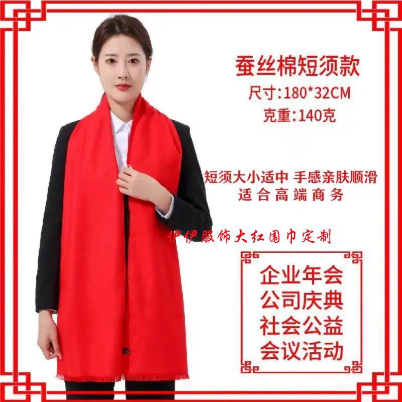 중국 빨간 스카프 사용자 정의 오프닝 파티 이벤트 연례 회의 선물 큰 빨간 스카프 패턴 로고 인쇄 자수