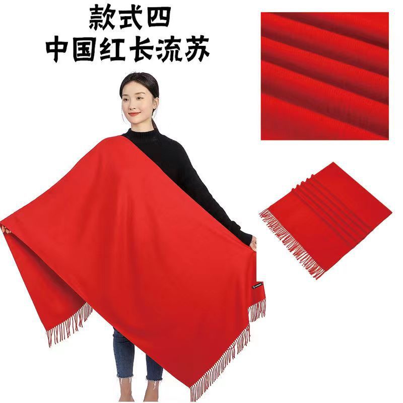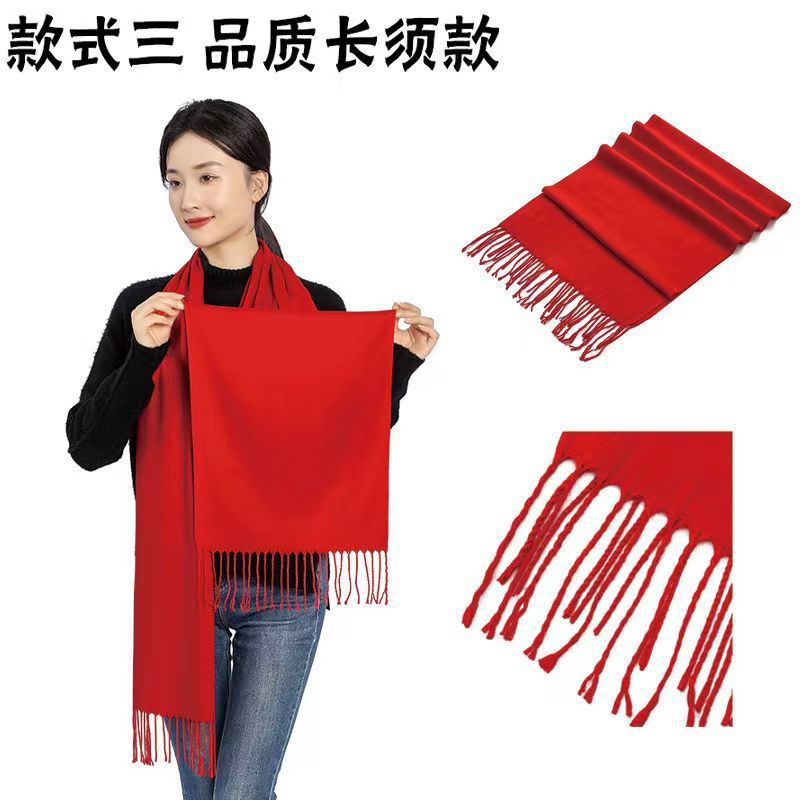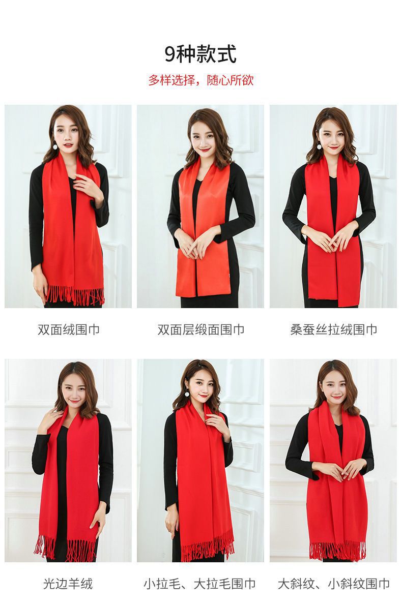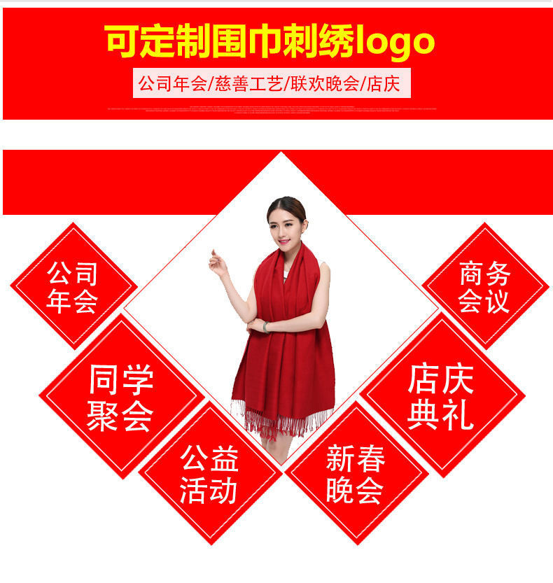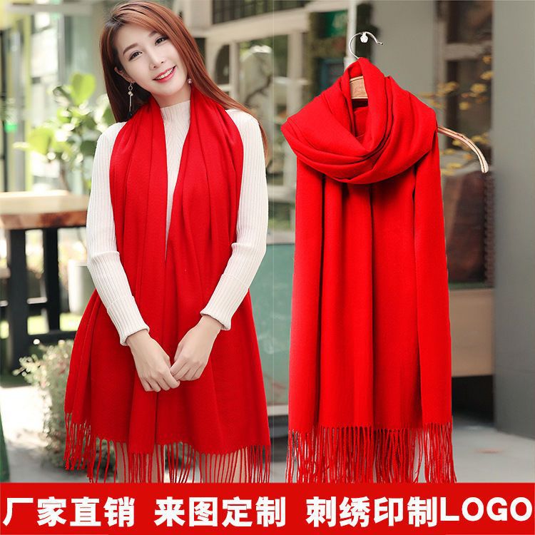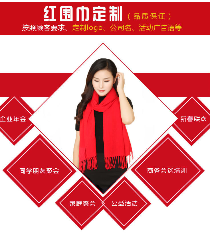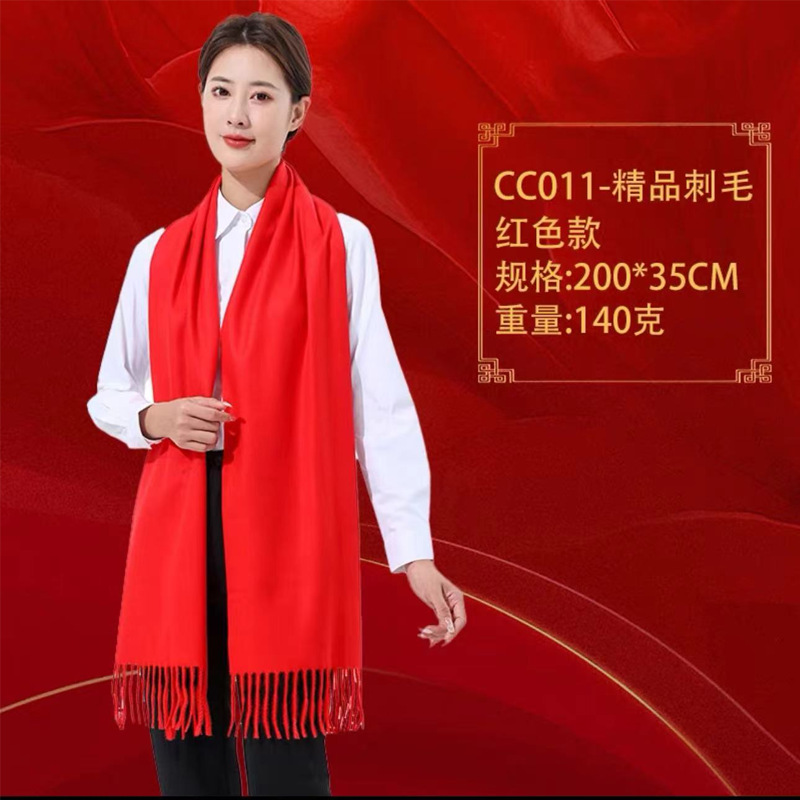 중국 빨간 스카프 사용자 정의 오프닝 파티 이벤트 연례 회의 선물 큰 빨간 스카프 패턴 로고 인쇄 자수