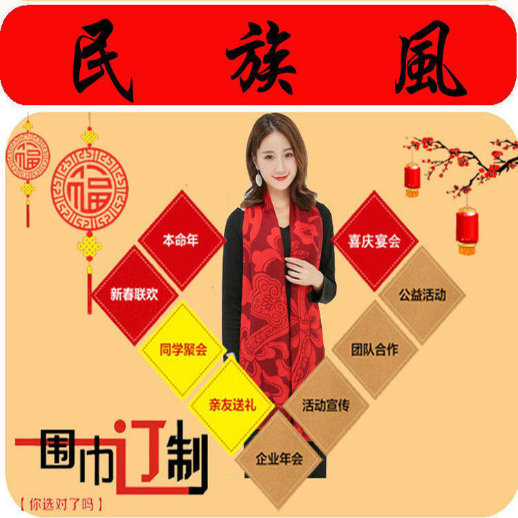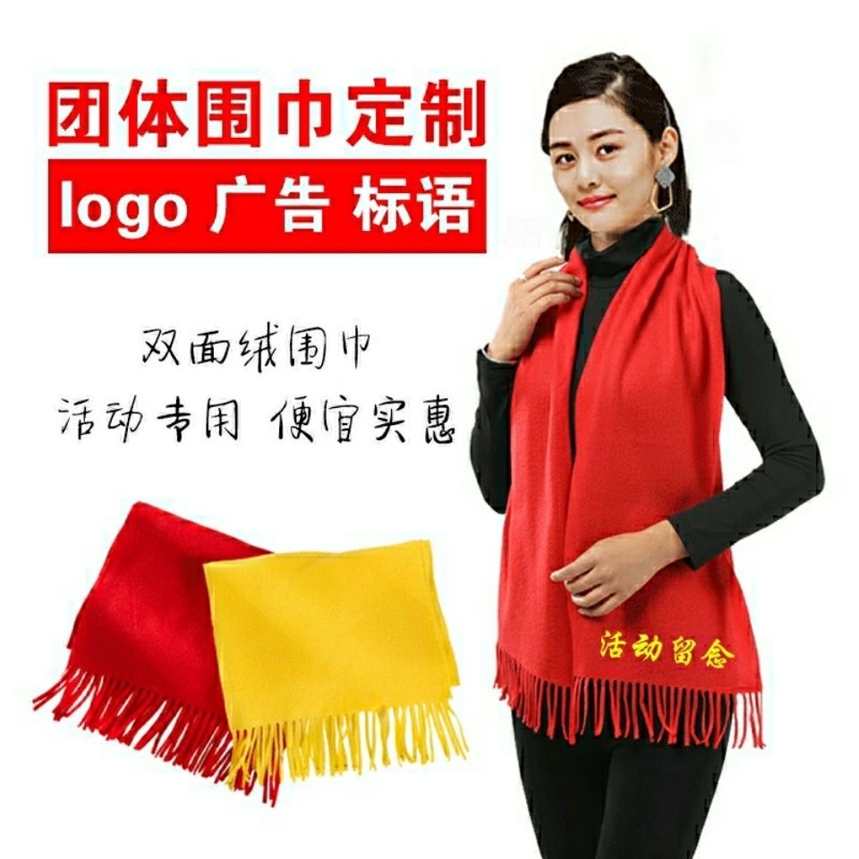 중국 빨간 스카프 사용자 정의 오프닝 파티 이벤트 연례 회의 선물 큰 빨간 스카프 패턴 로고 인쇄 자수스토어 가기
