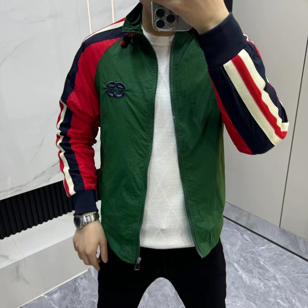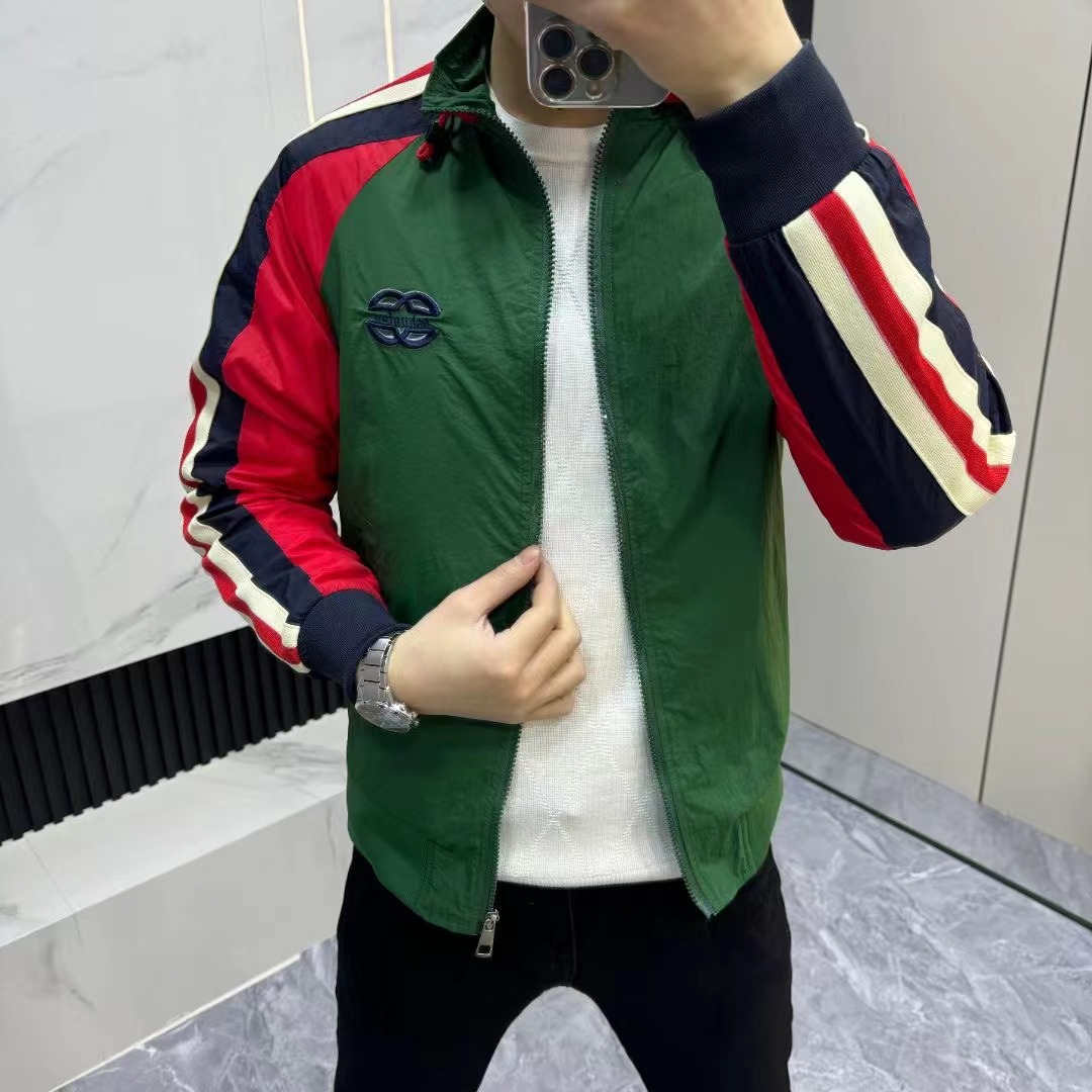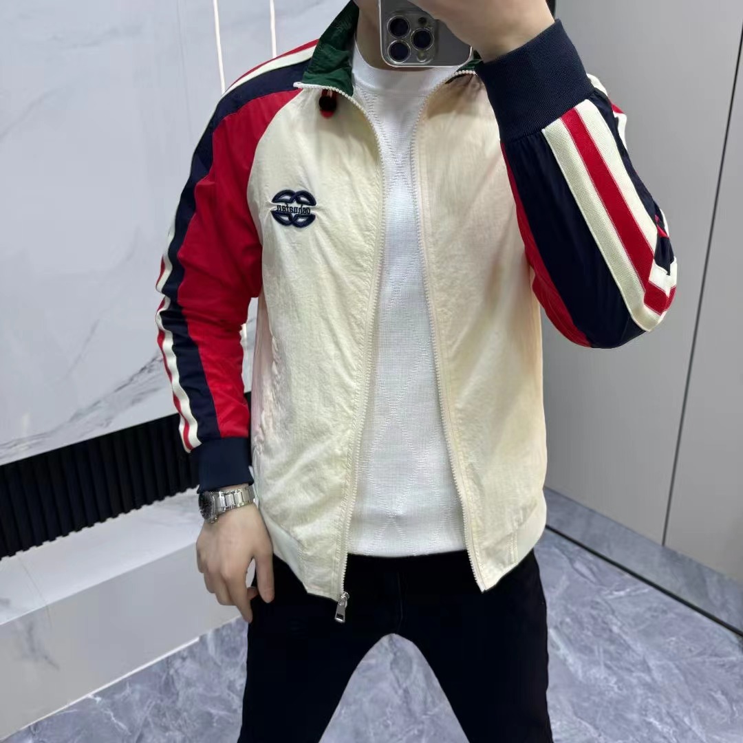 2024 패셔너블하고 다재다능한 스탠드 칼라 캐주얼 재킷 여름 신작 남성 한국식 컬러 블록 재킷 탑 트렌디스토어 가기