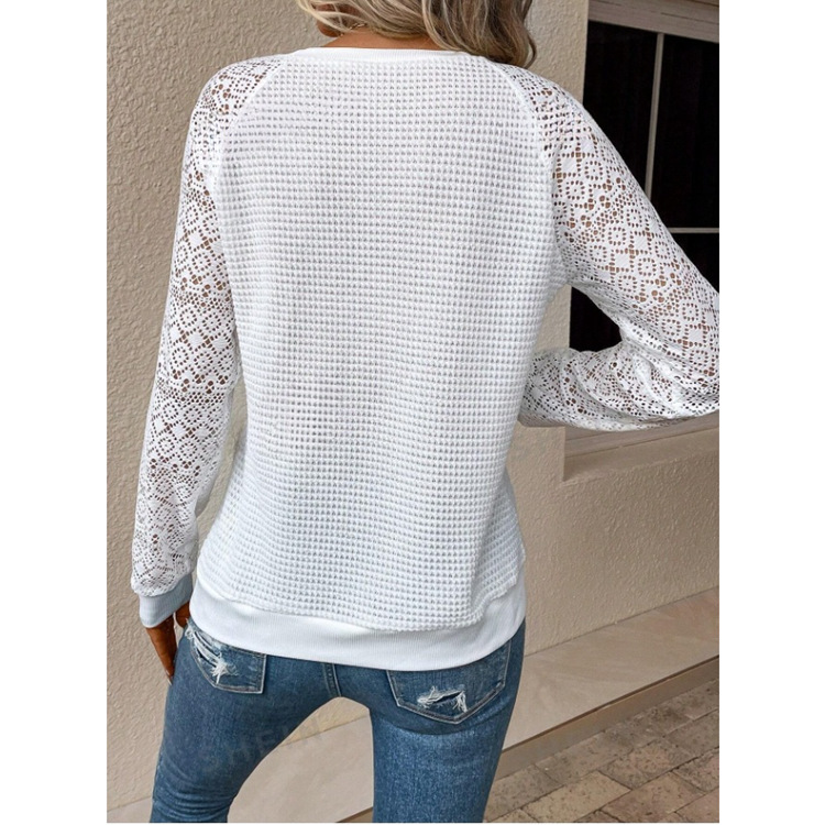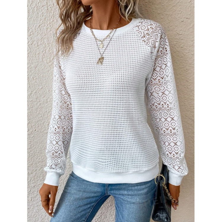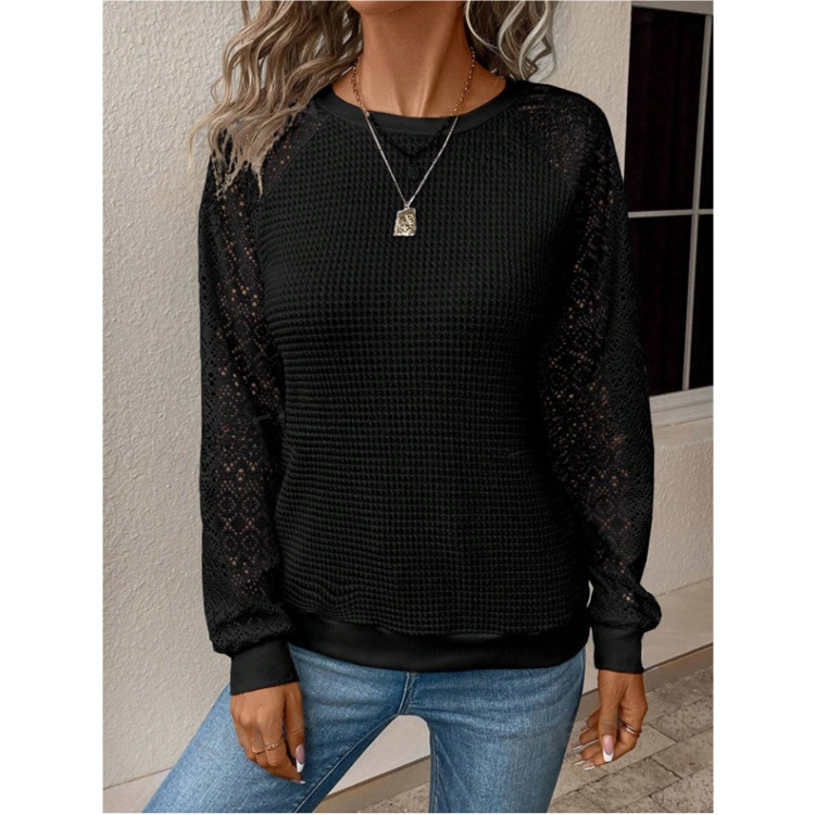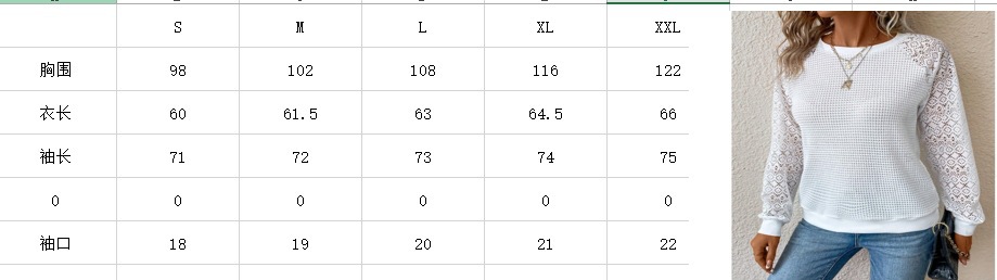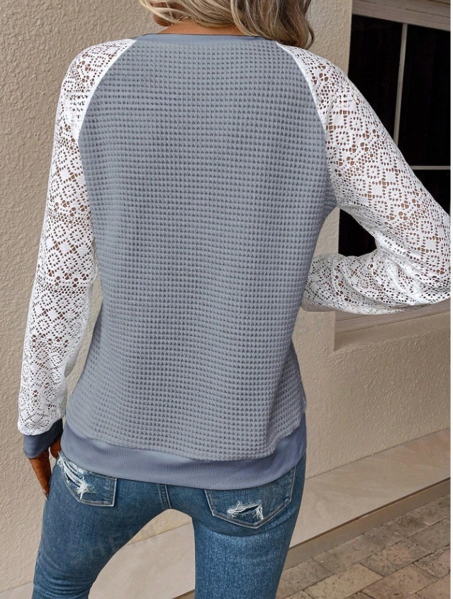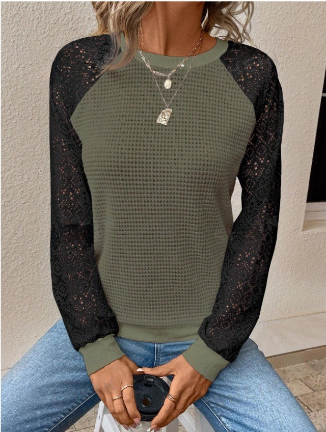 2024 독립 역 아마존 테무 폭발 가을 플러스 사이즈 새로운 라운드 넥 긴 소매 레이스 스티칭 셔츠 여성