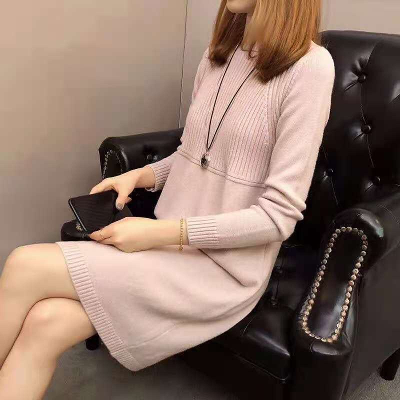 2024 베이스 셔츠 여성 원피스 니트 스웨터 여성의 느슨한 가을 신식 탑 중간 길이 재킷스토어 가기