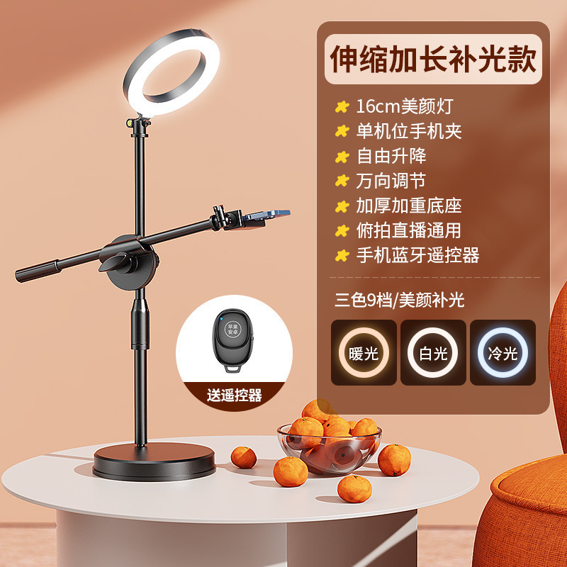• 텔레스코픽 확장 버전 [16cm 필라이트☆범용 회전☆오버헤드 라이브 스트리밍] + 블루투스 카메라