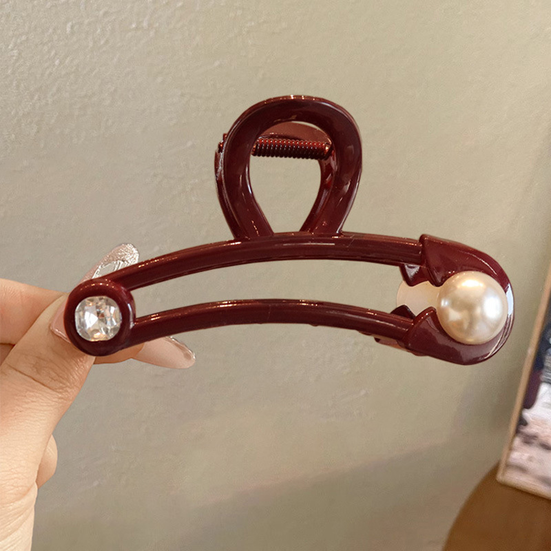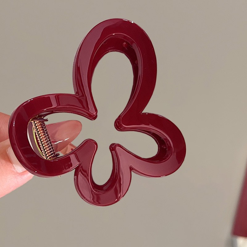 프렌치 레트로 앙코라 레드 대형 그라스 머리 수량 상어 클립 헤어 그래프 헤드 클립 버건디 헤어 액세서리