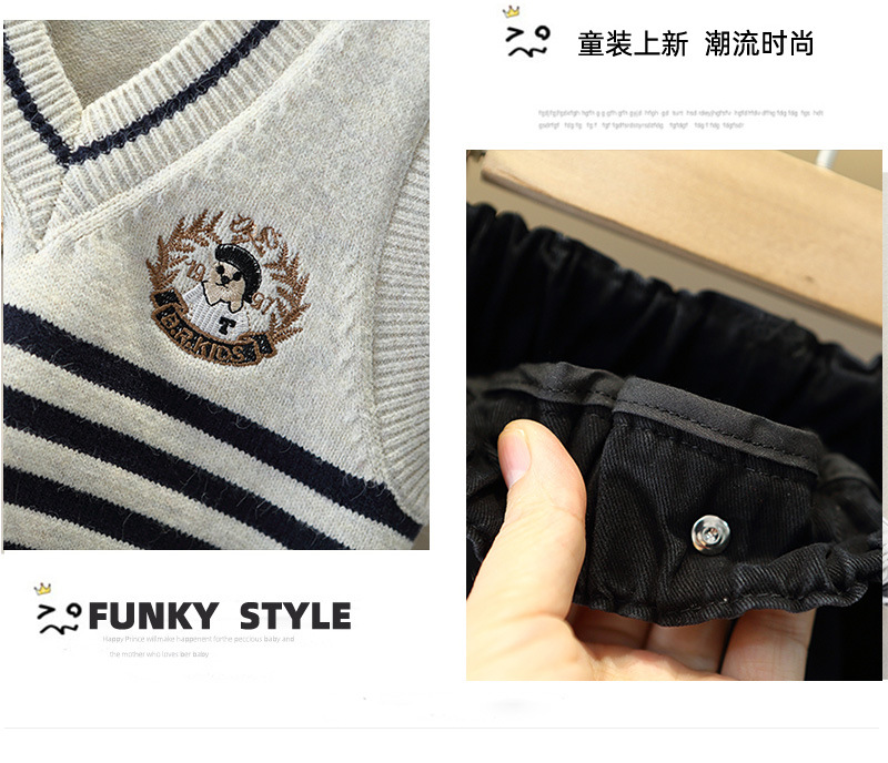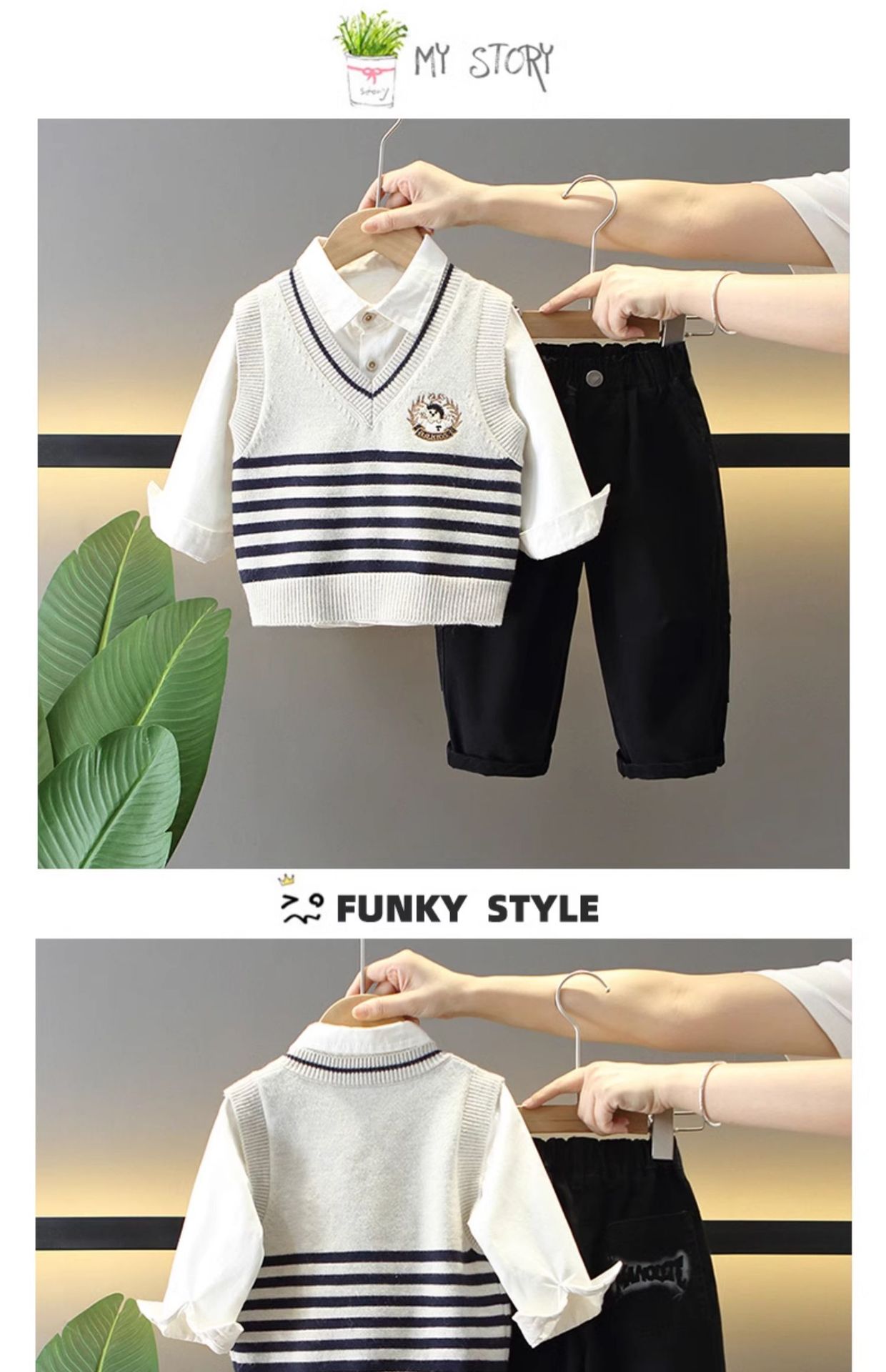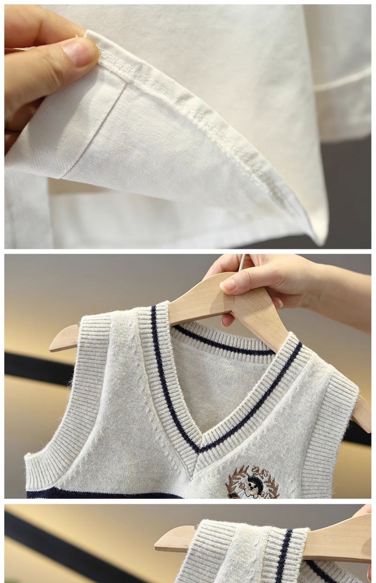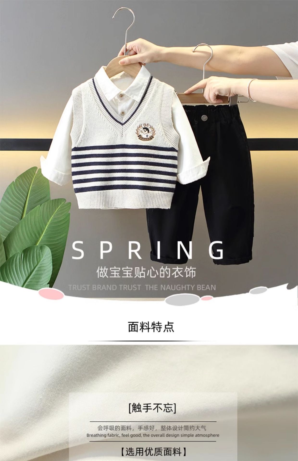 남아 정장 세트 봄 가을 2025 신상 스타일리쉬 유아 아동 대학풍 스웨터 조끼 3종 세트 아기옷스토어 가기