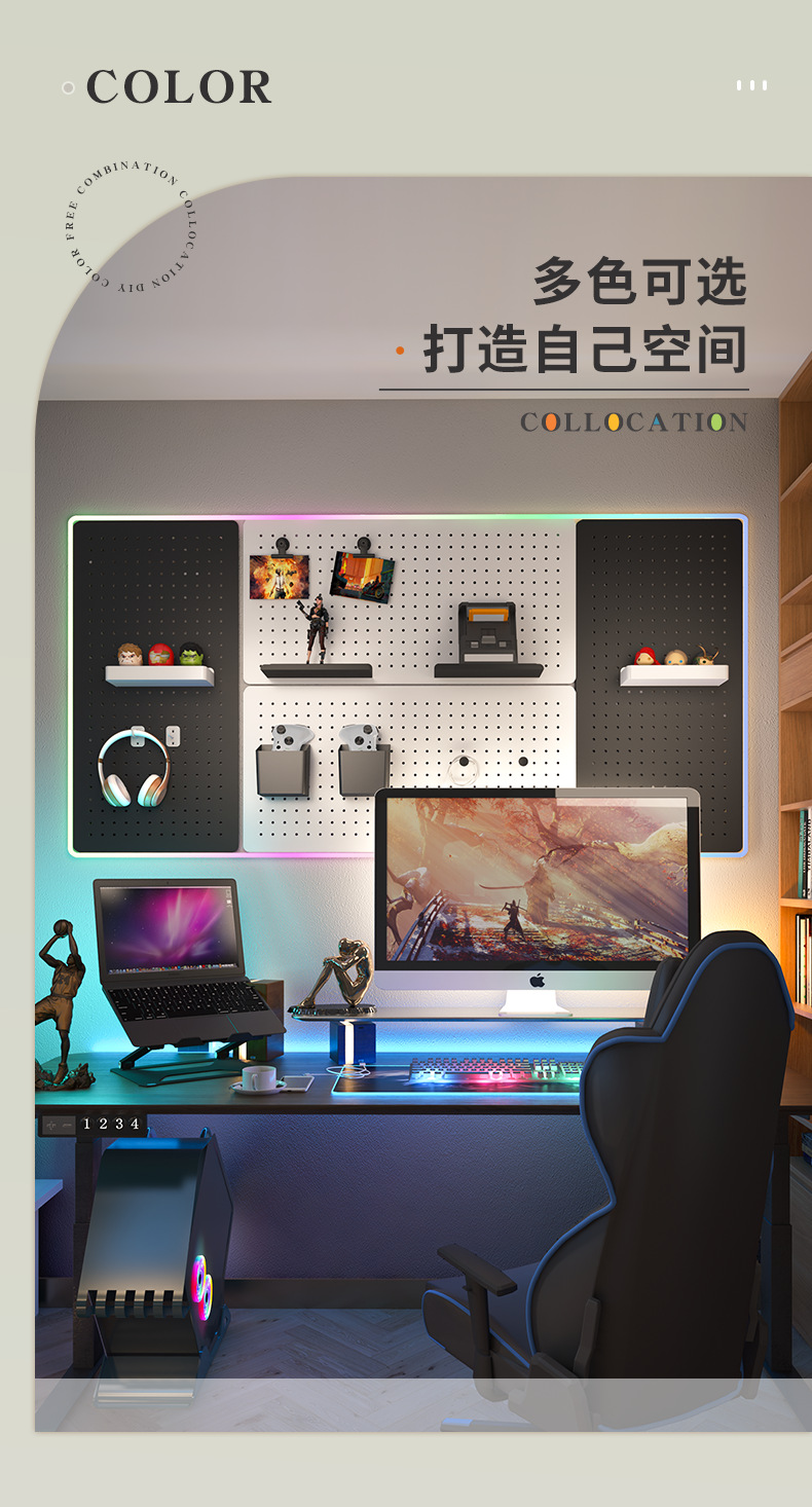 게임 테이블 벽걸이형 홀보드 디스플레이 스탠드, 컴퓨터 책상 벽걸이형 수납 정리대, 장비 배치 선반, 책상