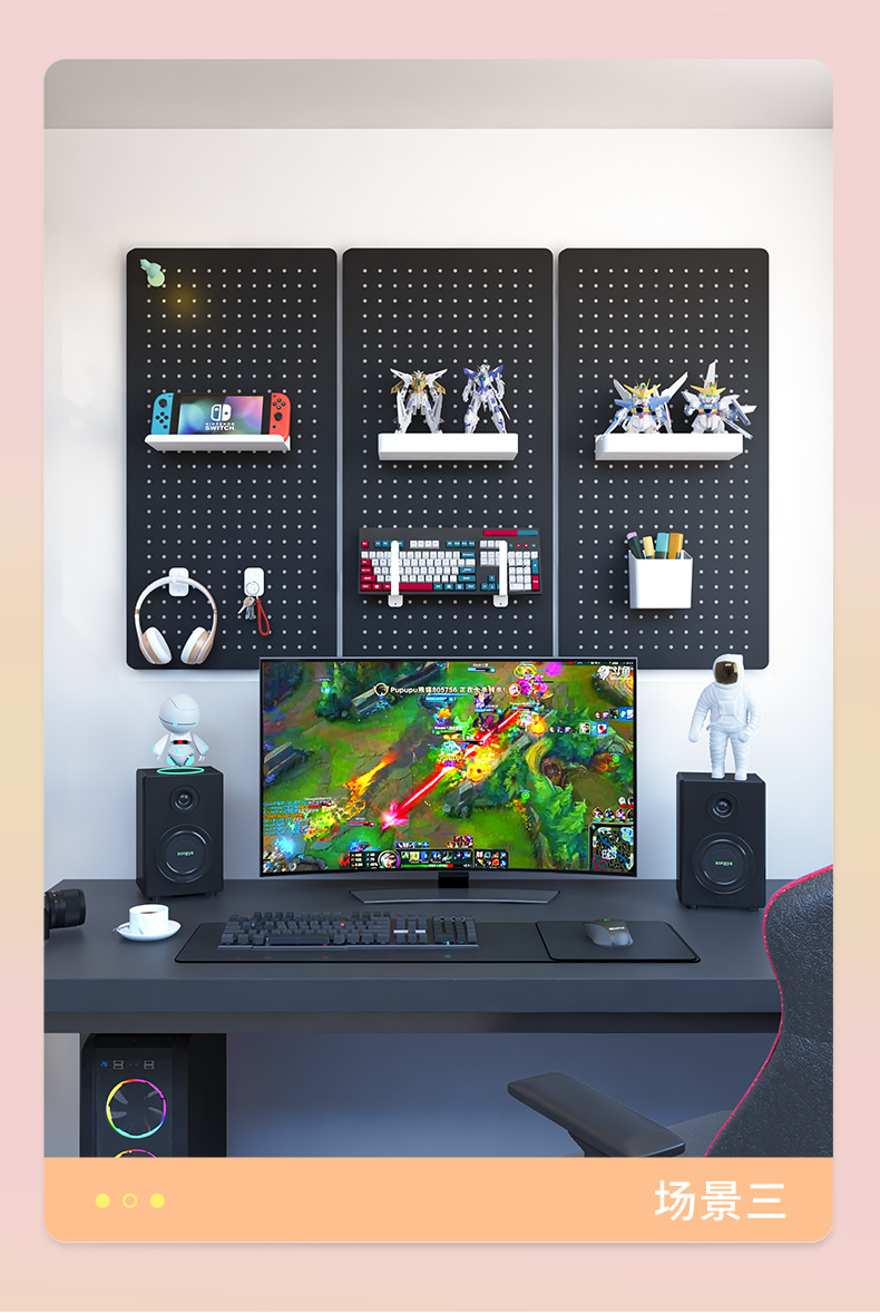 게임 테이블 벽걸이형 홀보드 디스플레이 스탠드, 컴퓨터 책상 벽걸이형 수납 정리대, 장비 배치 선반, 책상스토어 가기