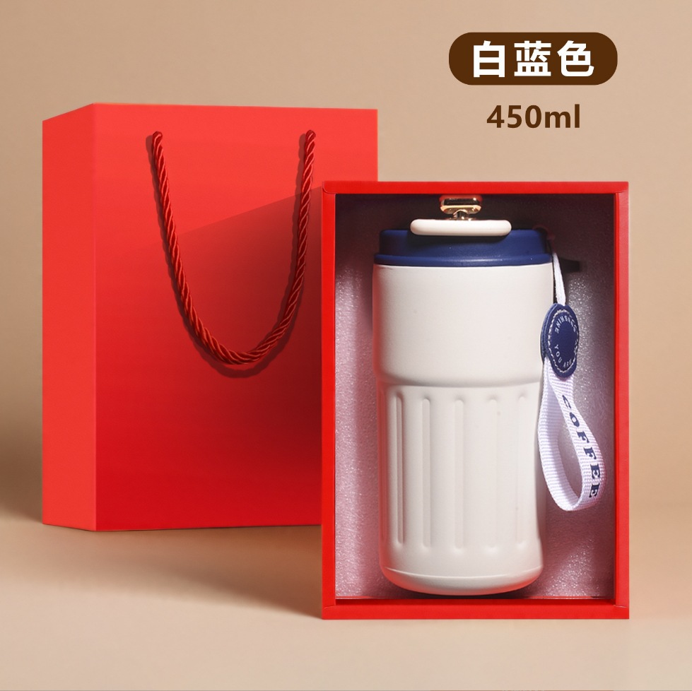 • 화이트 블루 스마트 커피 컵 + 선물 상자