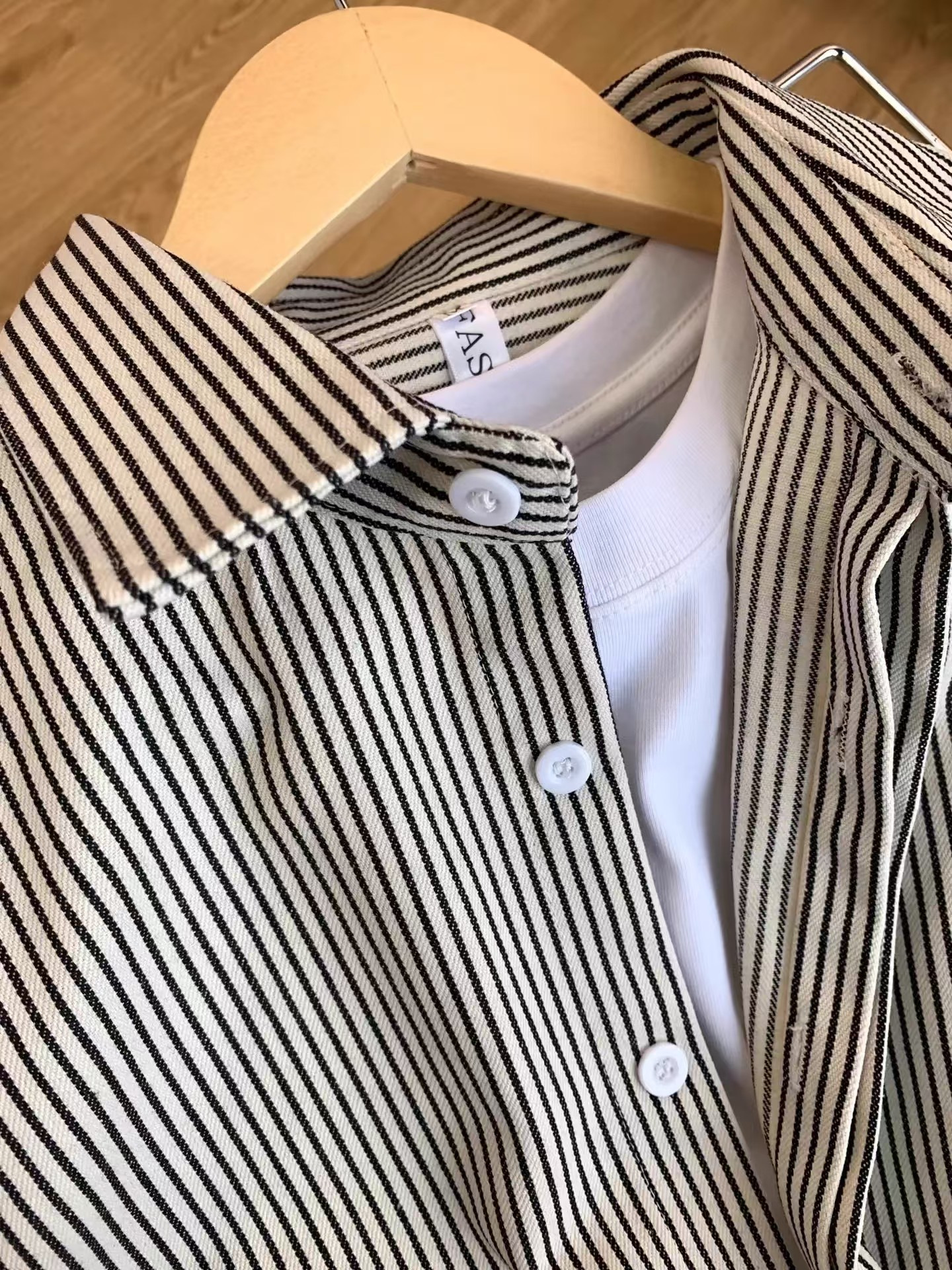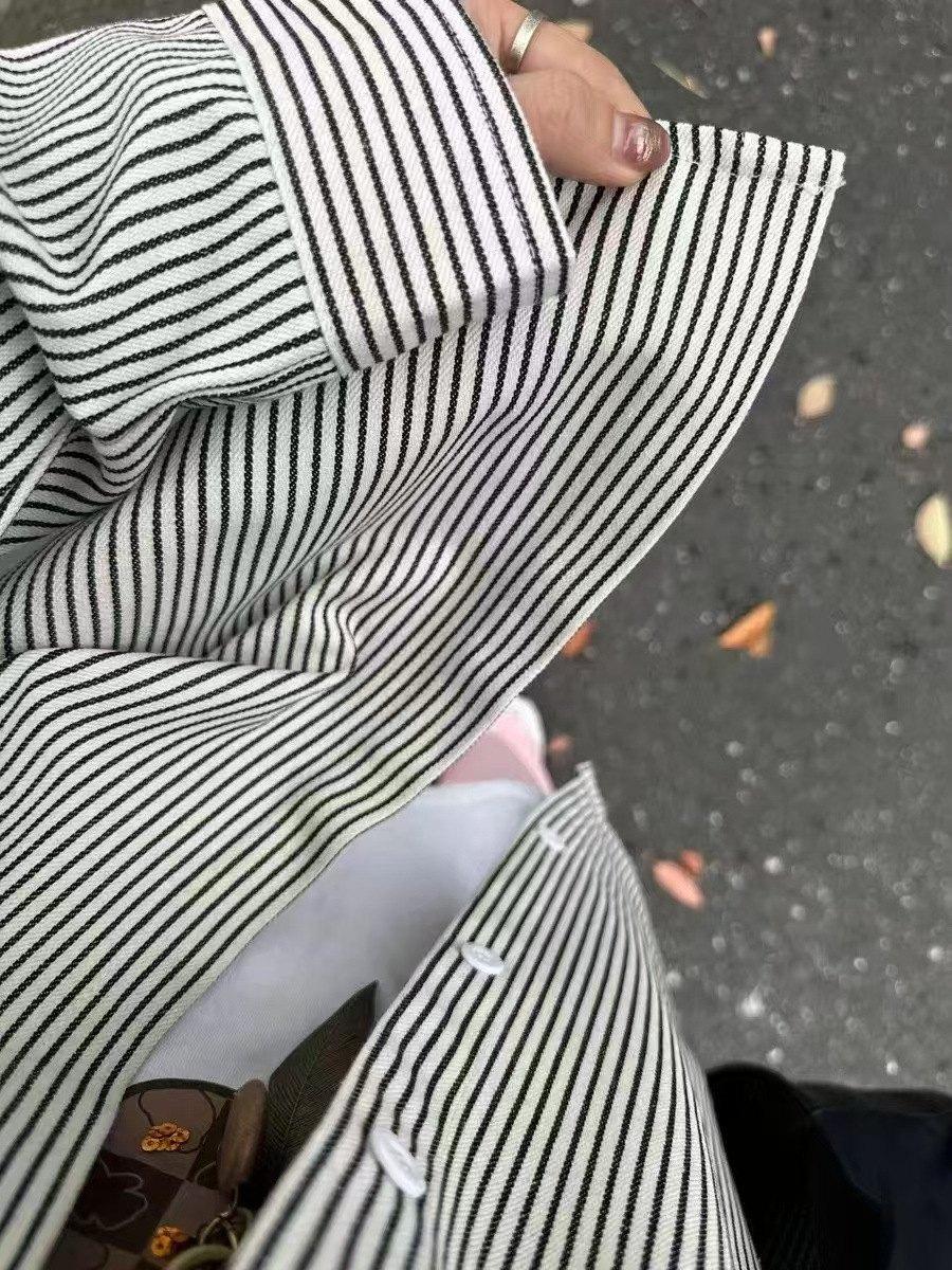 흑백 줄무늬 셔츠 봄과 가을 소녀 느슨한 두꺼운 셔츠 코트 연인 코트 공장 도매 재고