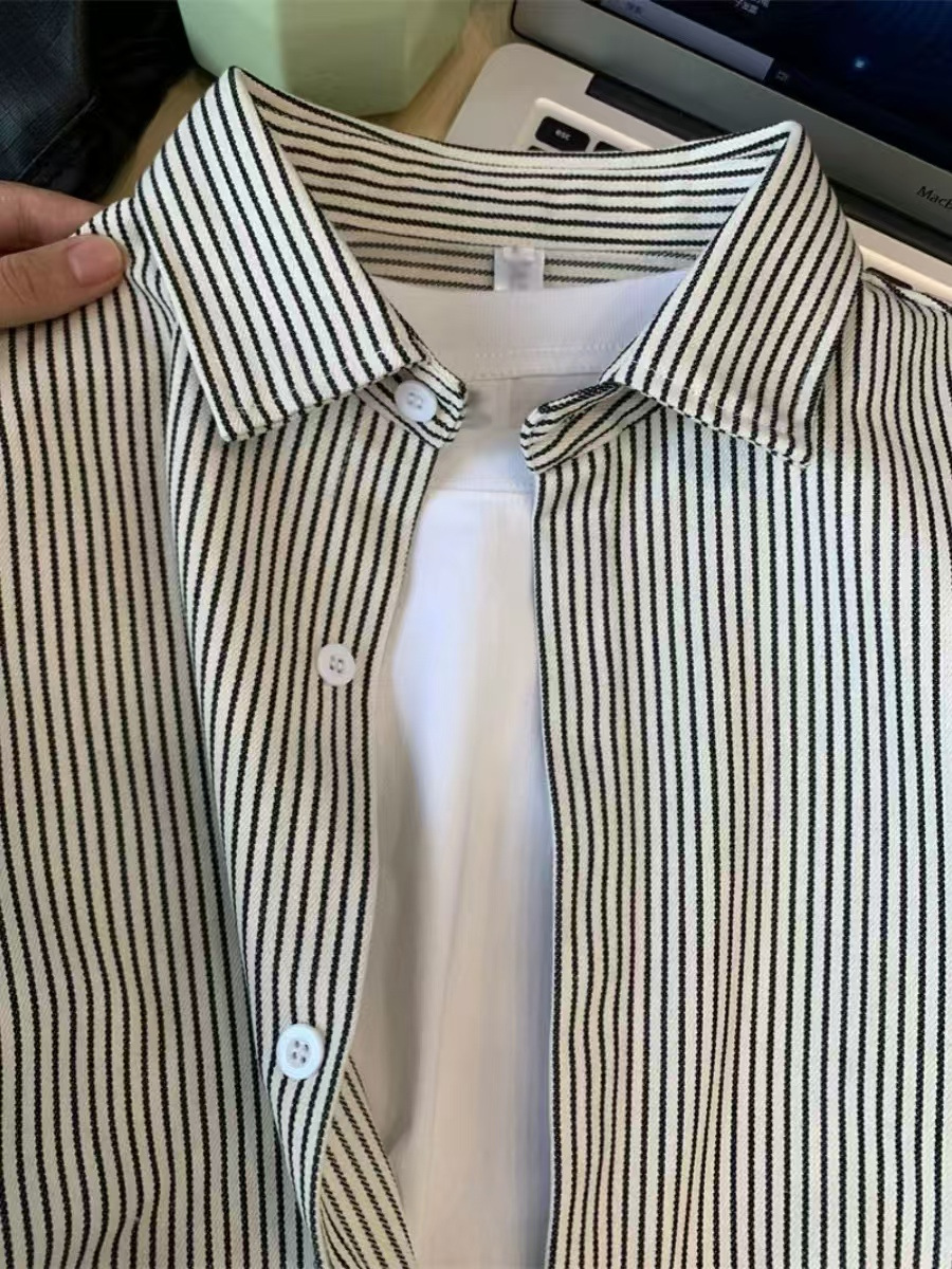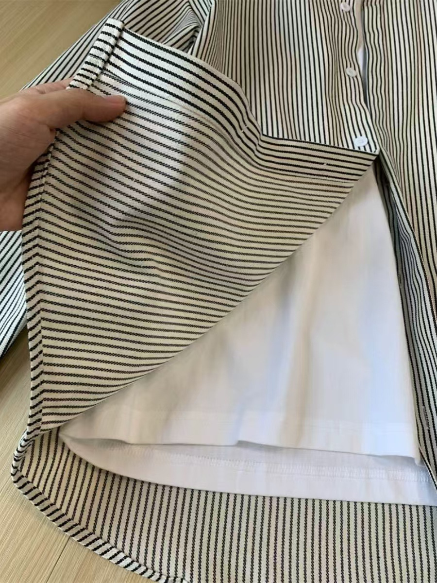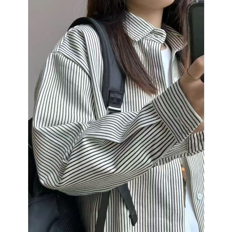 흑백 줄무늬 셔츠 봄과 가을 소녀 느슨한 두꺼운 셔츠 코트 연인 코트 공장 도매 재고스토어 가기