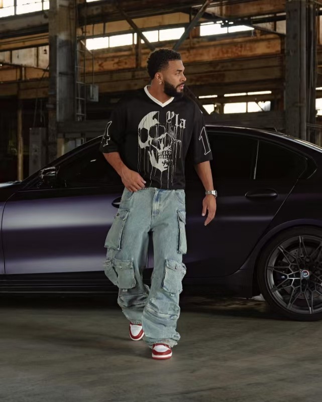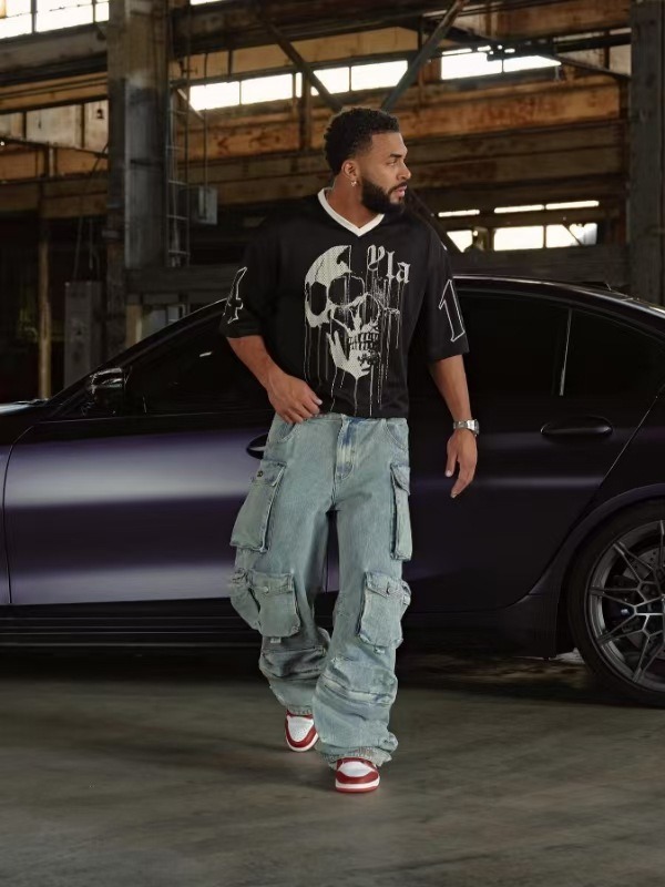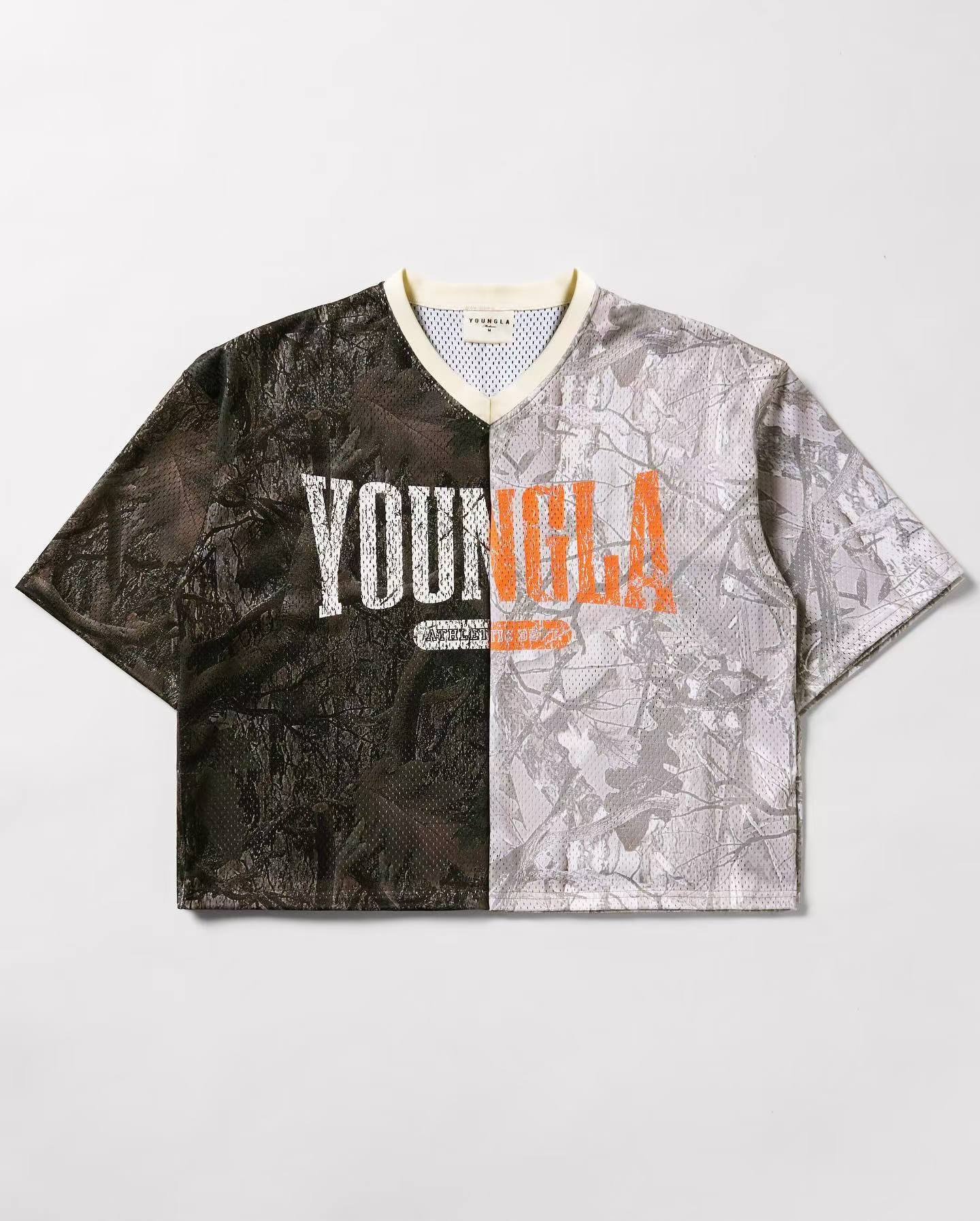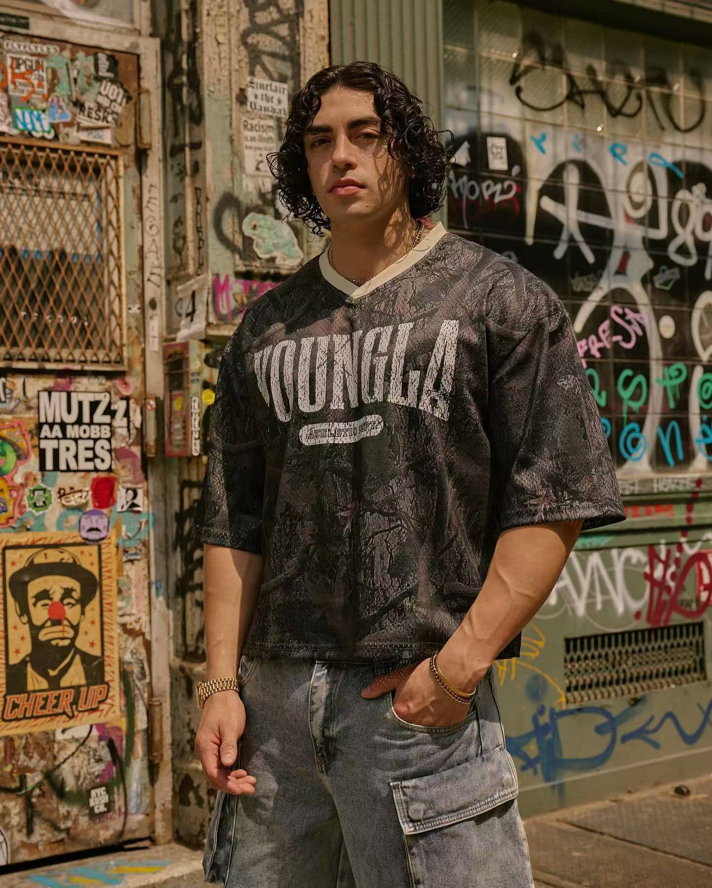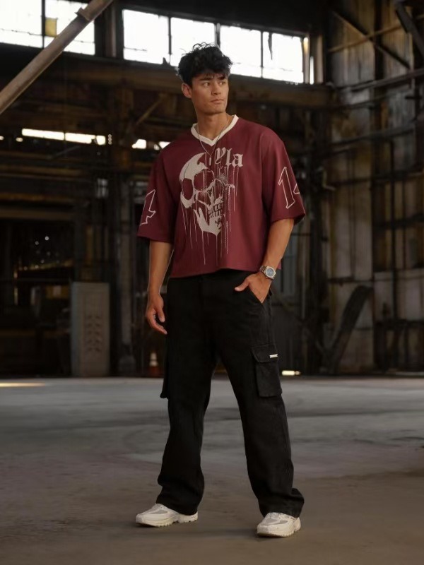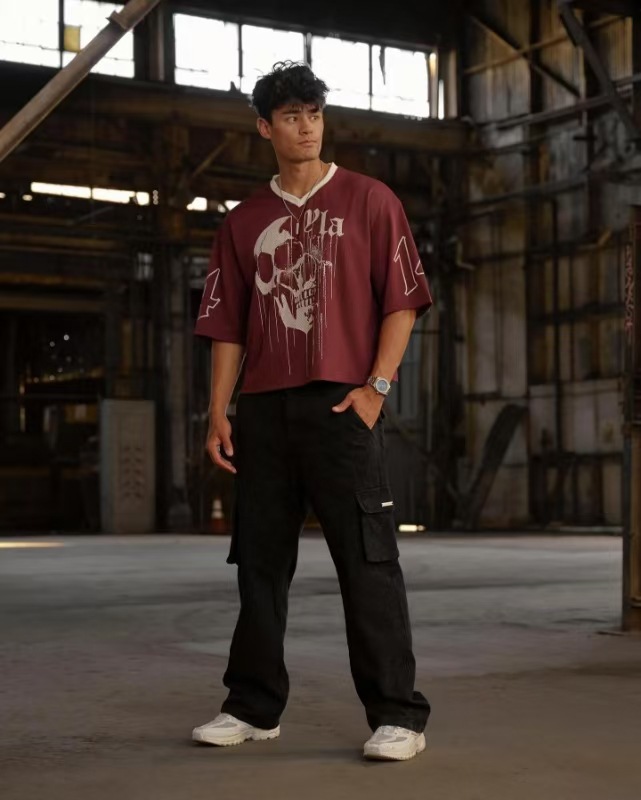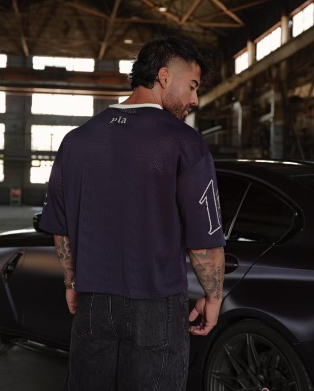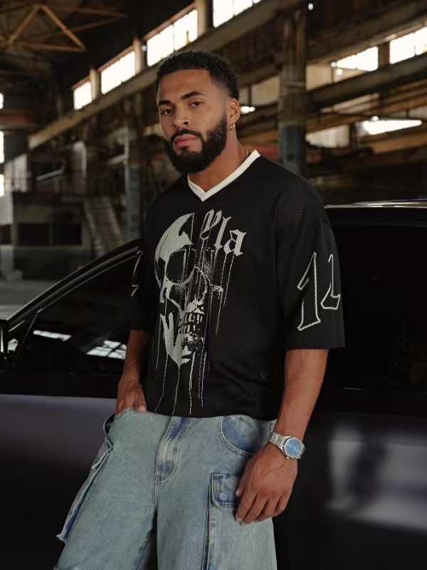 국경 간 미국 패션 브랜드 슈퍼 대형 스포츠 티셔츠 남성 피트니스 훈련 빠른 건조 통기성 메쉬 인쇄 반팔 탑