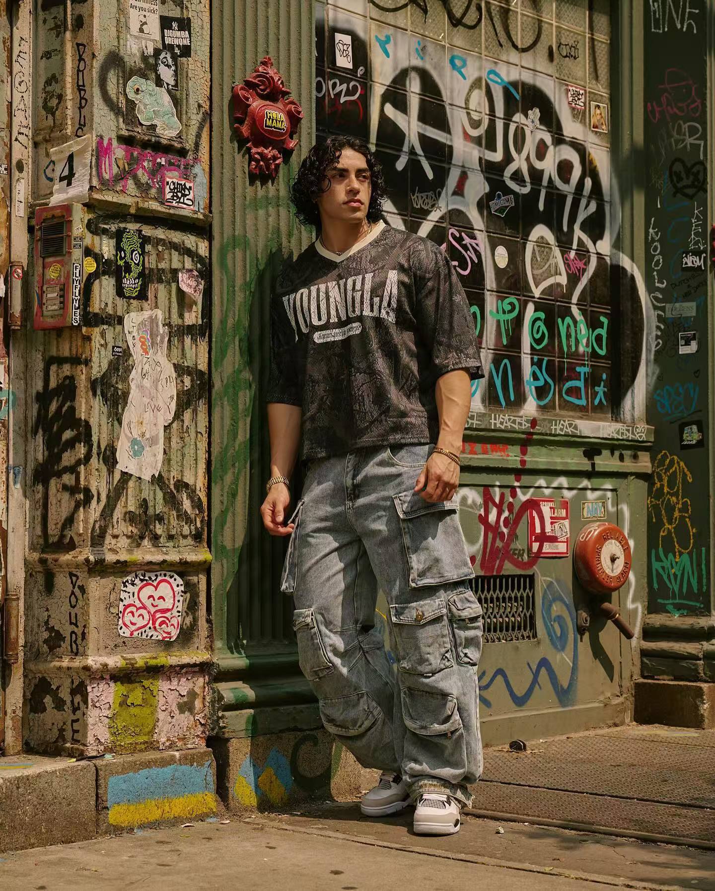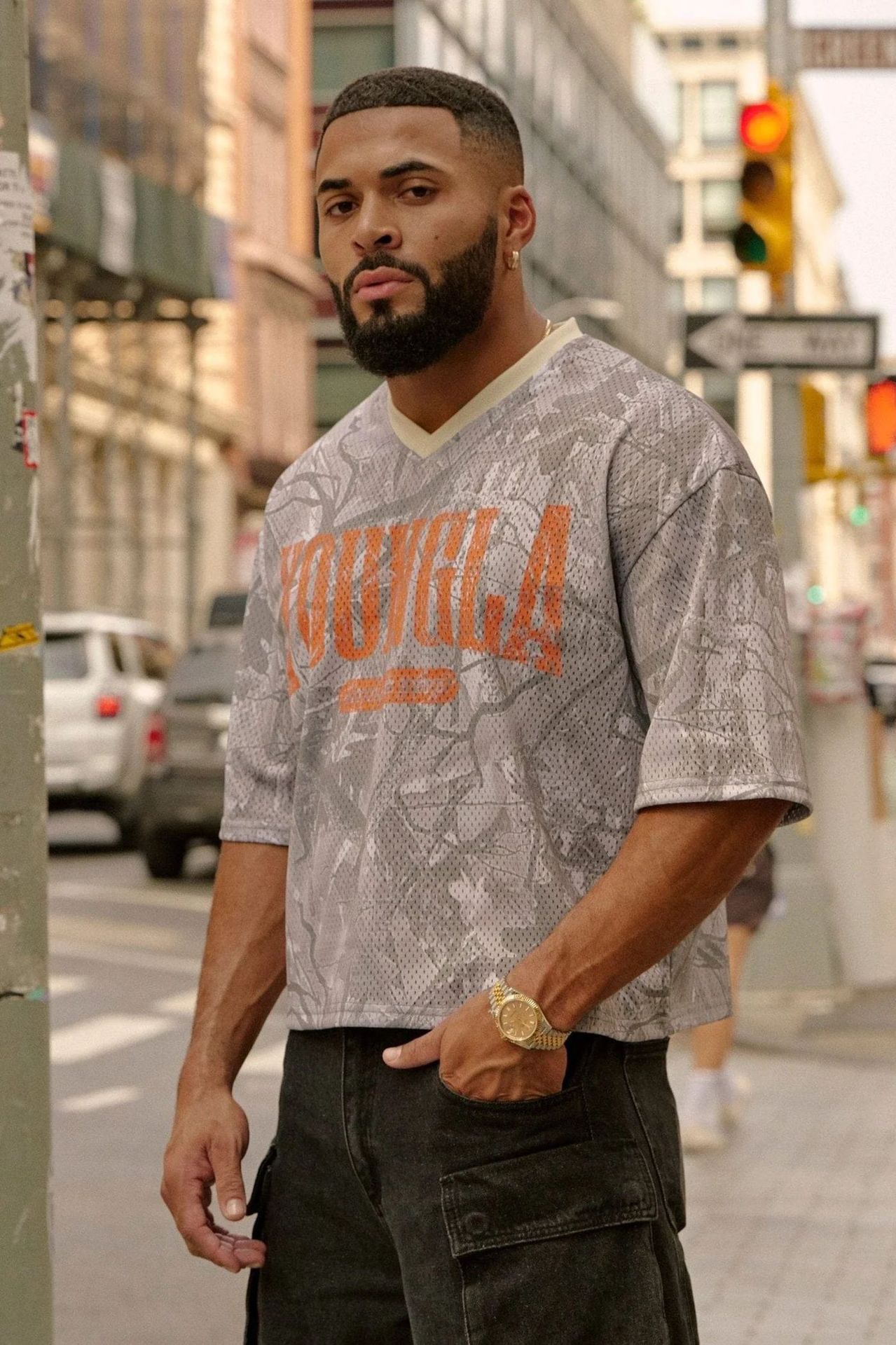 국경 간 미국 패션 브랜드 슈퍼 대형 스포츠 티셔츠 남성 피트니스 훈련 빠른 건조 통기성 메쉬 인쇄 반팔 탑스토어 가기