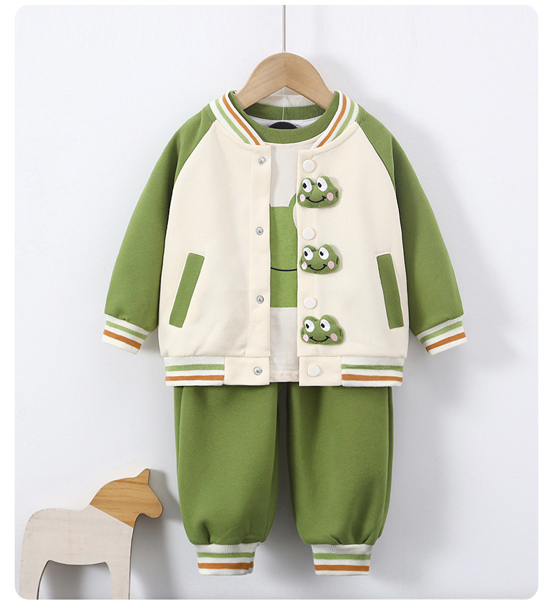 2025秋季新款可爱卡通马甲圆领长袖三件套宝宝休闲长裤儿童三件套