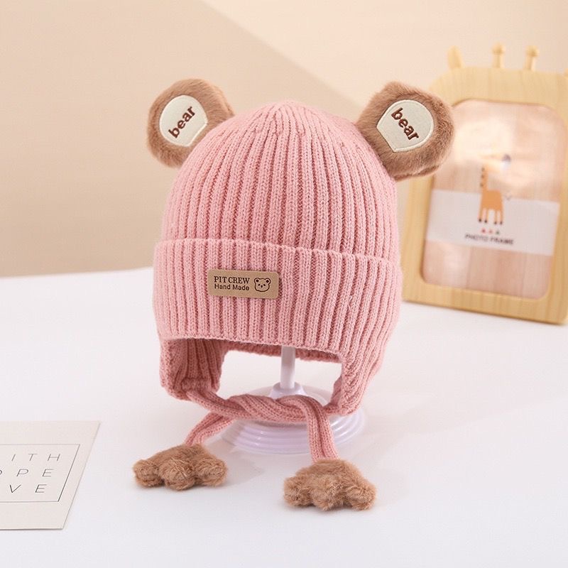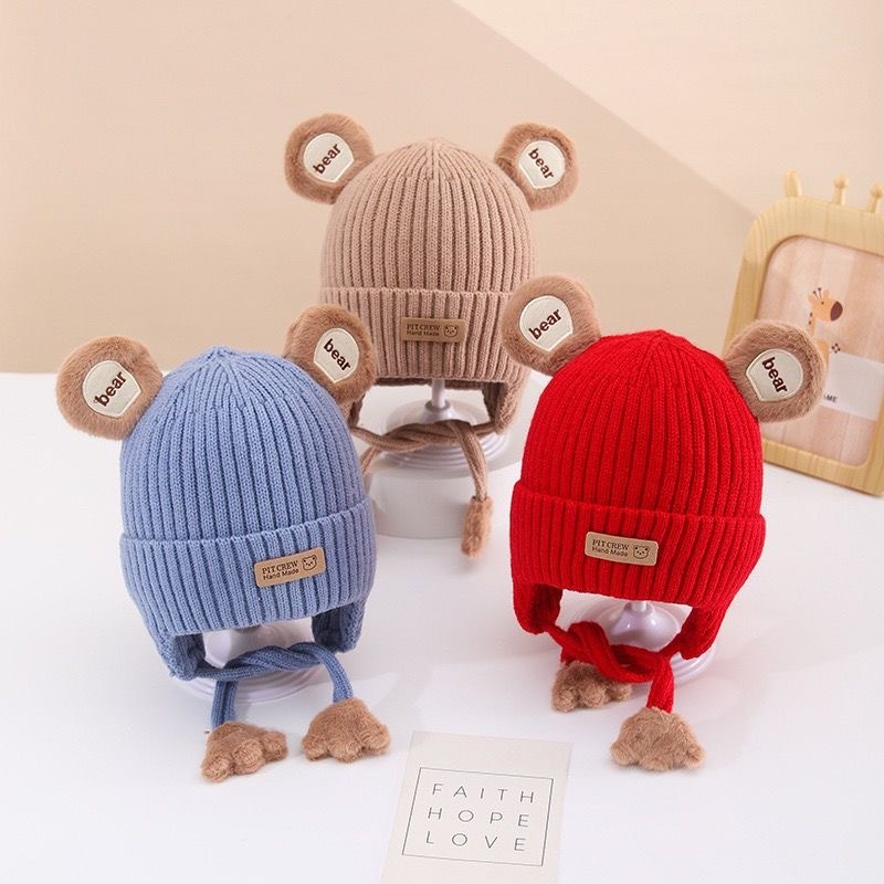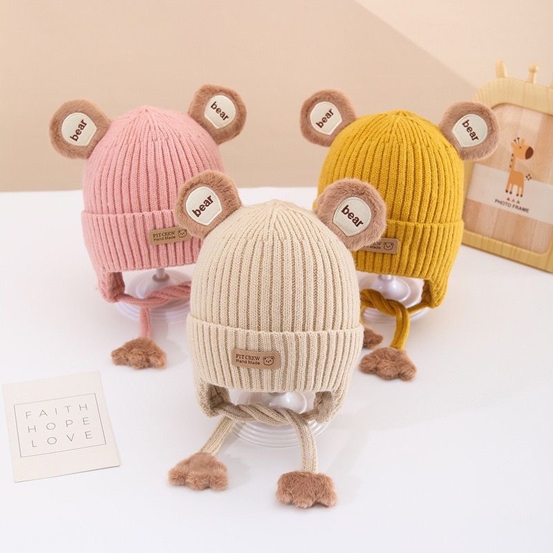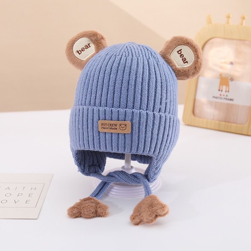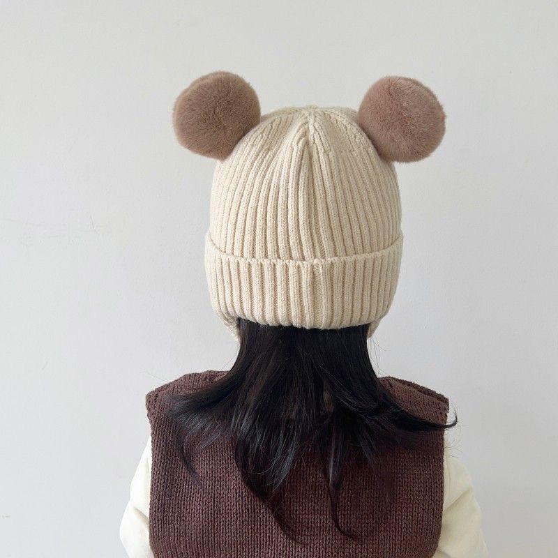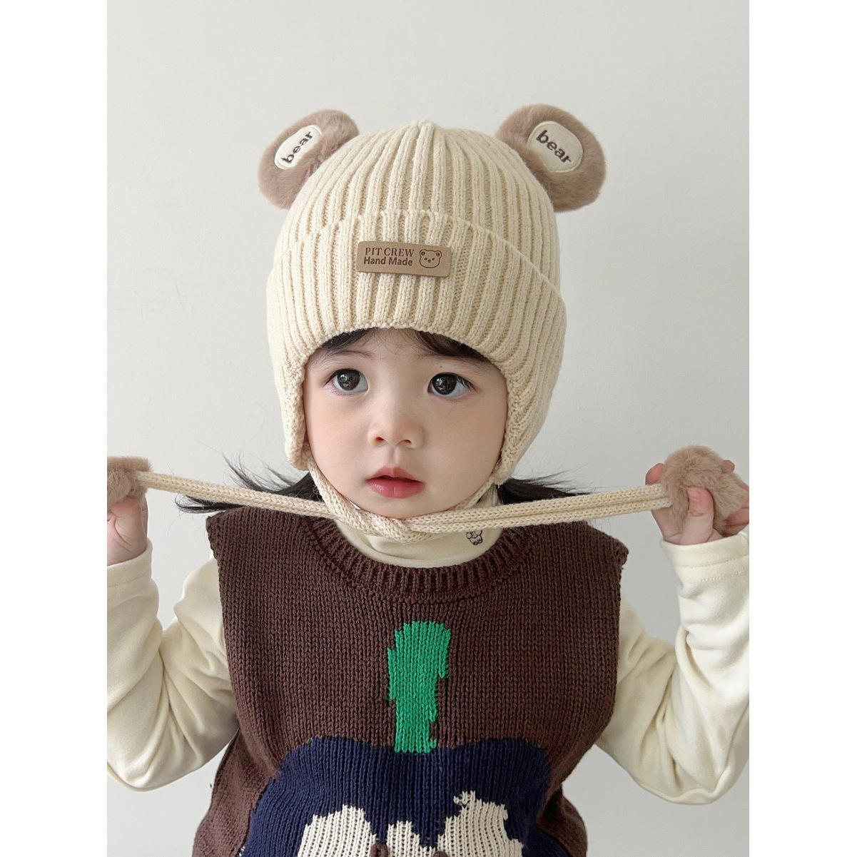 아기 모자 가을과 겨울 귀여운 곰 귀 소년 소녀 양모 귀 모자가 두껍게 된 아기 니트 모자스토어 가기