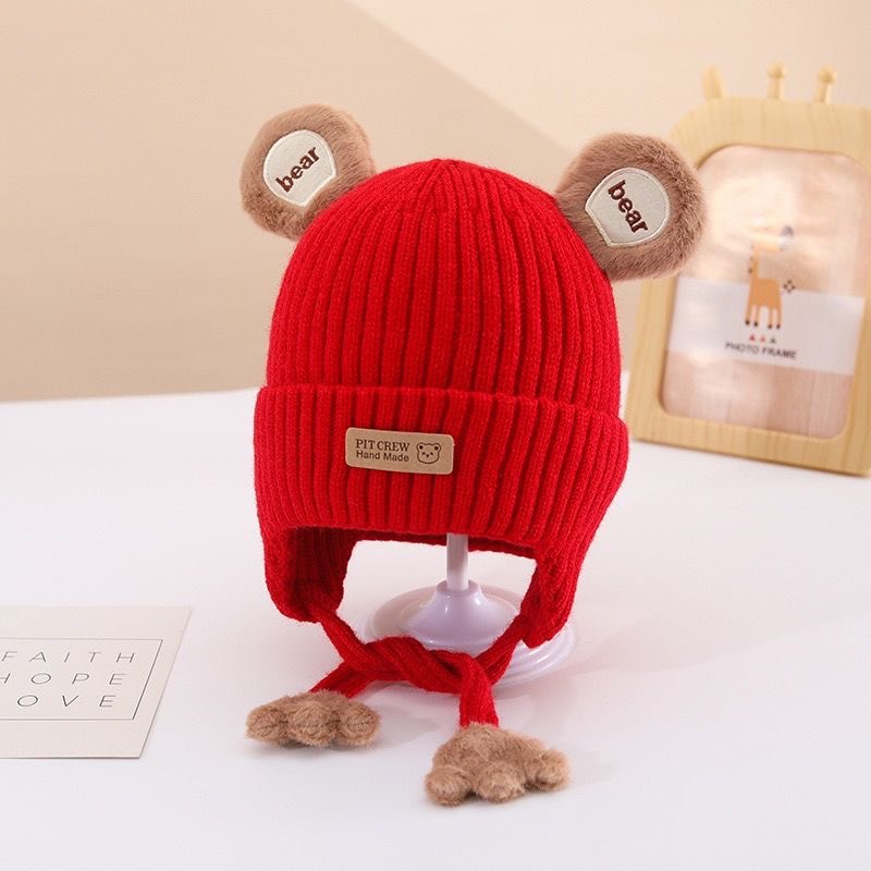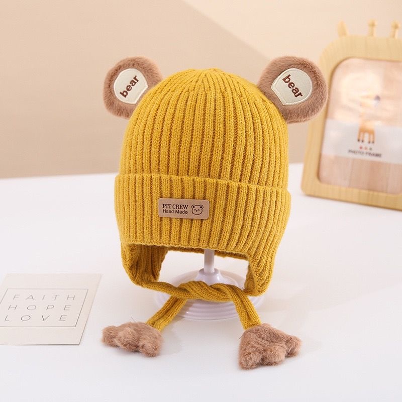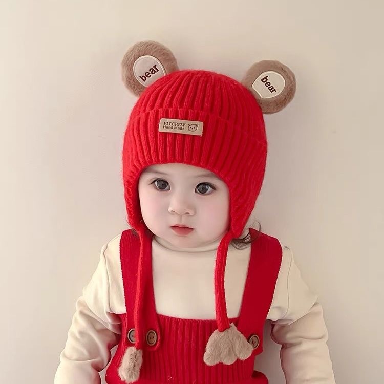아기 모자 가을과 겨울 귀여운 곰 귀 소년 소녀 양모 귀 모자가 두껍게 된 아기 니트 모자