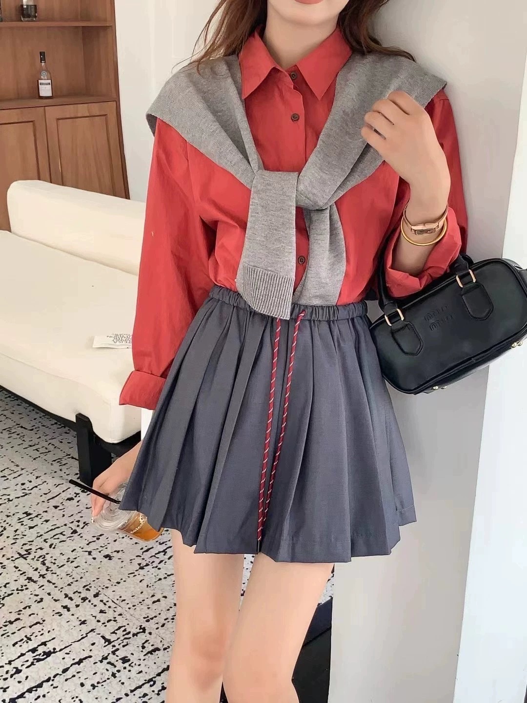 시다동 컬러블록 플리츠 스커트, 컬러풀한 드로스트링 안전가드 미니스커트, 핫걸 캐주얼 스커트, 미니 초숏 스커트스토어 가기