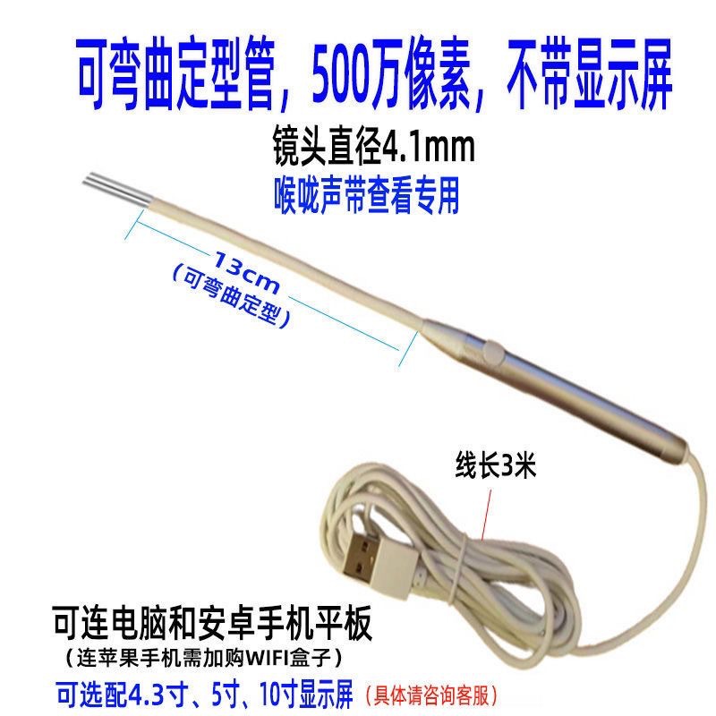可弯曲定型管主要是用于检查喉咙声带等,不推荐单独用于耳鼻,查看耳鼻建议选非定型管。如果需要检查耳鼻喉,推荐选1个主机配2根镜头管(1根定型管查看喉咙声带,1个直镜头管查看耳鼻