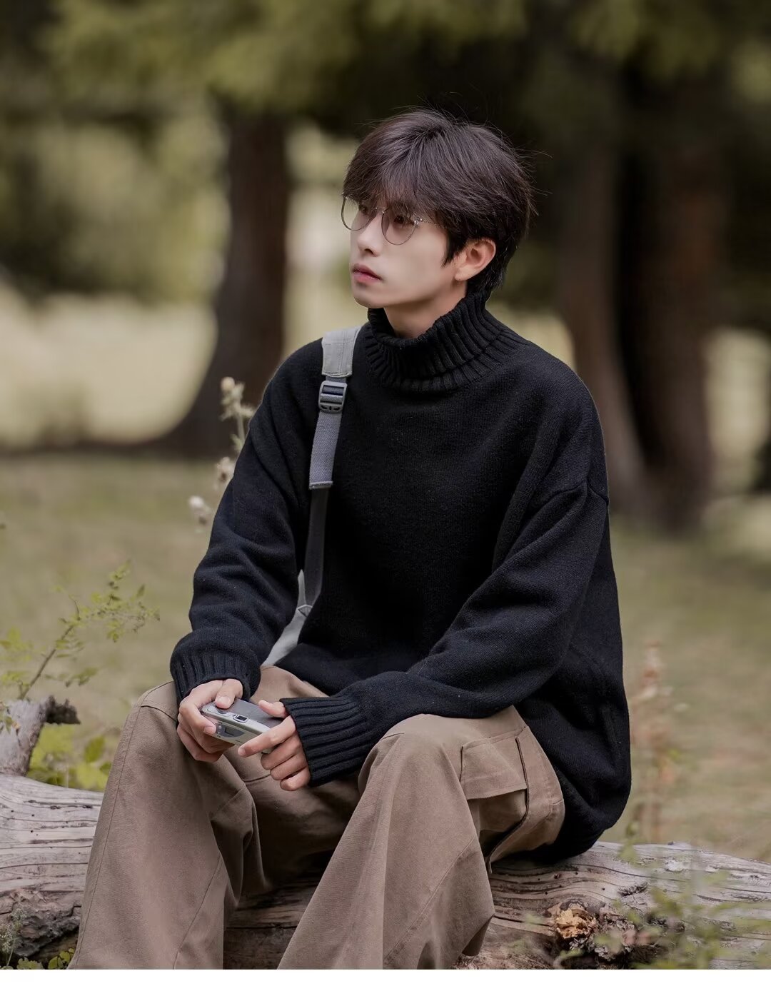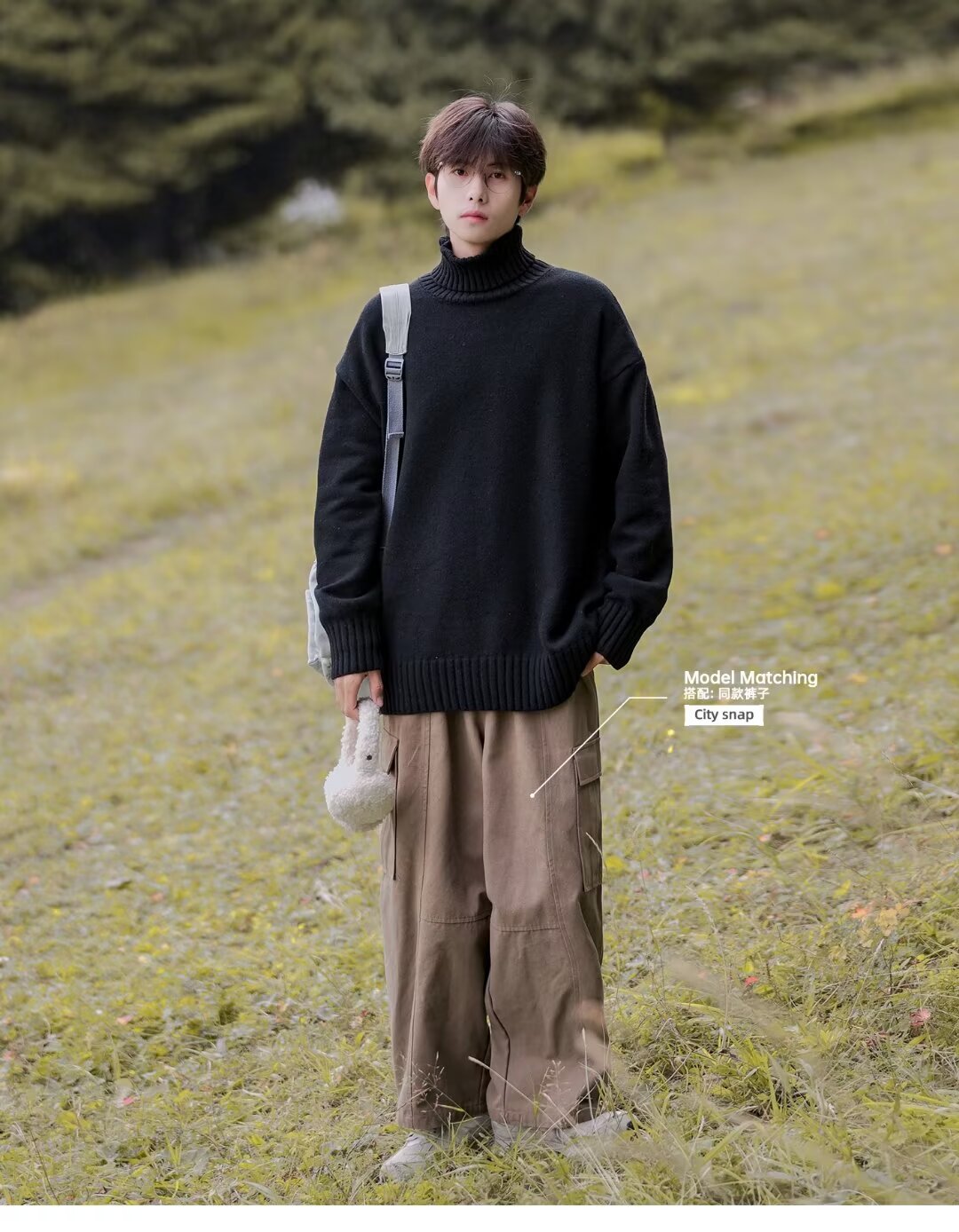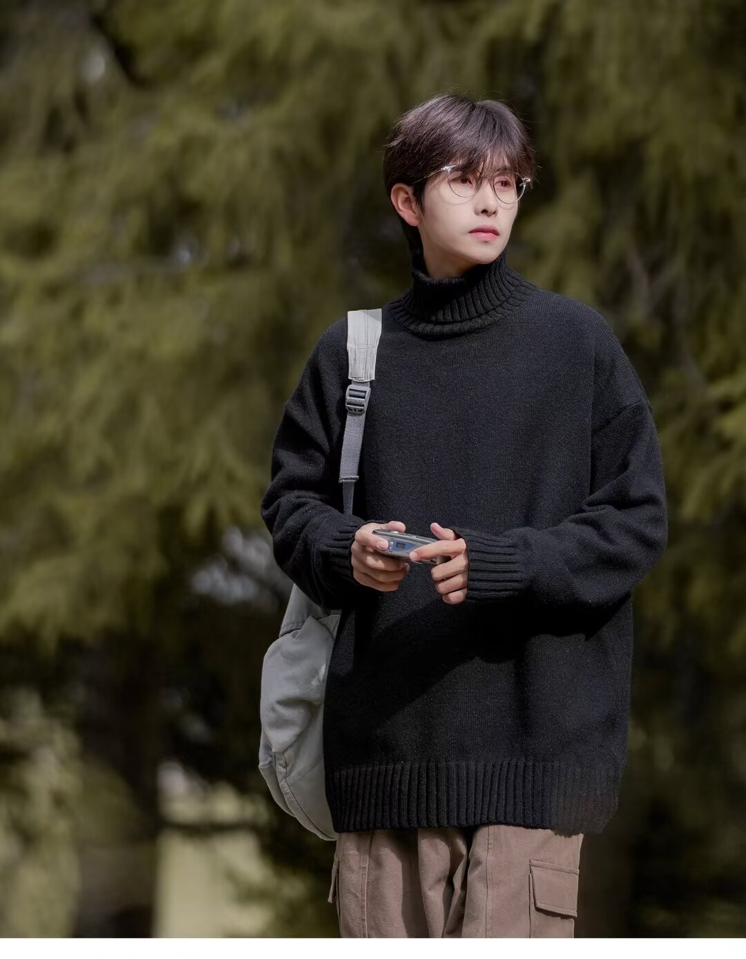 터틀넥 스웨터 남자의 게으른 내복 남자의 가을 두꺼운 양모 남자의 2024 겨울 보텀 스웨터