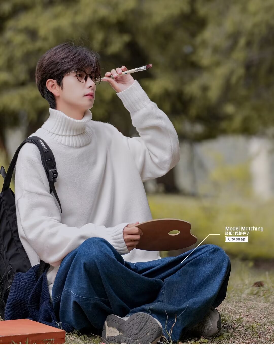 터틀넥 스웨터 남자의 게으른 내복 남자의 가을 두꺼운 양모 남자의 2024 겨울 보텀 스웨터스토어 가기