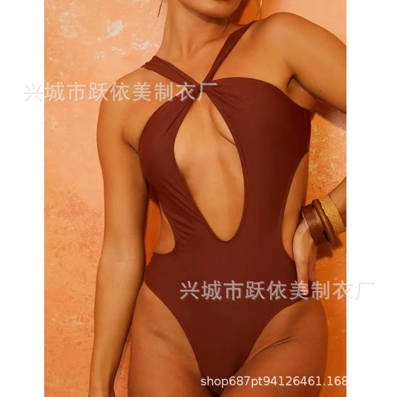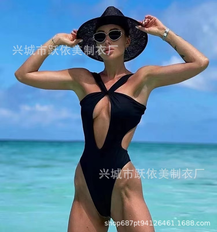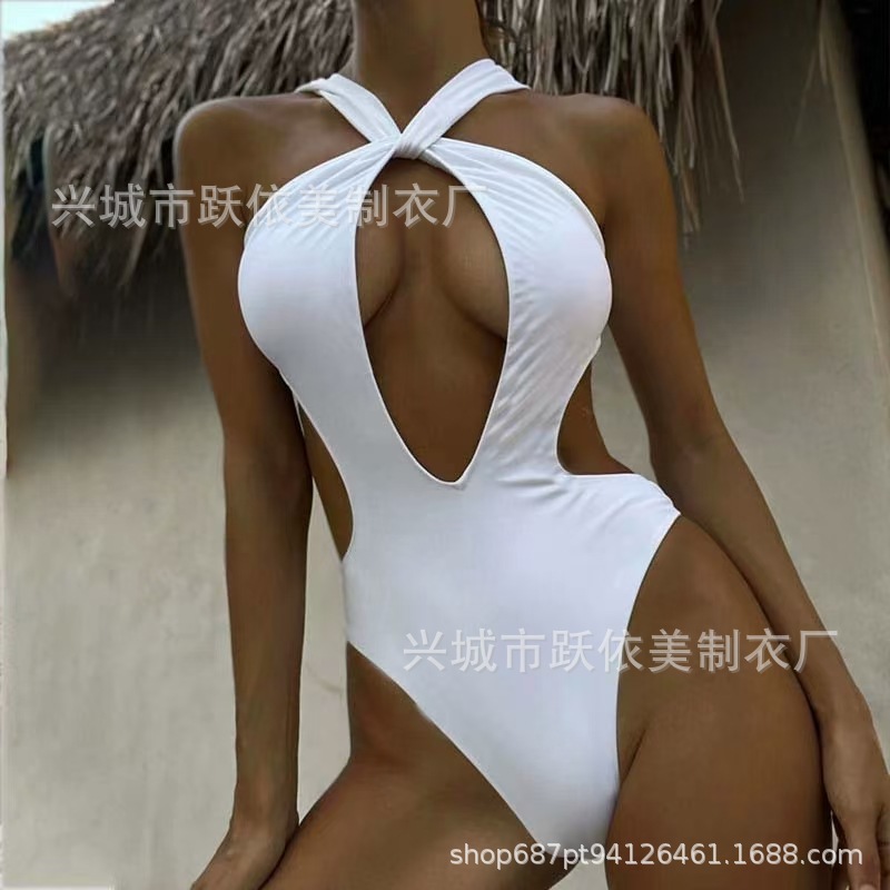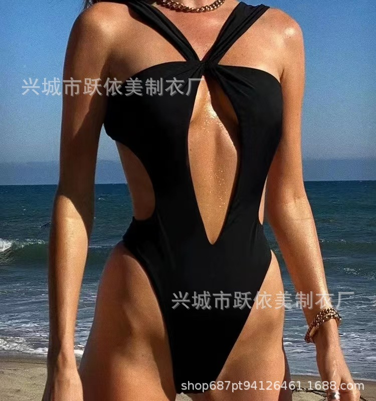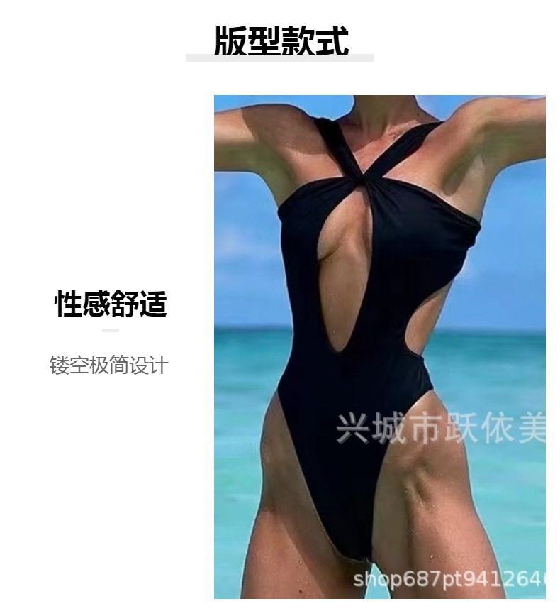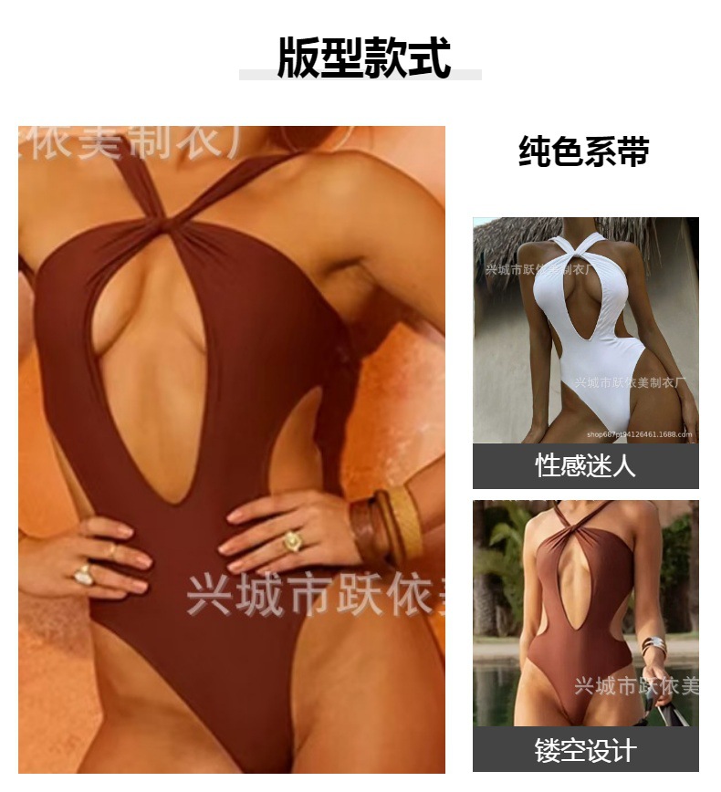 2024 국경 간 AliExpress 새로운 유럽과 미국의 섹시한 단색 레이스 업 수영복 여성 빈 백리스 여성스토어 가기