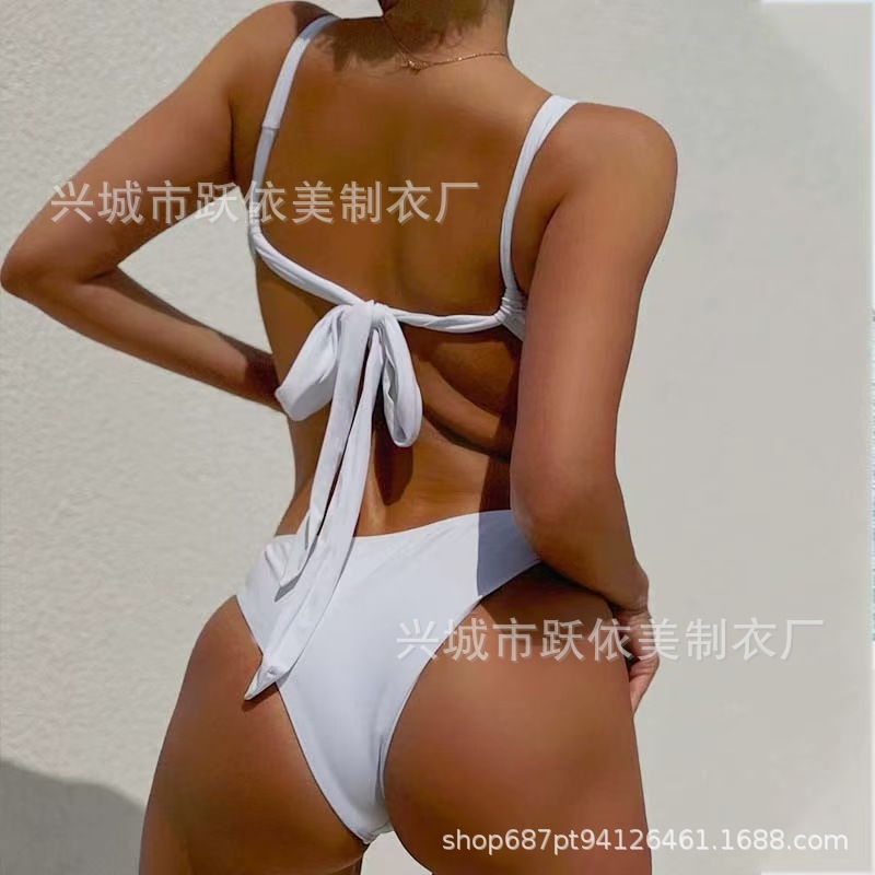 2024 국경 간 AliExpress 새로운 유럽과 미국의 섹시한 단색 레이스 업 수영복 여성 빈 백리스 여성